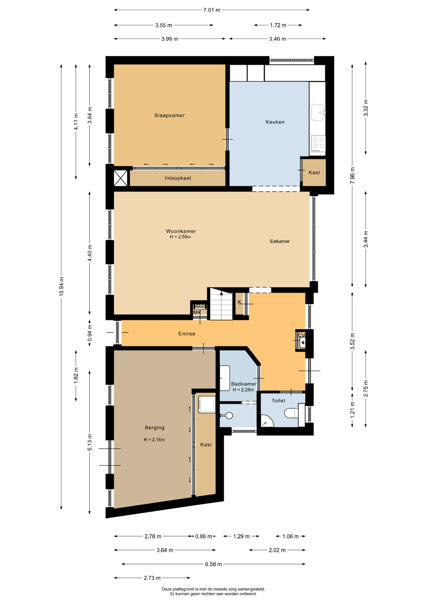 De entreehal, met meterkast en trapopgang, geeft toegang tot de berging, de woon-/eetkamer, de badkamer en het toilet. De woonkamer is voorzien van een authentiek balkenplafond en een mooie plavuizen vloer met vloerverwarming. De ramen aan de voorzijde zorgen voor veel natuurlijke lichtinval. Achter in de woonkamer is de eethoek gesitueerd. In de hoek staat de sfeervolle houtkachel (ter overname). Vanuit de woon-/eetkamer is de keuken bereikbaar. De ruime hoekkeuken, met plavuizen vloer, is voorzien van veel opbergruimte en diverse apparatuur: kookplaat, afzuigkap, oven, koelkast en vaatwasser. Vanuit de keuken is de slaapkamer bereikbaar, gelegen aan de voorzijde van de woning. De ruime slaapkamer is voorzien van vloerbedekking en een grote kastenwand. De ramen zorgen voor veel lichtinval.