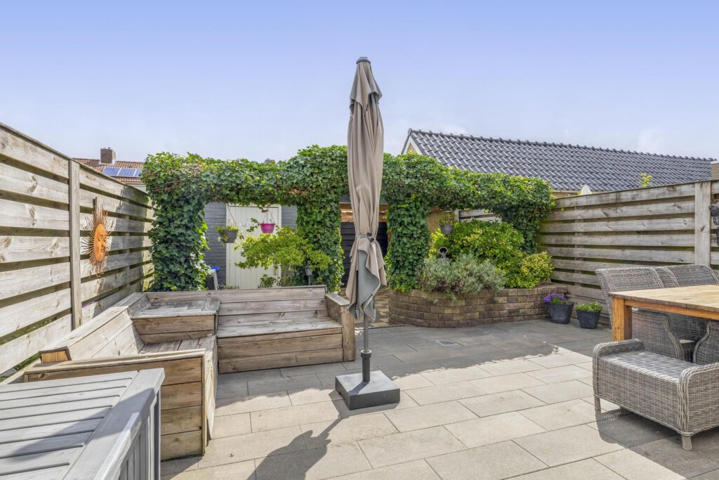 De woning beschikt over een goed onderhouden voor- en achtertuin. De achtertuin is gelegen op het noordoosten en heeft een handige achterom. Tevens beschikt de woning over een vrijstaande stenen berging, perfect voor het opbergen van tuingereedschap of fietsen. Naast de berging is een overkapping. Het is hier heerlijk vertoeven.