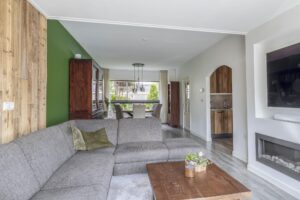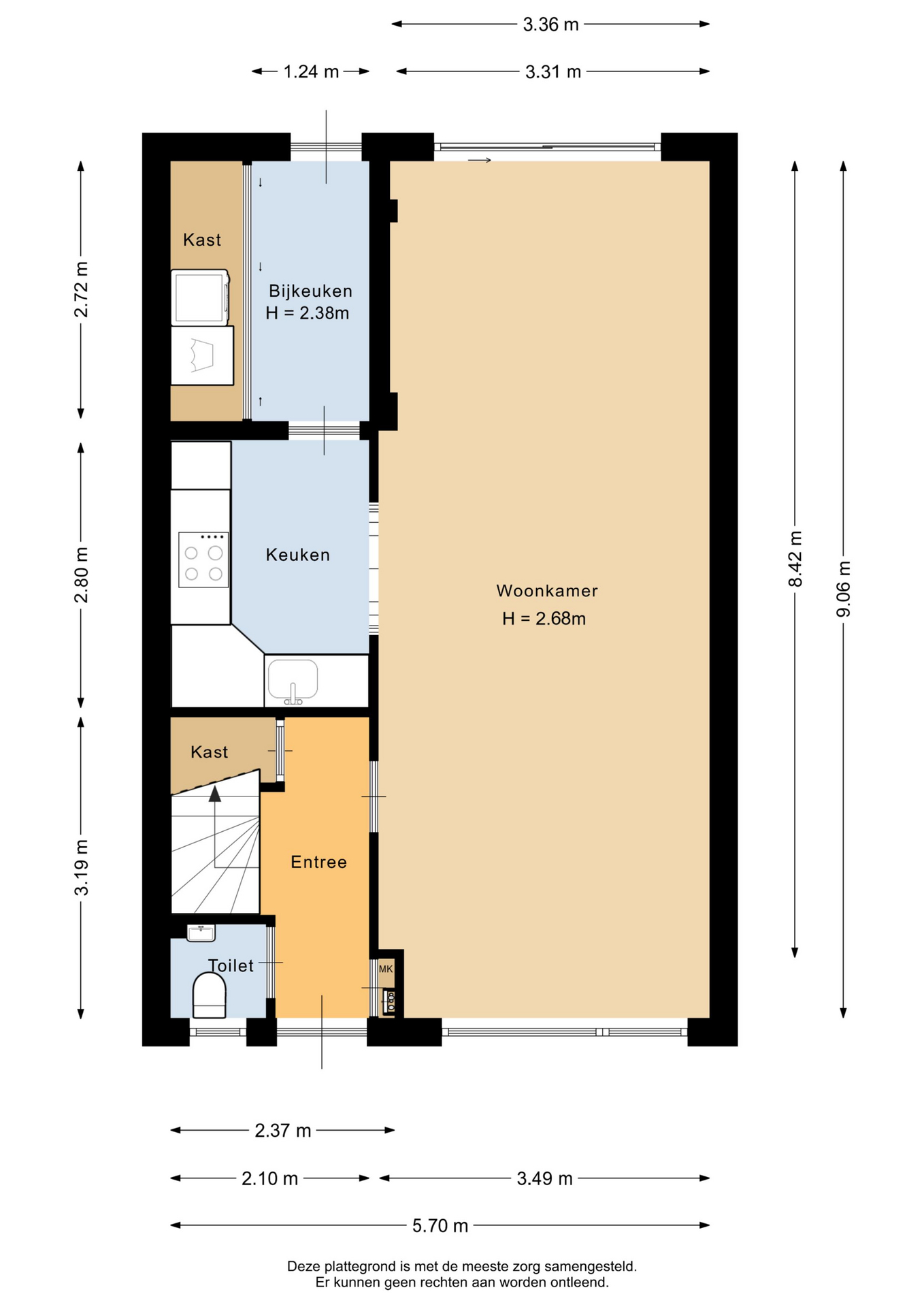 Als je het huis binnenstapt, kom je via de entreehal in de gezellige woon-/eetkamer. De woonkamer is aan de achterzijde gesitueerd. De schuifpui zorgt voor voldoende natuurlijke lichtinval en geeft toegang tot de tuin. In het verlengde van de woonkamer is de eetkamer gelegen. Tussen de woon- en eetkamer is de toegang tot de halfopen keuken, welke voorzien is van opbergruimte en diverse apparatuur: kookplaat, afzuigkap, combi-oven, koel-/vriescombinatie en vaatwasser. Vanuit de keuken is de achtergelegen bijkeuken bereikbaar. De bijkeuken, met grote kast met daarin de witgoedaansluitingen, geeft toegang tot de achtertuin.