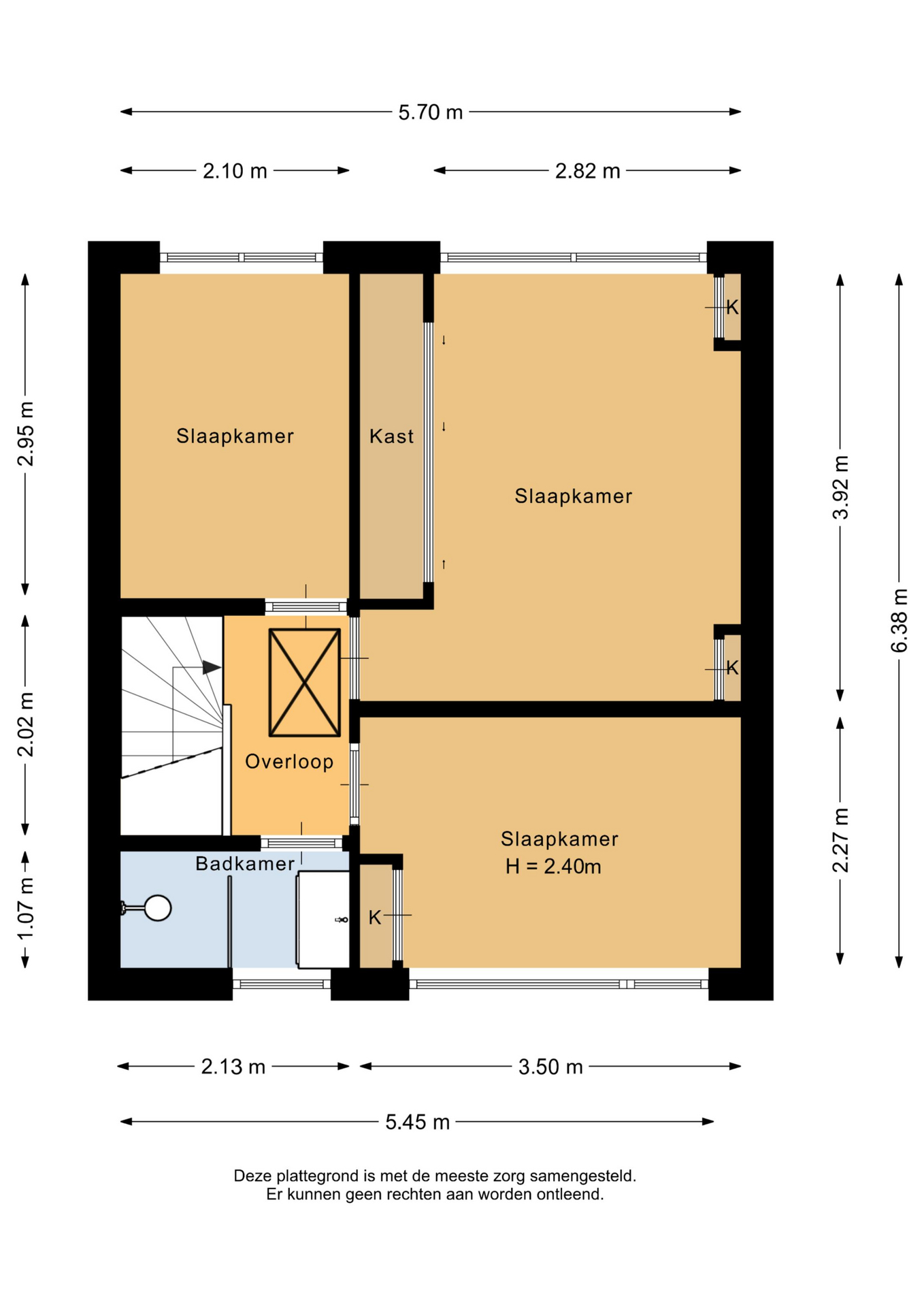 Op de eerste verdieping bevinden zich de drie slaapkamers, waarvan twee met één of meerdere vaste kasten. De slaapkamers zijn voorzien van een laminaatvloer. De badkamer is geheel betegeld en voorzien van een inloopdouche, een wastafel en een designradiator.