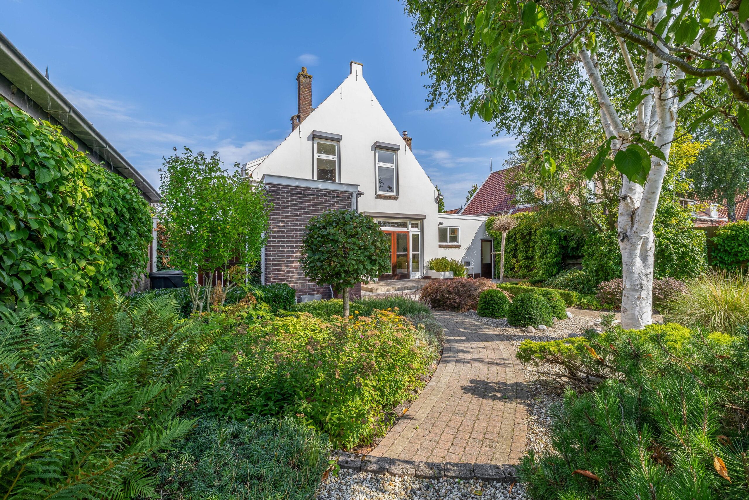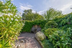 De achtertuin, gelegen op het zuiden, is verzorgd en sfeervol aangelegd. Het geheel is passend bij de stijl van de woning en biedt voldoende mogelijkheid om buiten te vertoeven. De aangebouwde garage beschikt over een dakraam welke zorgt voor veel lichtinval. Een ideale ruimte voor de doe-het-zelver of te gebruiken om je auto binnen te parkeren.