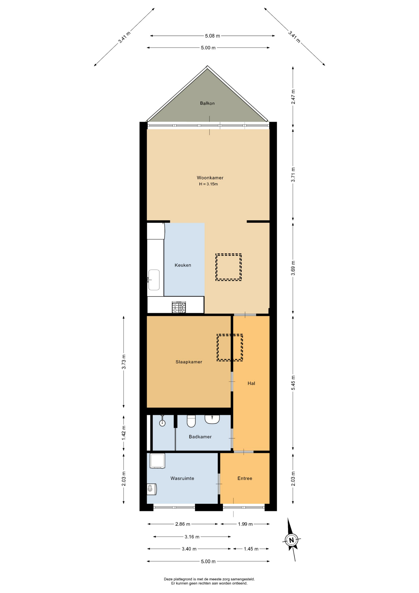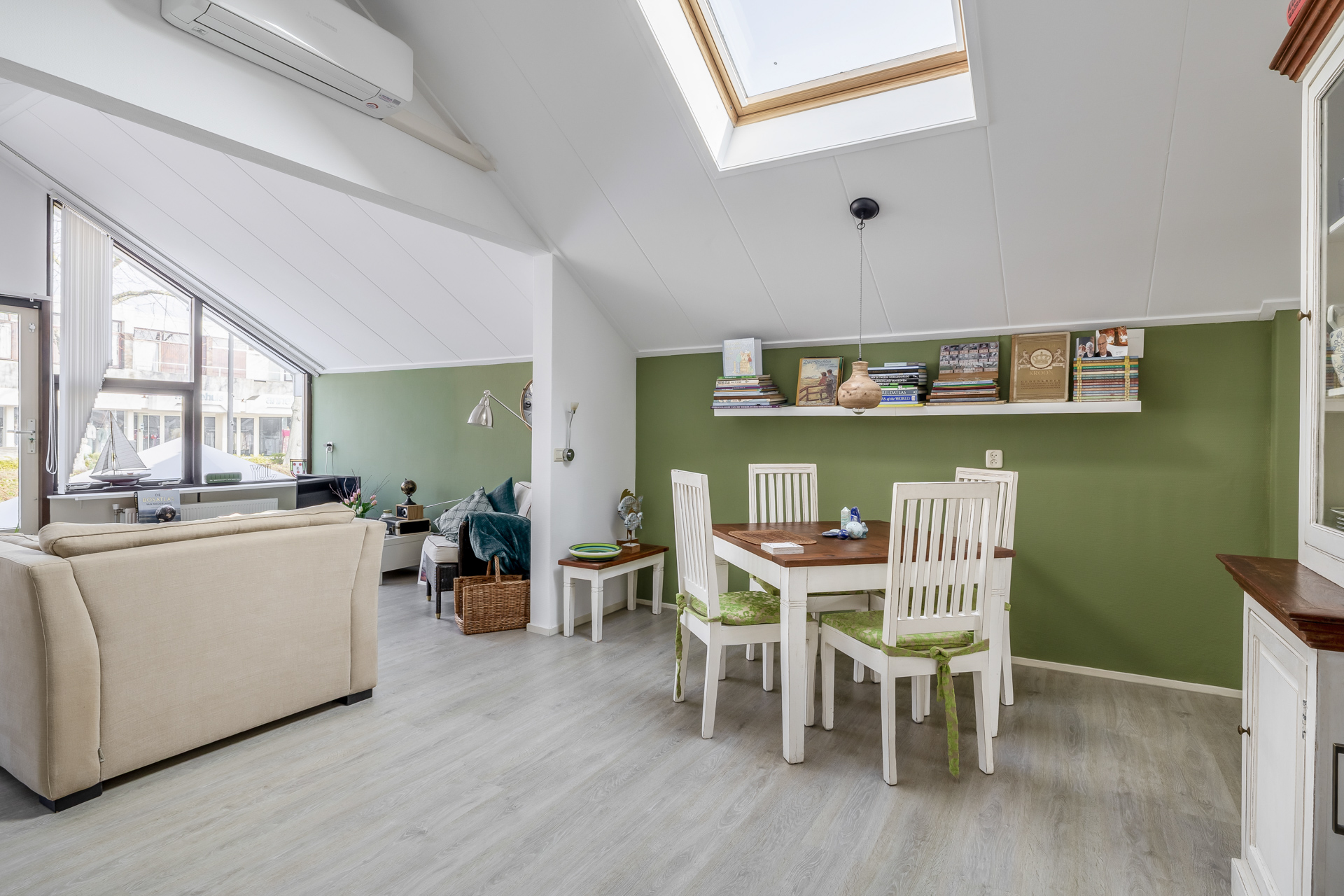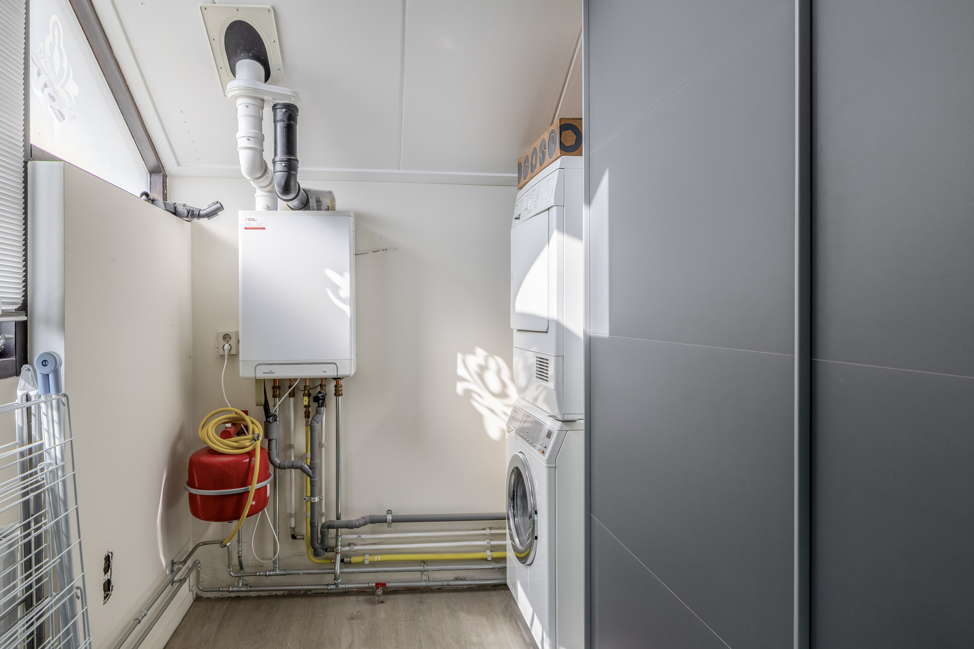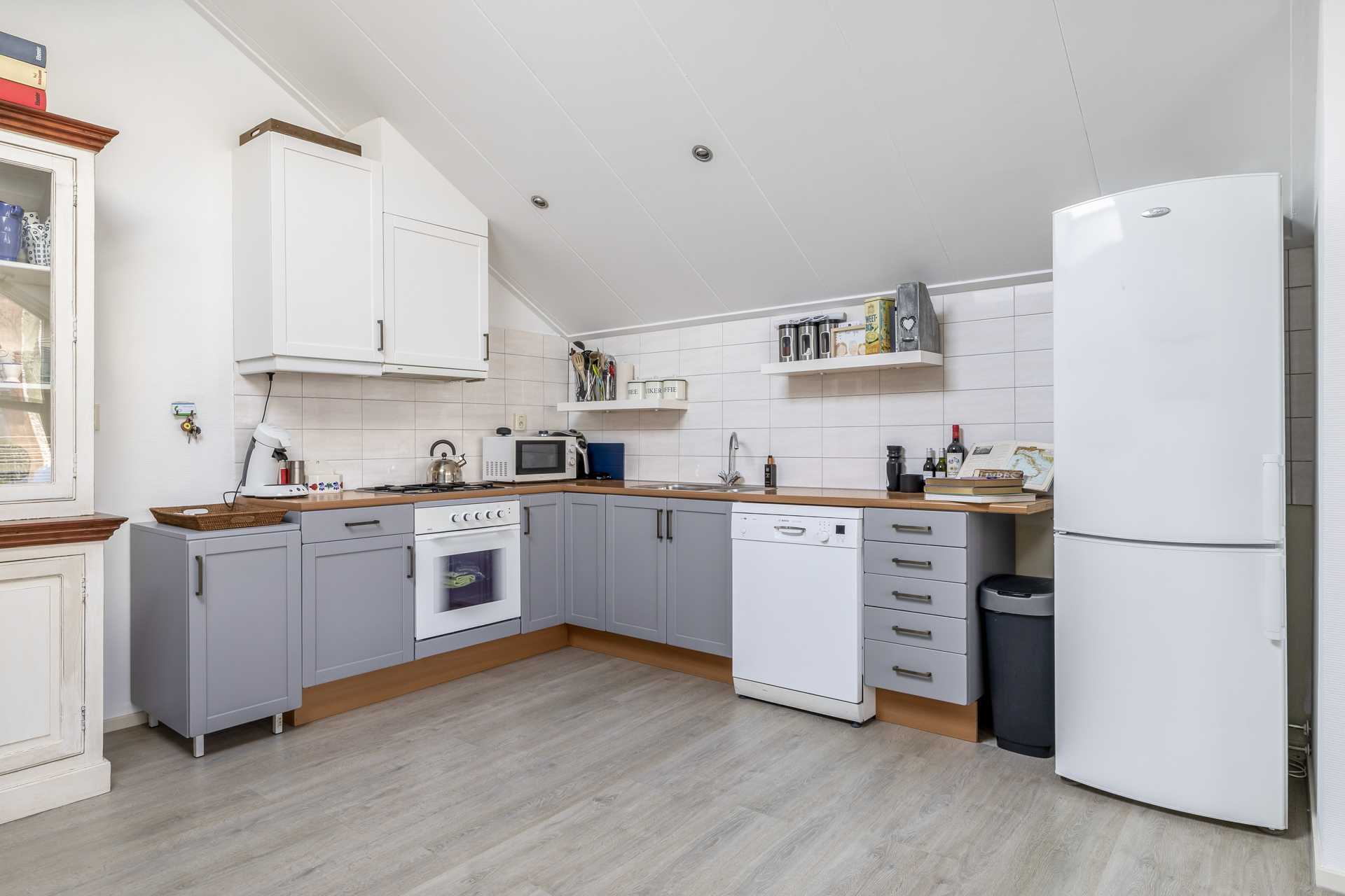 Via de entree kom je binnen in de hal, van waaruit je direct toegang hebt tot de woonkamer en de open keuken. De knusse woonkamer zorgt voor een warm en huiselijk gevoel en vormt een fijne plek om te ontspannen of gasten te ontvangen. De open keuken sluit mooi aan op de woonkamer en is voorzien van diverse inbouwapparatuur. Hierdoor ontstaat een praktische en gezellige leefruimte waar koken en wonen prettig samenkomen. De slaapkamer is voorzien van een dakraam, waardoor er veel natuurlijk licht binnenvalt. De badkamer is compleet ingericht en beschikt over een inloopdouche, designradiator, toilet en een wastafel. Daarnaast beschikt het appartement over een praktische wasruimte. Ideaal voor het plaatsen van de wasmachine en extra bergruimte.
