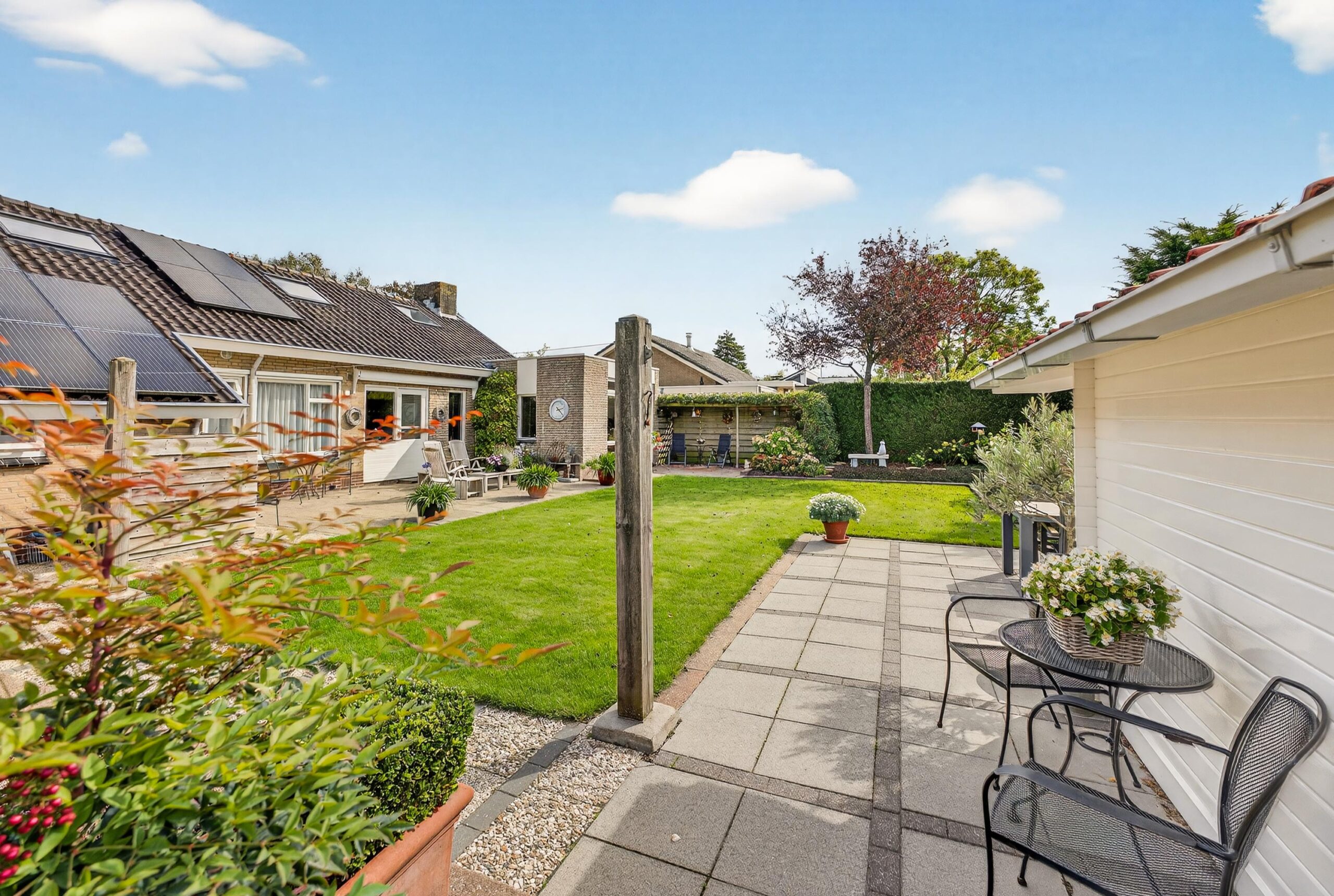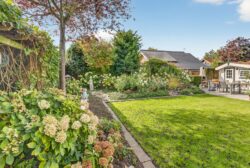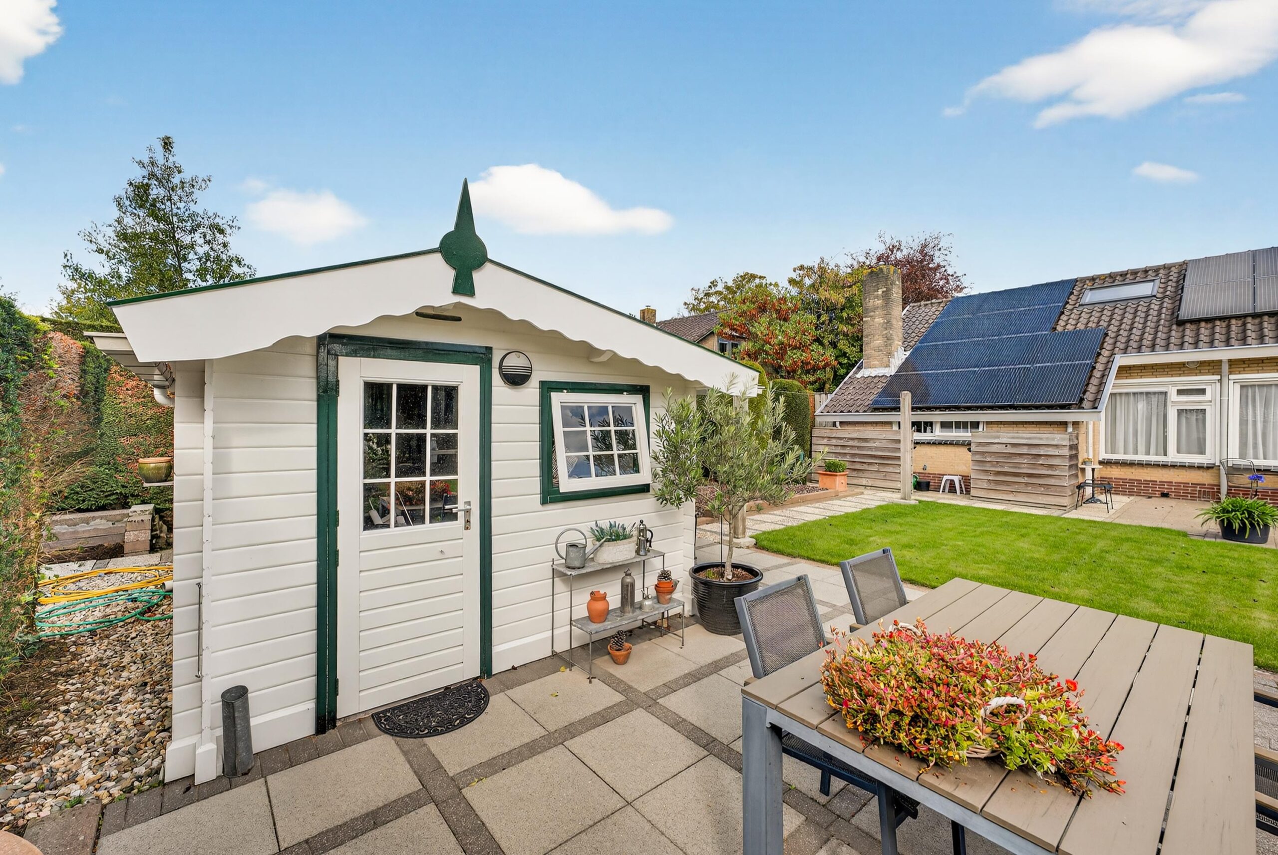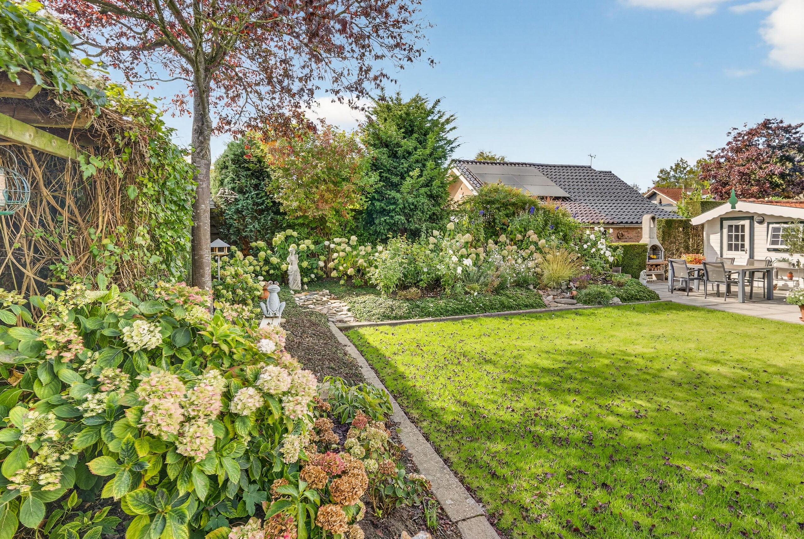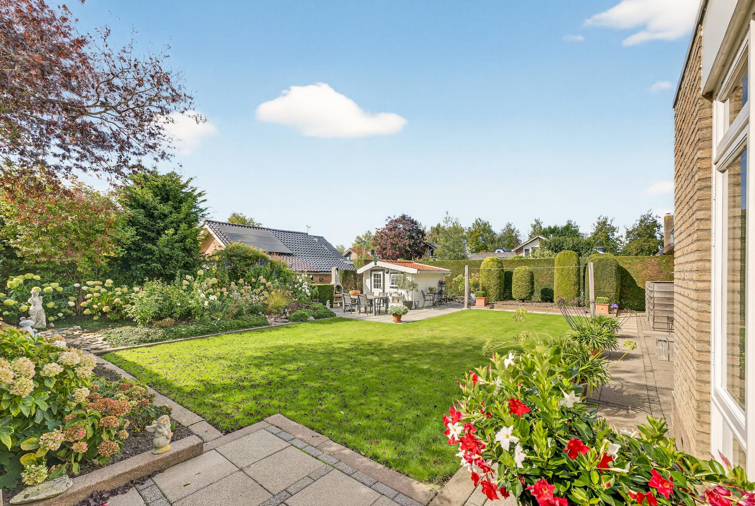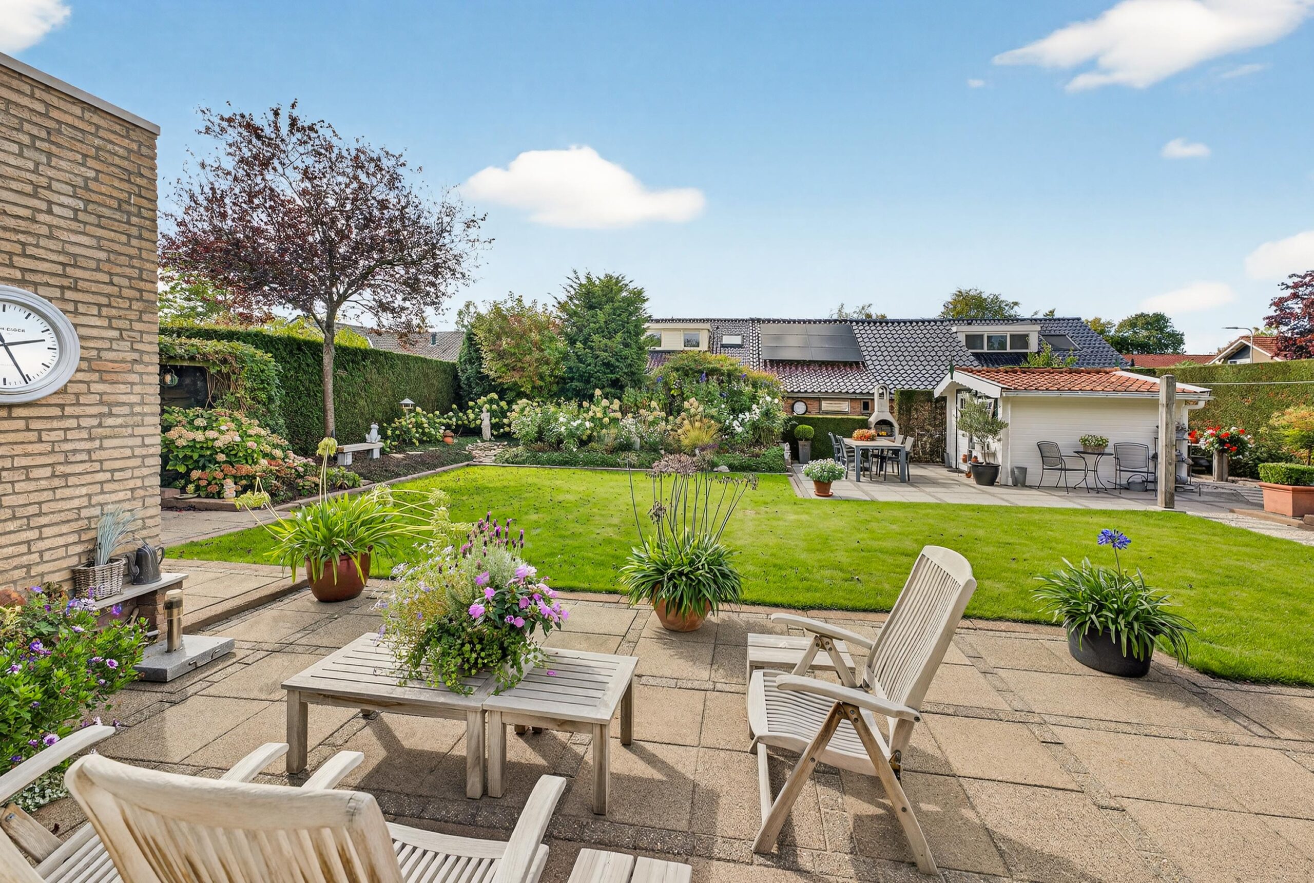 Rondom de woning ligt een fraai aangelegde tuin met meerdere terrassen, borders, gazon en een gezellig tuinhuis met terras. Hier geniet u in alle rust van het buitenleven.