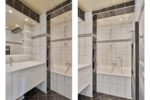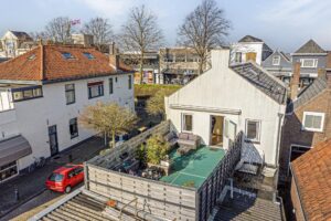 Het dakterras, bereikbaar vanuit de grote slaapkamer, is circa 40 m² groot en gelegen op het zuiden. Het is hier heerlijk vertoeven.