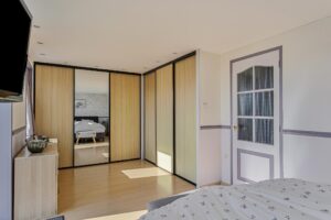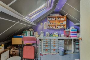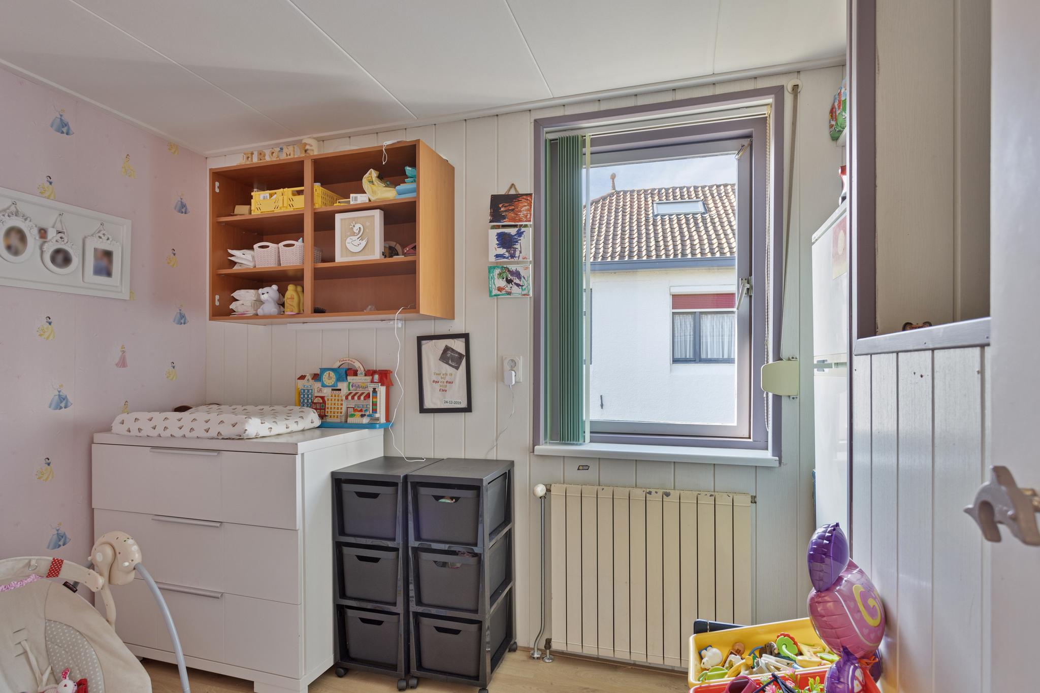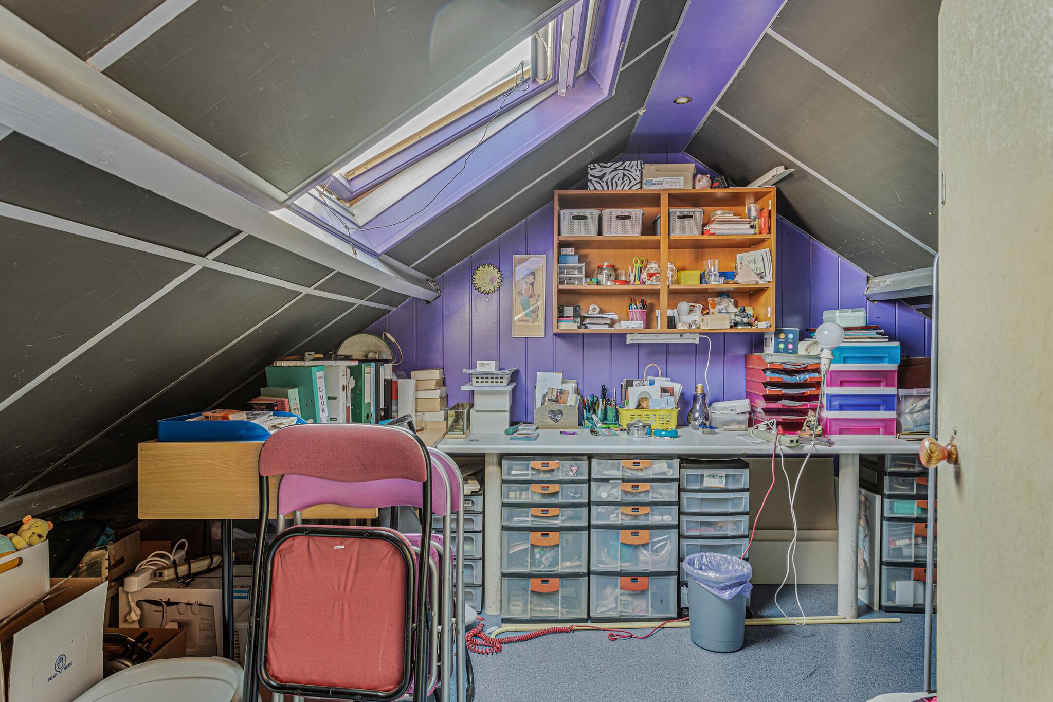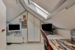 De overloop geeft toegang tot de derde slaapkamer en een ruime berging. De slaapkamer is voorzien van een laminaatvloer en een dakraam. Vanuit de slaapkamer is een tweede berging bereikbaar. Beide bergingen hebben een dakraam en kunnen ook gebruikt worden als kantoor of hobbyruimte.