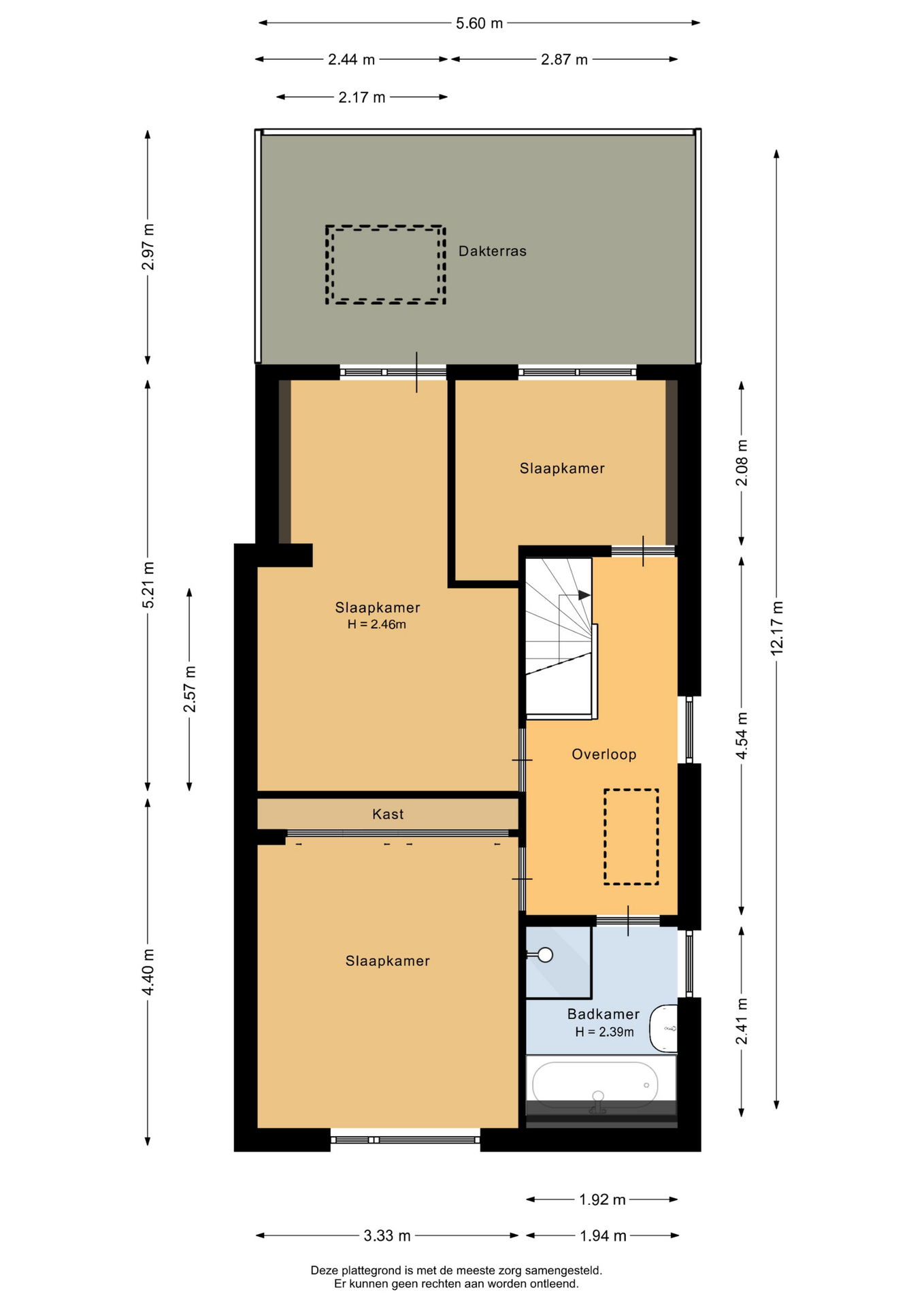 • Drie slaapkamers, waarvan de grootste toegang biedt tot een dakterras.
