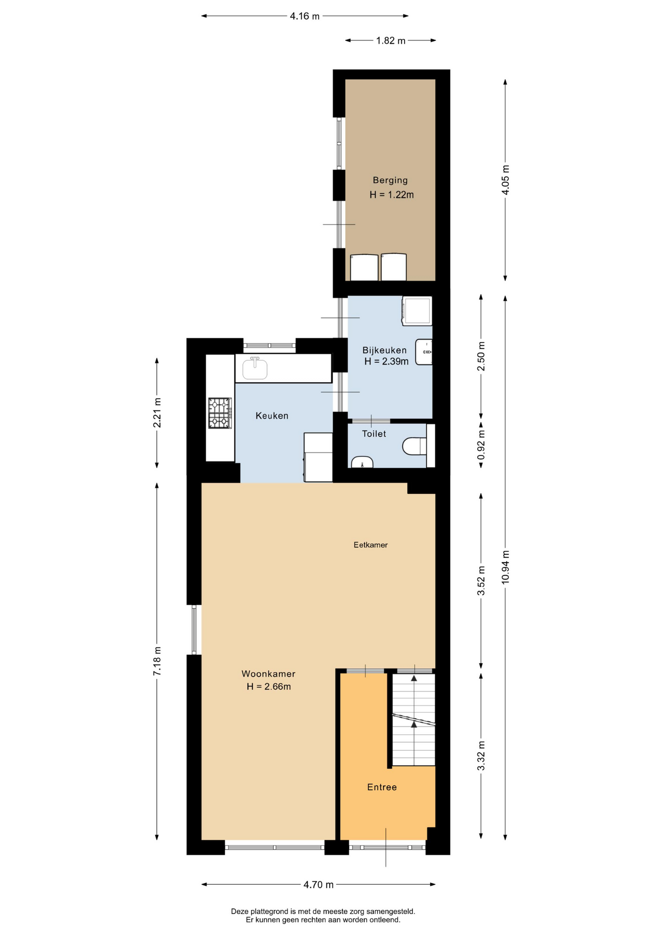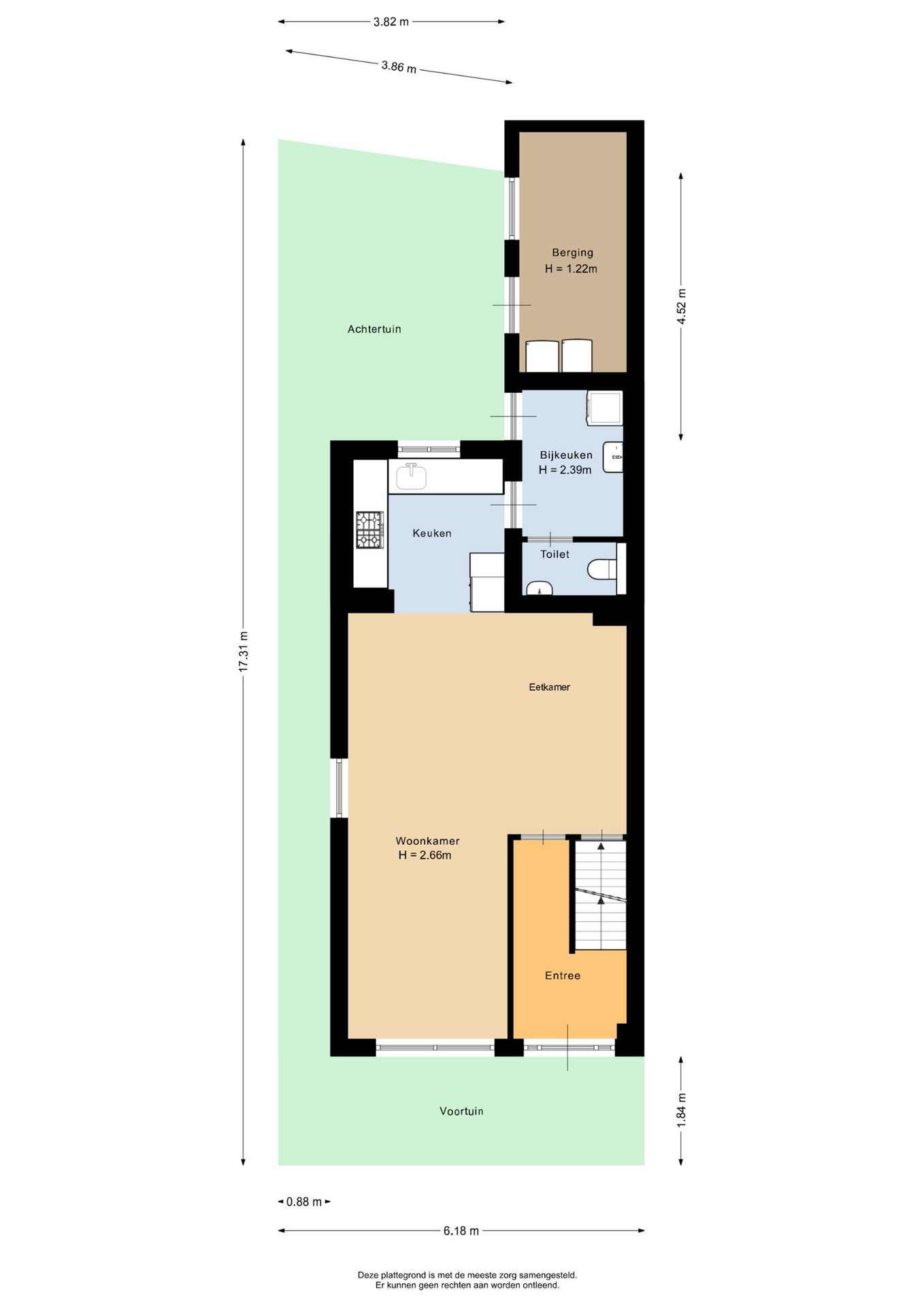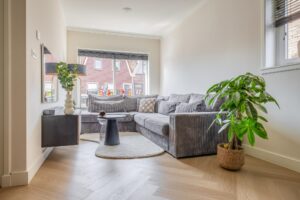 De sfeervolle entreehal geeft toegang tot de woonkamer met open keuken. De woonkamer, gelegen aan de voorzijde, is licht en aan de achterzijde is de open keuken gerealiseerd. De open keuken is compleet met diverse apparatuur, zoals kookplaat, afzuigkap, combi-oven, koelkast en vaatwasser. Grenzend aan de keuken zijn de bijkeuken en het toilet. In de bijkeuken zijn de witgoedaansluitingen te vinden en vanuit deze ruimte is er toegang tot de achtertuin. De gehele begane grond, met uitzondering van de hal, is voorzien van vloerverwarming.