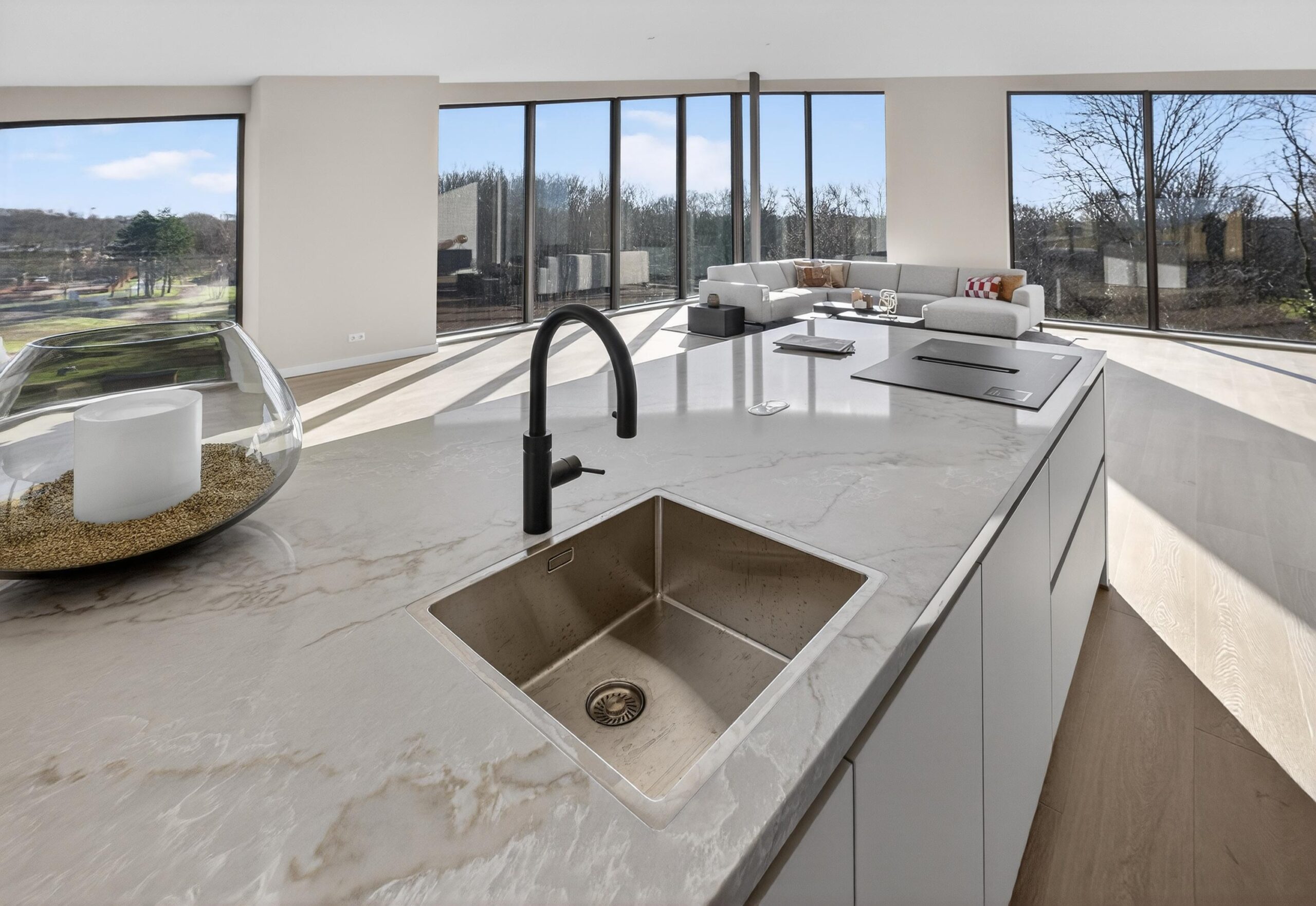 De luxe open keuken met kookeiland van Tieleman vormt een stijlvol middelpunt in de leefruimte en biedt alle comfort voor liefhebbers van koken en gezellig tafelen.
