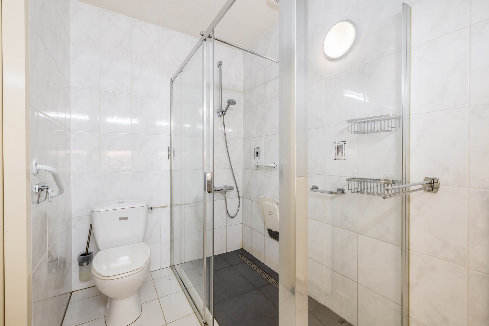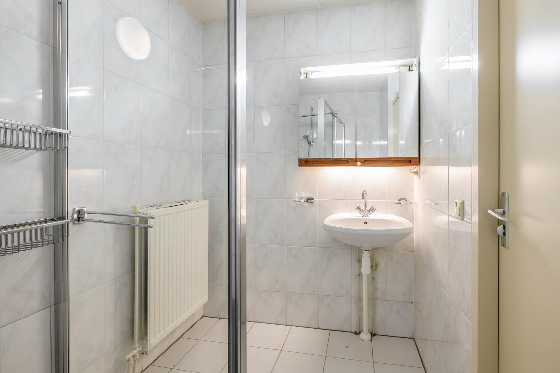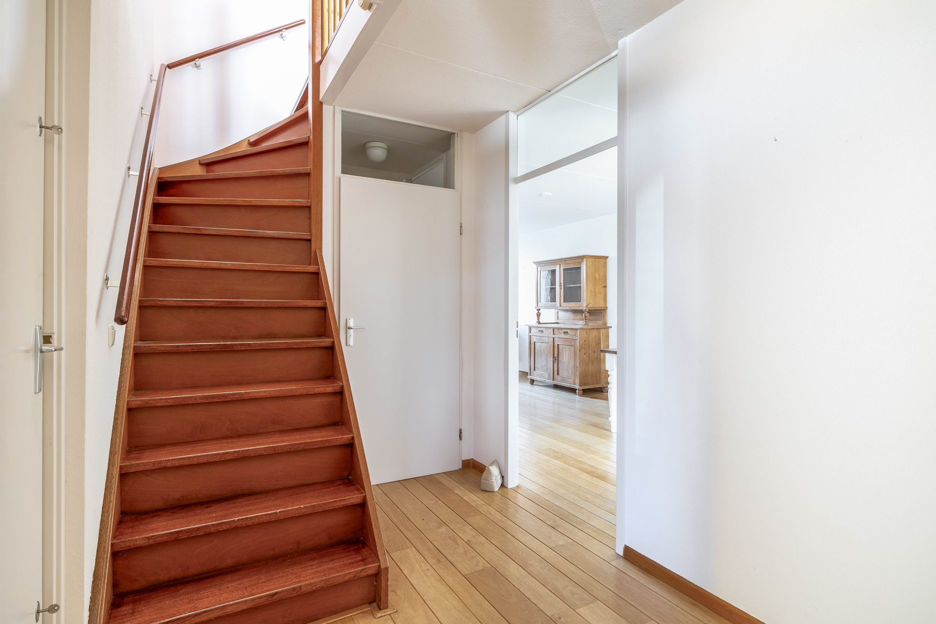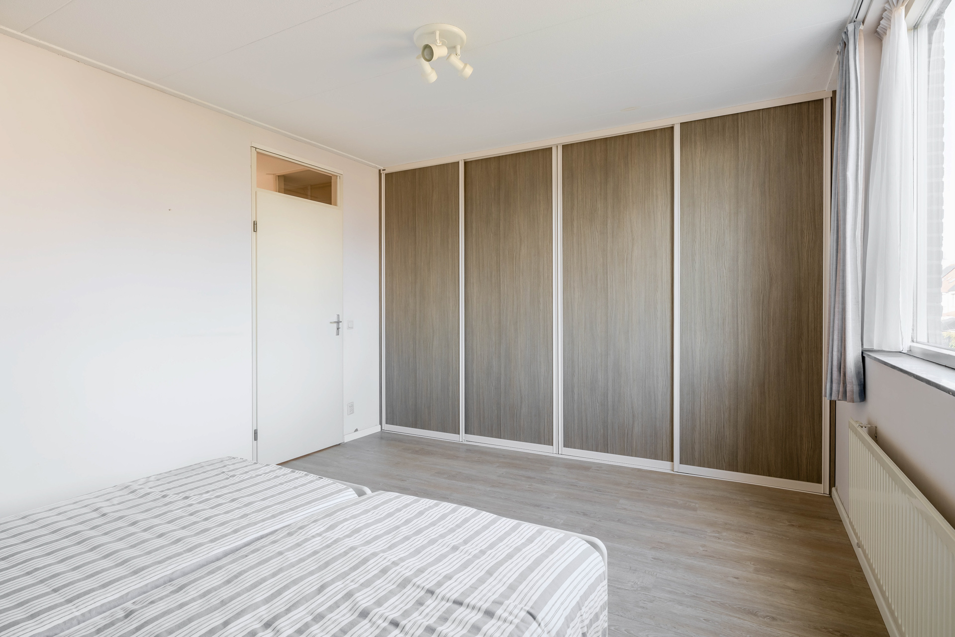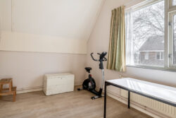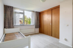 Daarnaast beschikt de begane grond over een gelijkvloerse slaapkamer met praktische opbergkast en badkamer, voorzien van toilet en inloopdouche. Hierdoor is de woning uitstekend geschikt voor levensloopbestendig wonen.