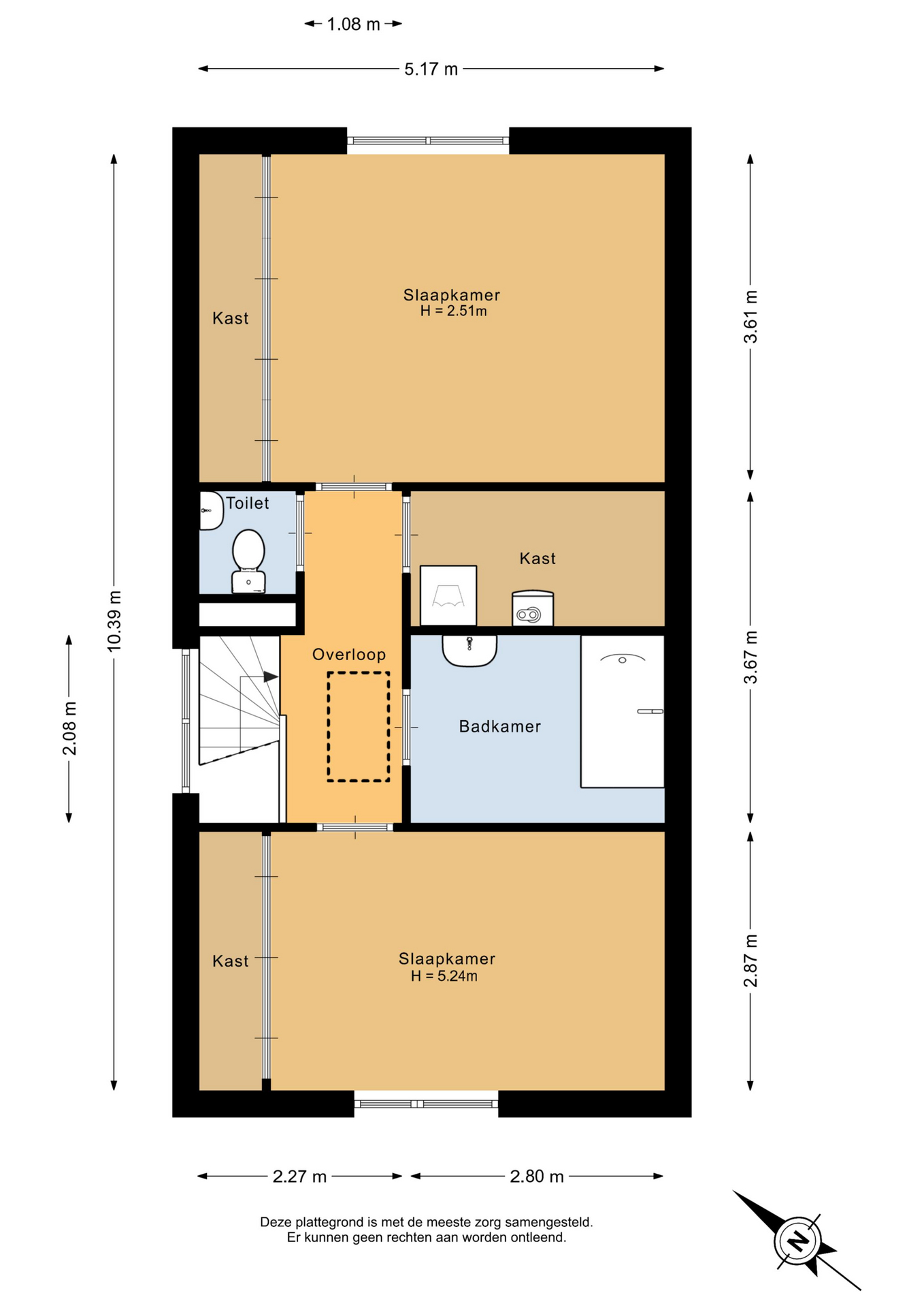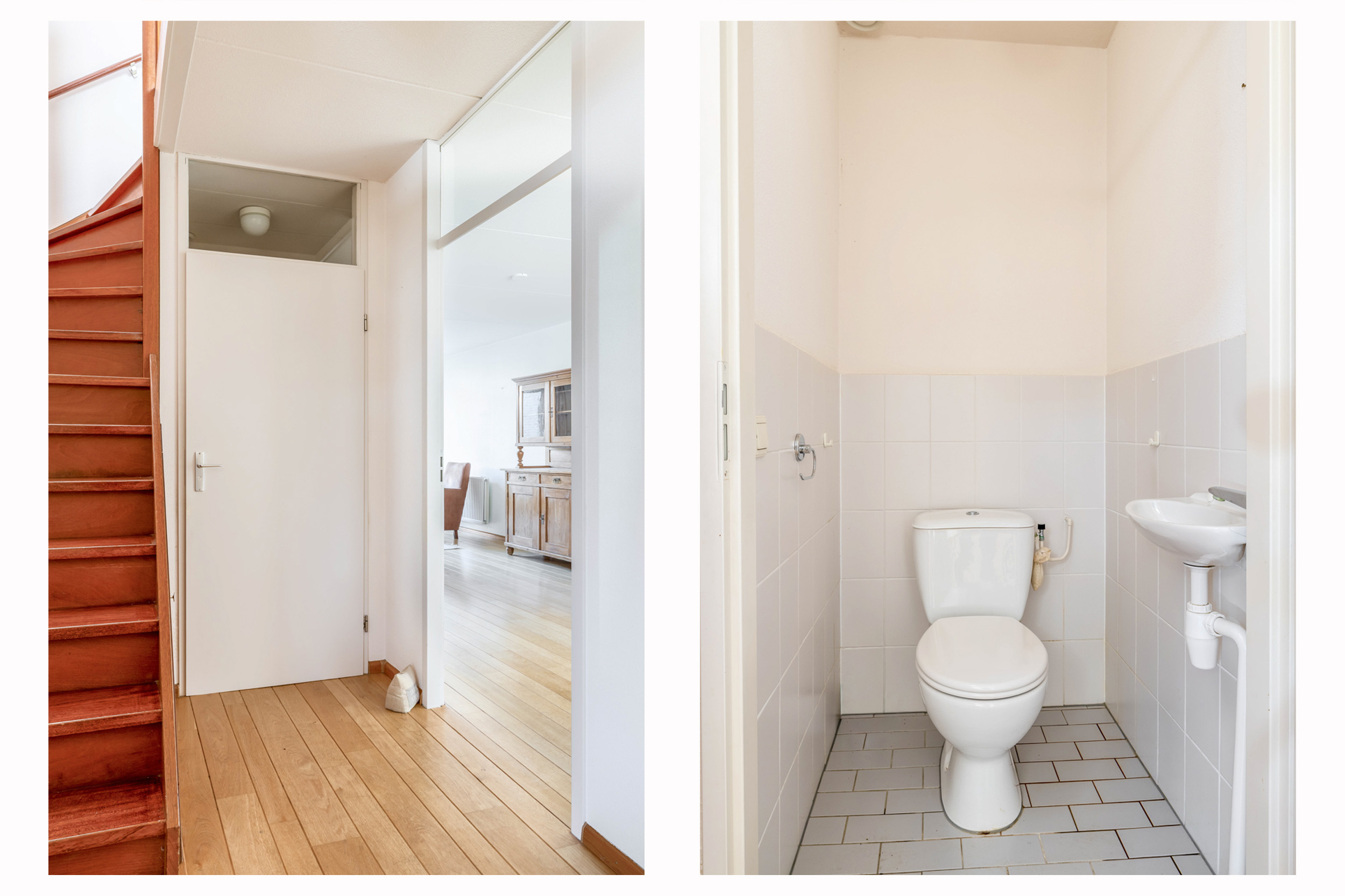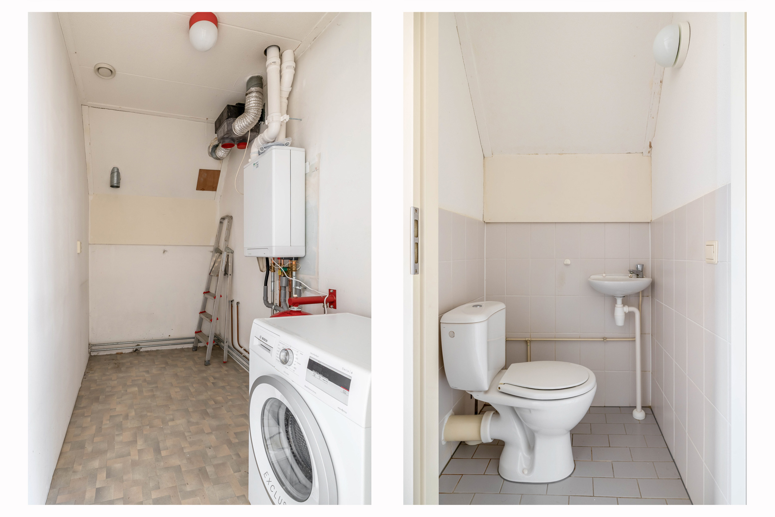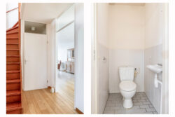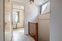 Op de eerste verdieping bevinden zich twee royale kamers, beide voorzien van praktische opbergkasten. Vanaf de overloop bereikt u een separaat toilet en een ruime berging met Cv-ketel en aansluiting voor de wasmachine.