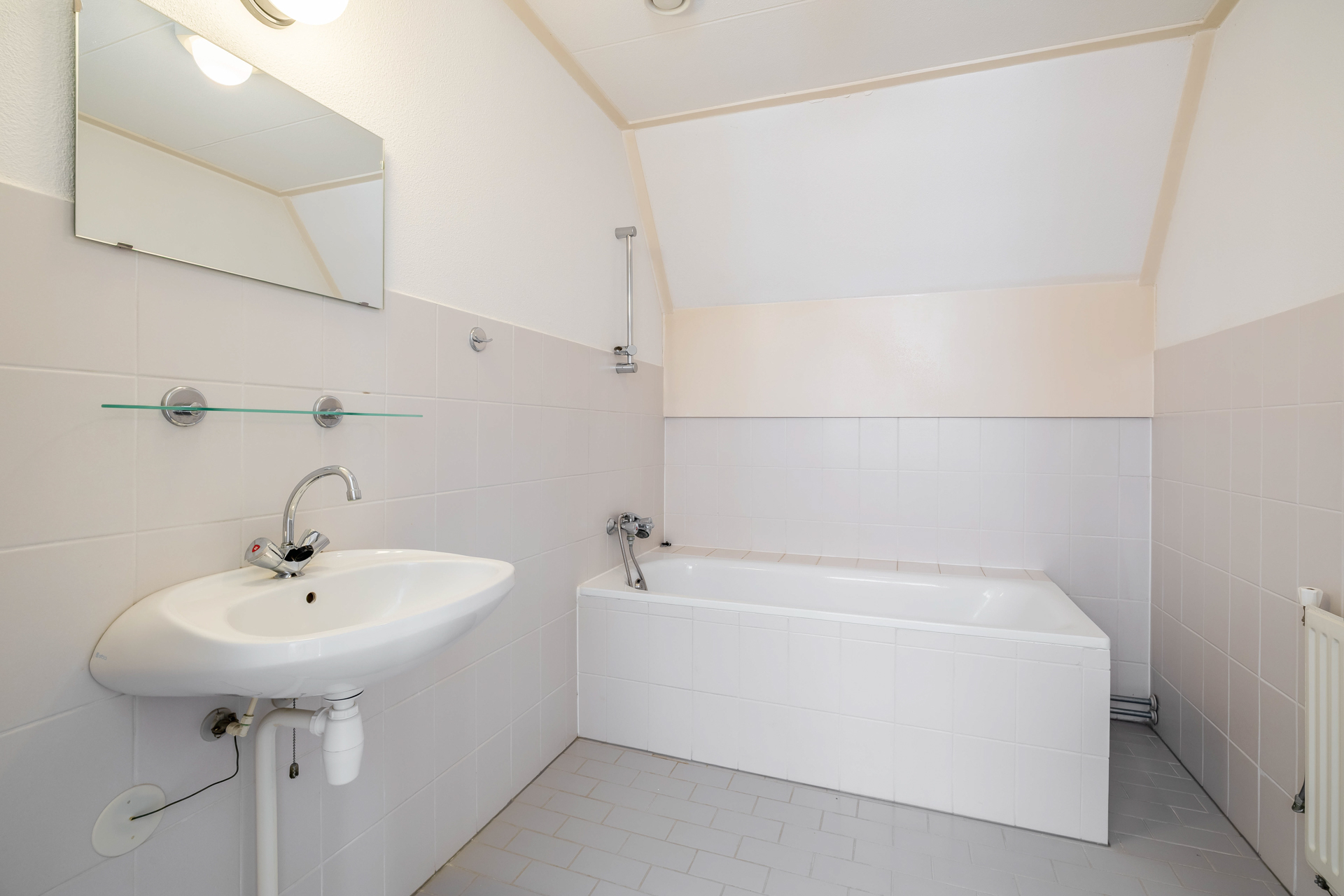 Daarnaast is er een tweede badkamer aanwezig, voorzien van een ligbad en wastafel.