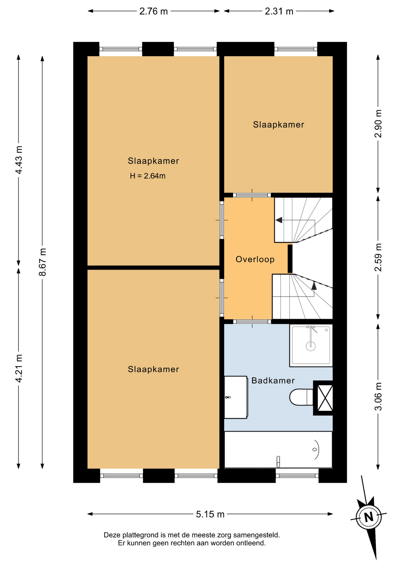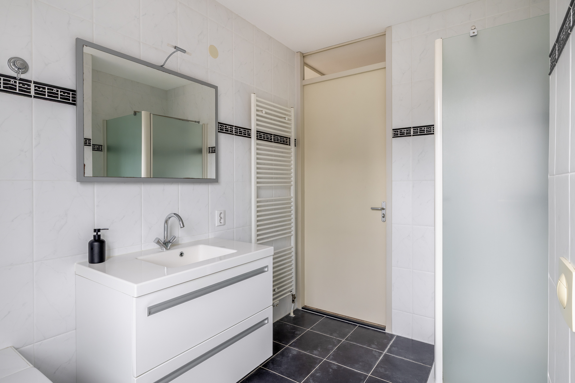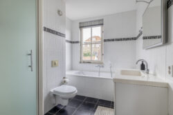 Op de eerste verdieping bevinden zich drie slaapkamers van goed formaat, stuk voor stuk prettig in te delen. Ideaal voor een gezin, maar ook perfect te gebruiken als werk- of hobbyruimte. De badkamer is compleet uitgevoerd en beschikt over een ligbad, douche, toilet, designradiator en een wastafelmeubel. Een verzorgde en functionele ruimte waar comfort centraal staat.