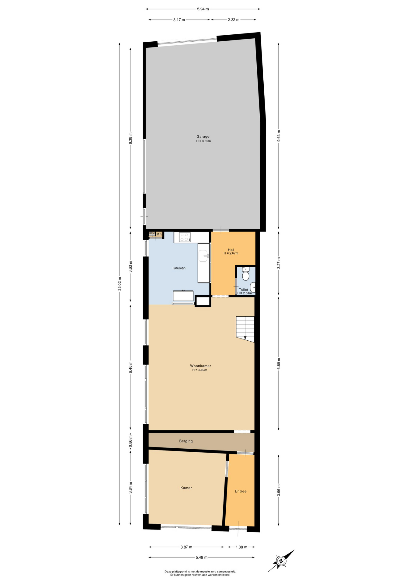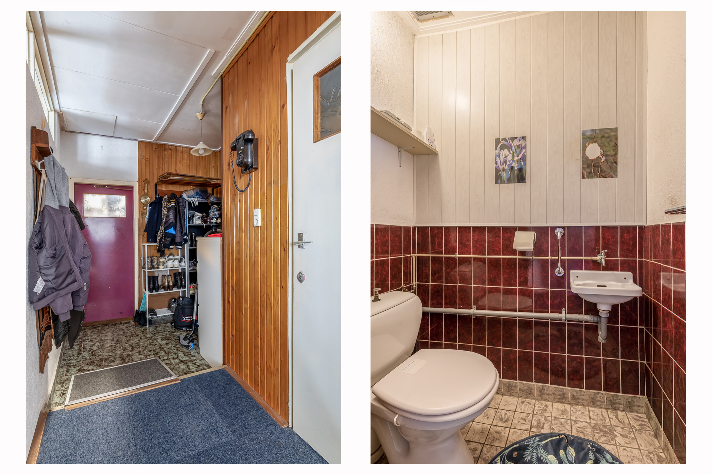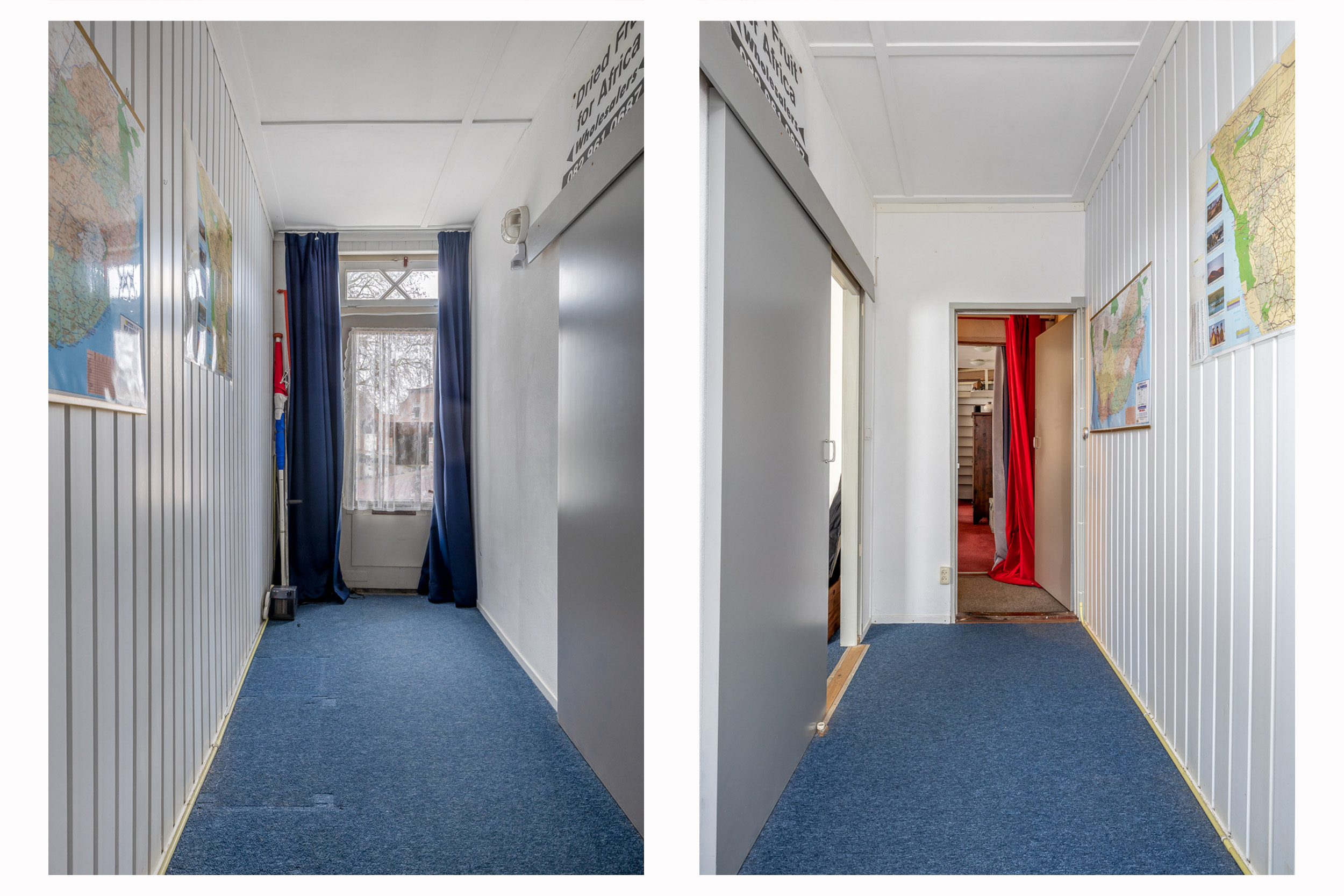 Bij binnenkomt betreed je de entree, waar zich aan de linkerzijde een extra kamer bevindt. Deze ruimte biedt volop mogelijkheden en is perfect in te richten als slaapkamer of comfortabele werkkamer. Aan het einde van de hal kom je in de woonkamer, een fijne en lichte leefruimte met een speelse indeling en veel daglicht. De open keuken sluit hier naadloos aan, waardoor er een gezellige woon- en eetruimte ontstaat. Vanuit de woonkamer bereik je een hal met toiletruimte. Deze hal vormt de verbinding naar de royale garage op de begane grond, een ruimte met volop potentie.