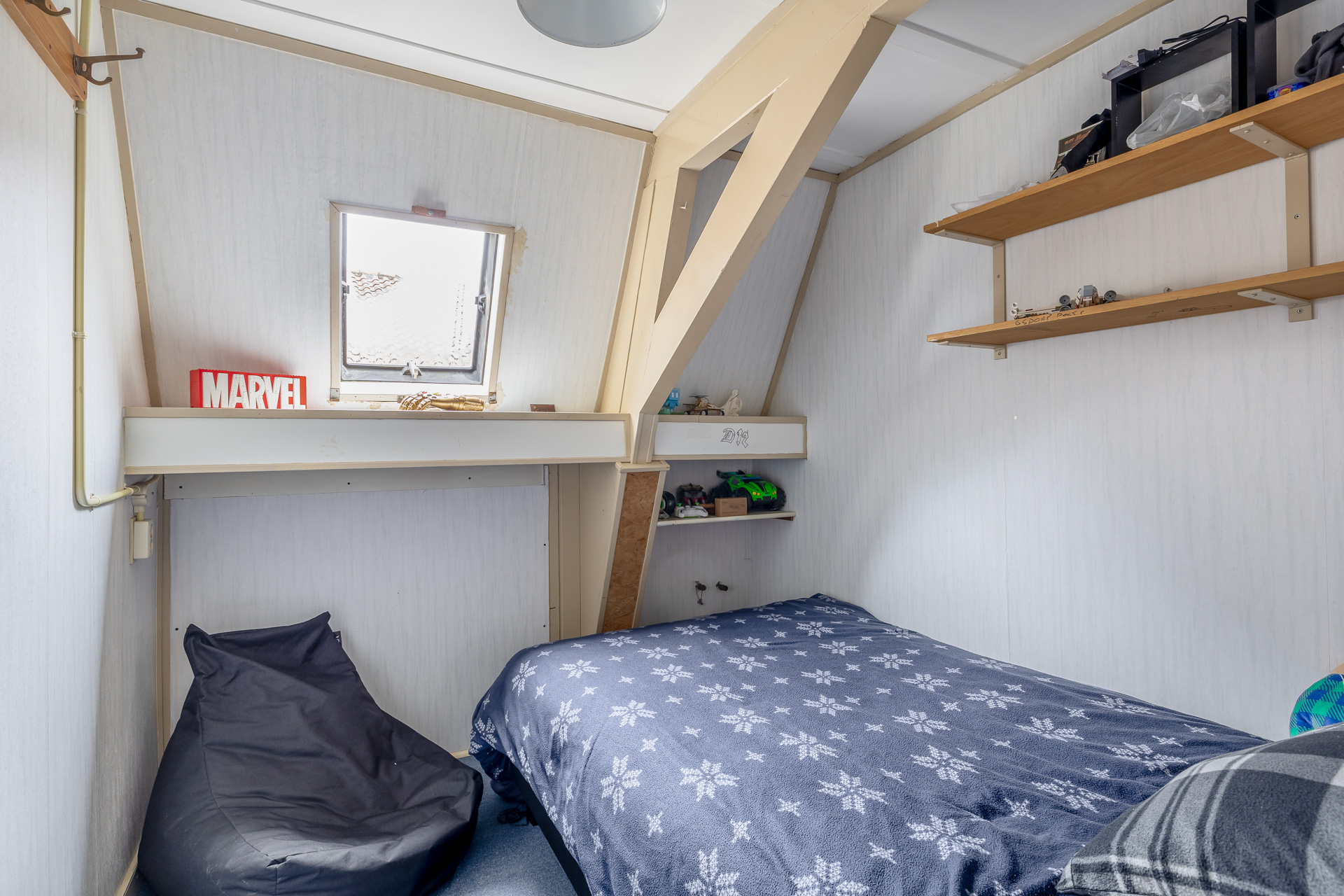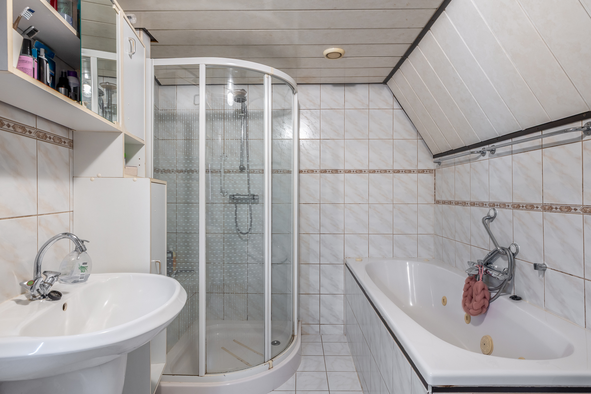 Op de verdieping tref je maar liefst vier slaapkamers. De badkamer is compleet ingericht met een ligbad, douche, wastafel en toilet. Daarnaast is er verrassend veel bergruimte aanwezig, waardoor alles netjes en uit het zicht opgeborgen kan worden. Vanaf de overloop stap je zo het dakterras op.