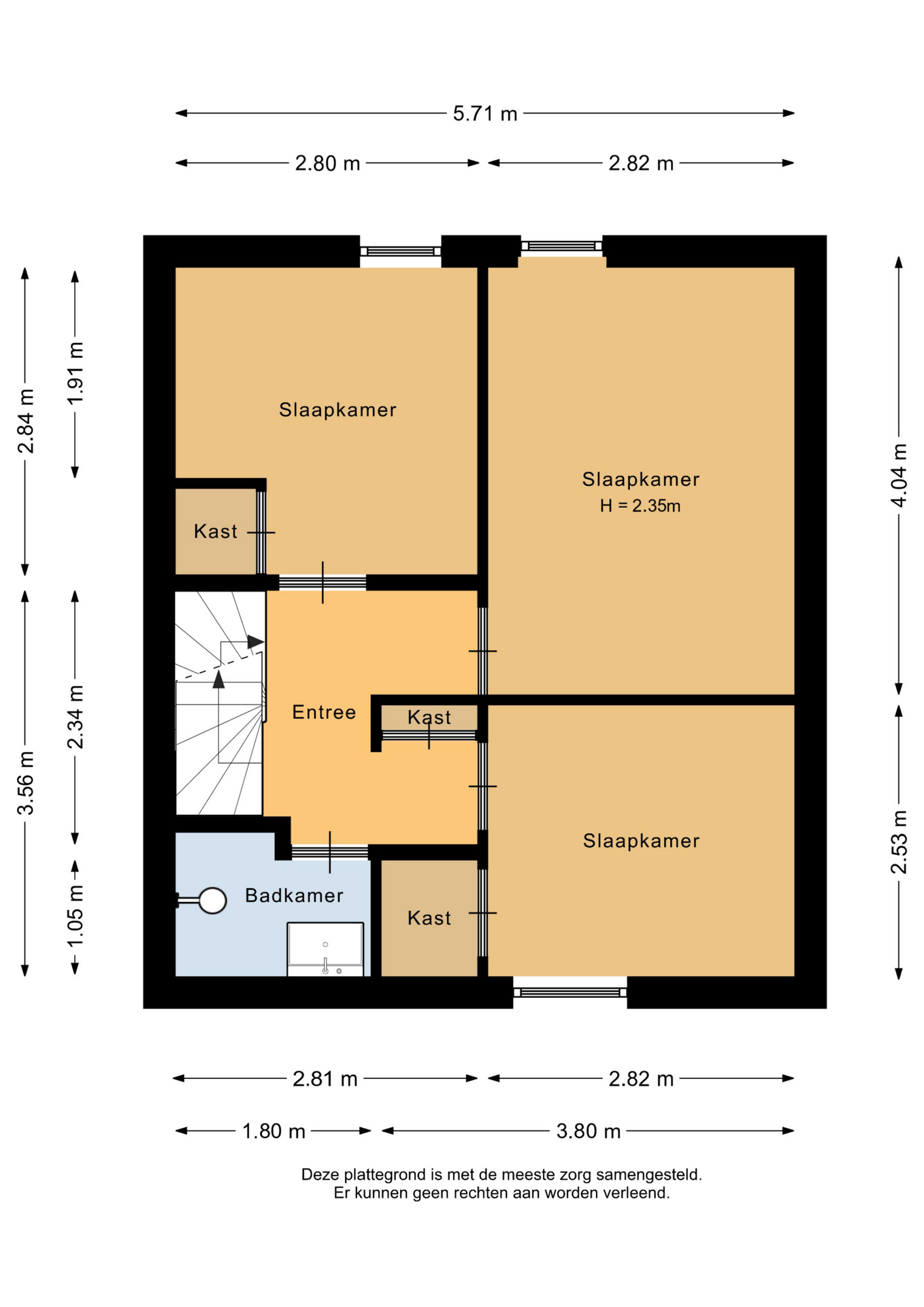 De overloop geeft toegang tot de drie slaapkamers , de badkamer en een vaste kast. De slaapkamers zijn voorzien van een laminaatvloer. Twee slaapkamers zijn voorzien van een vaste kast. De badkamer is geheel betegeld en voorzien van een douche, een wastafel en een designradiator.