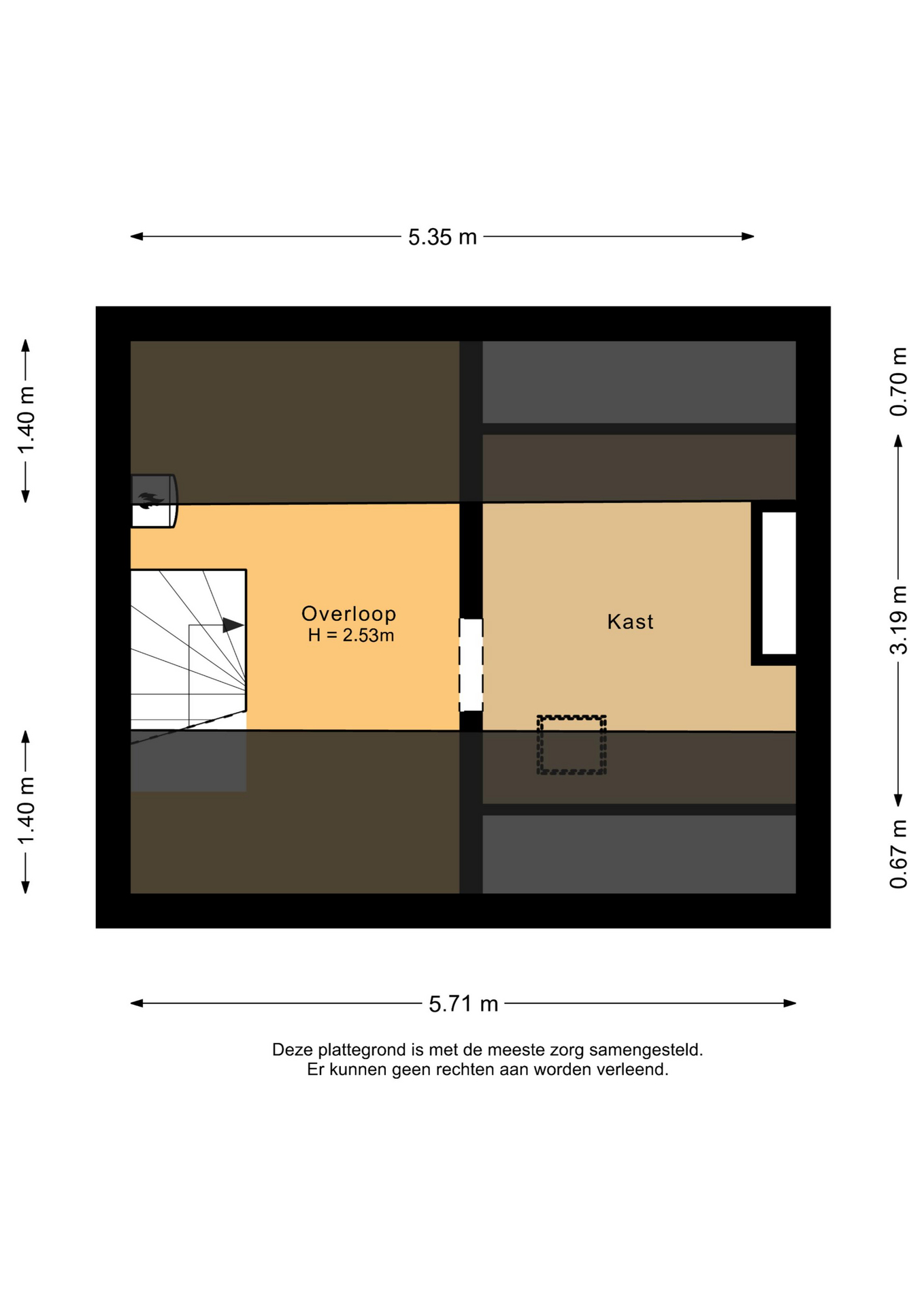 De tweede verdieping is ook met een vaste trap bereikbaar. De overloop, met CV-ketel, geeft toegang tot een ruime berging/kast. De berging is voorzien van een dakraam.