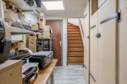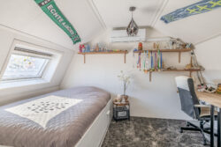 De begane grond biedt een veelzijdige ruimte die je volledig naar eigen wens kunt invullen. Denk aan een praktijk aan huis, kantoor, hobbyruimte of extra leefgedeelte. De mogelijkheden zijn eindeloos en maken deze woning bijzonder aantrekkelijk voor wie flexibiliteit zoekt. Daarnaast vind je hier een slaapkamer, ideaal voor gasten, een werkplek of gelijkvloers wonen. Het aanwezige keukenblok zorgt voor extra gemak en maakt deze verdieping nog functioneler, bijvoorbeeld bij werken aan huis.
