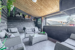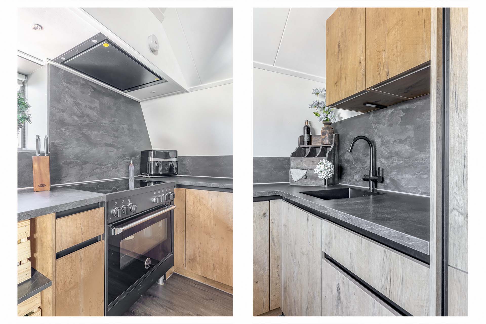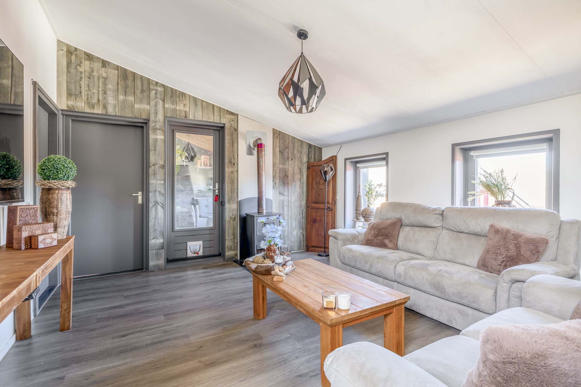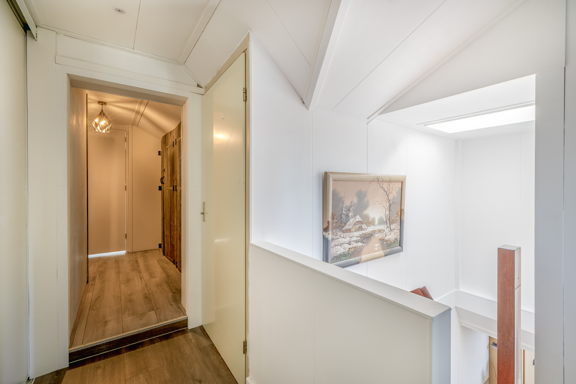 Op de eerste verdieping bevindt zich de sfeervolle woonlaag. De royale woonkamer voelt direct warm en uitnodigend aan, mede dankzij de houtkachel. Hier geniet je van lange avonden, gezelligheid en een prettige lichtinval. De open keuken sluit mooi aan op de woonkamer en is voorzien van inbouwapparatuur en een heetwaterkraan. Praktisch en stijlvol, precies wat je nodig hebt voor dagelijks comfort. Daarnaast zijn er drie fijne slaapkamers aanwezig, stuk voor stuk goed in te delen naar jouw wensen. De badkamer is compleet en comfortabel ingericht met een inloopdouche voorzien van regendouche, een whirlpool, toilet, wastafelmeubel en een designradiator. Een verzorgde ruimte waar je de dag ontspannen begint of juist afsluit.