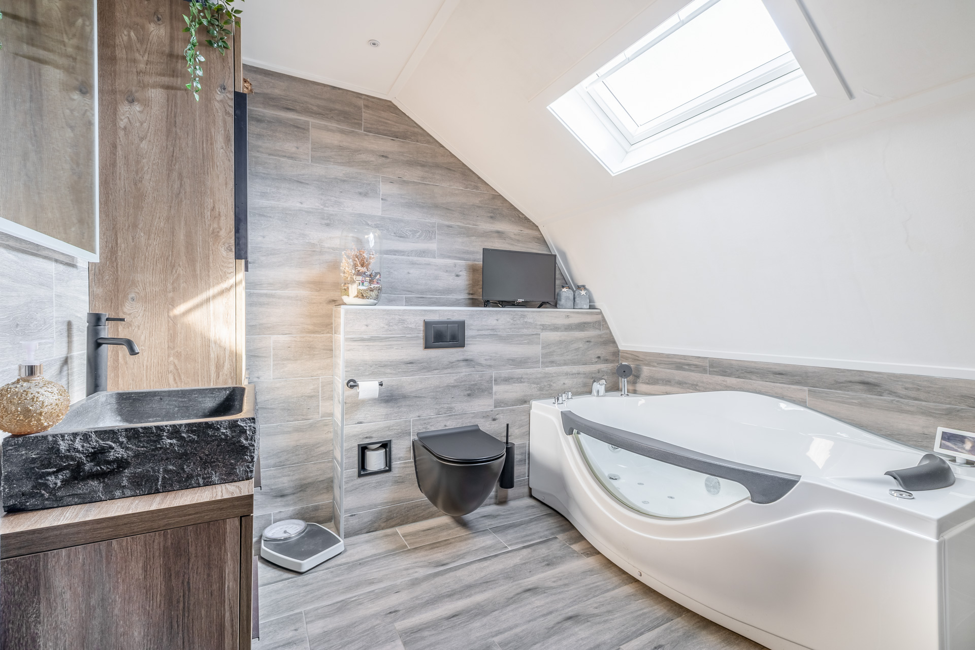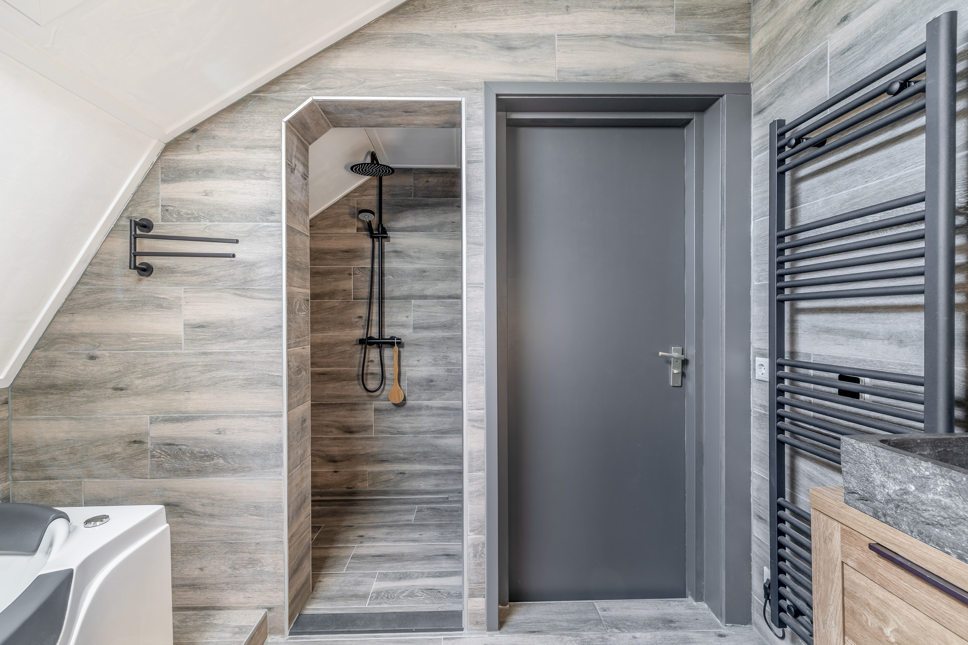 – Luxe badkamer met regendouche, whirlpool en designradiator