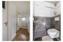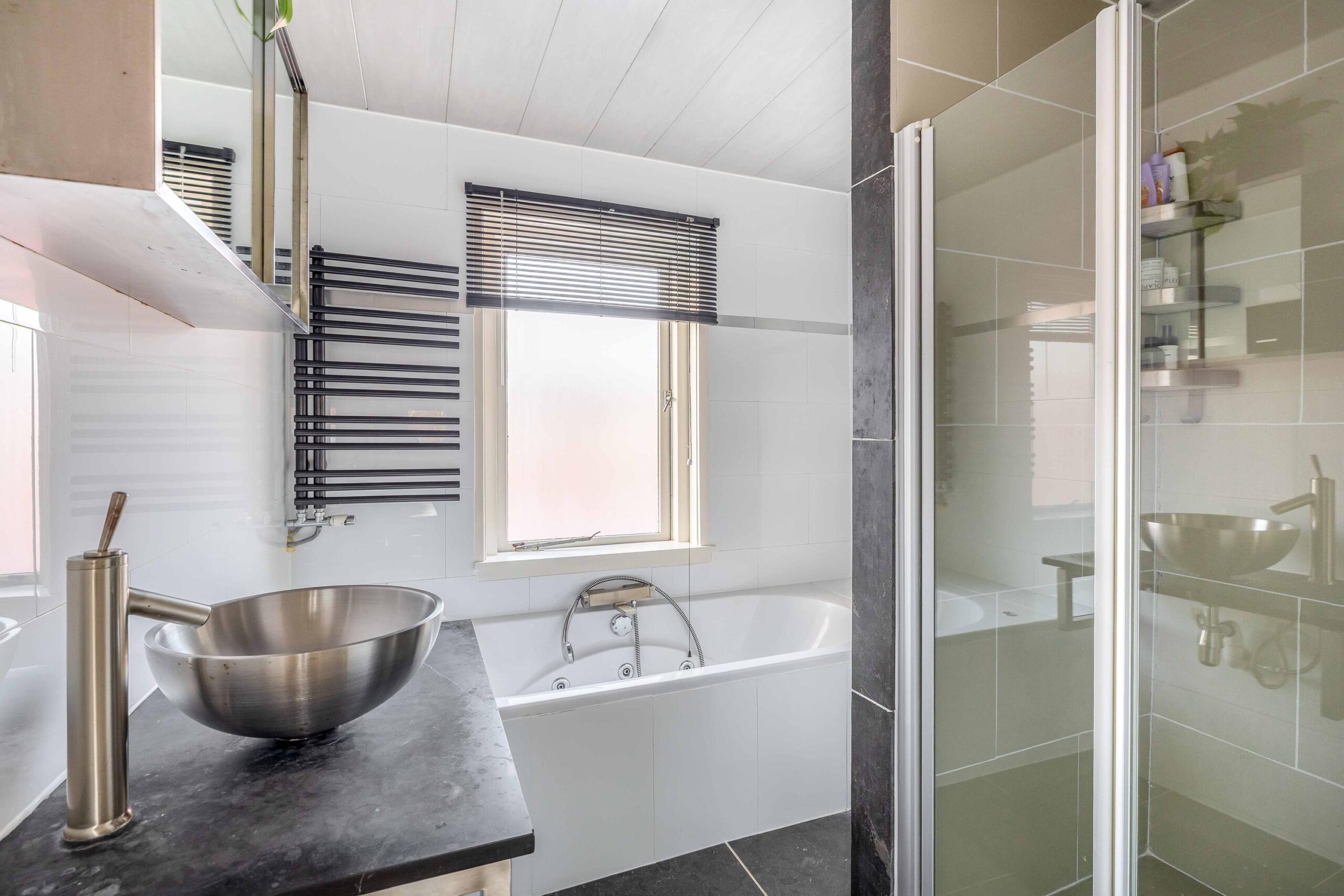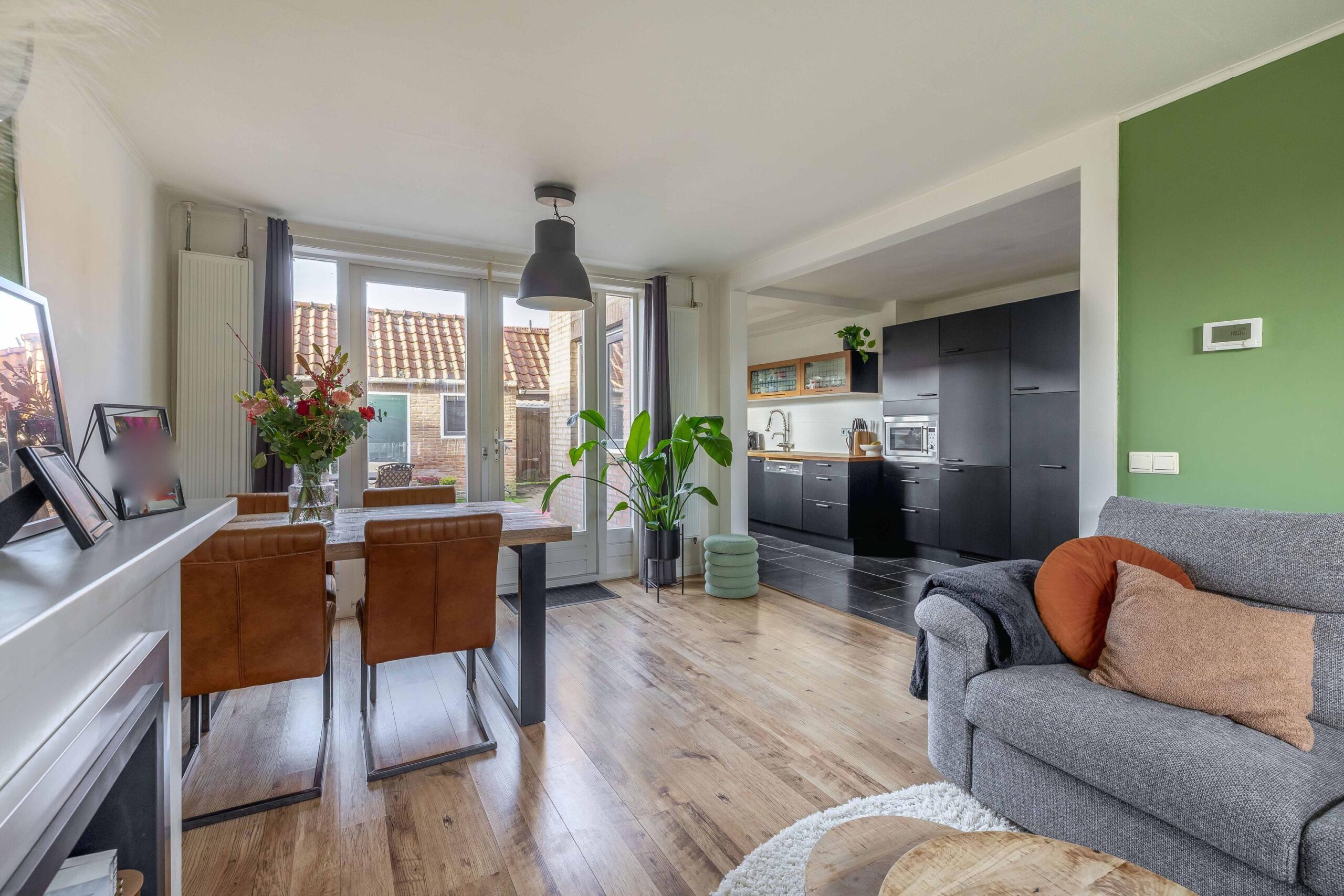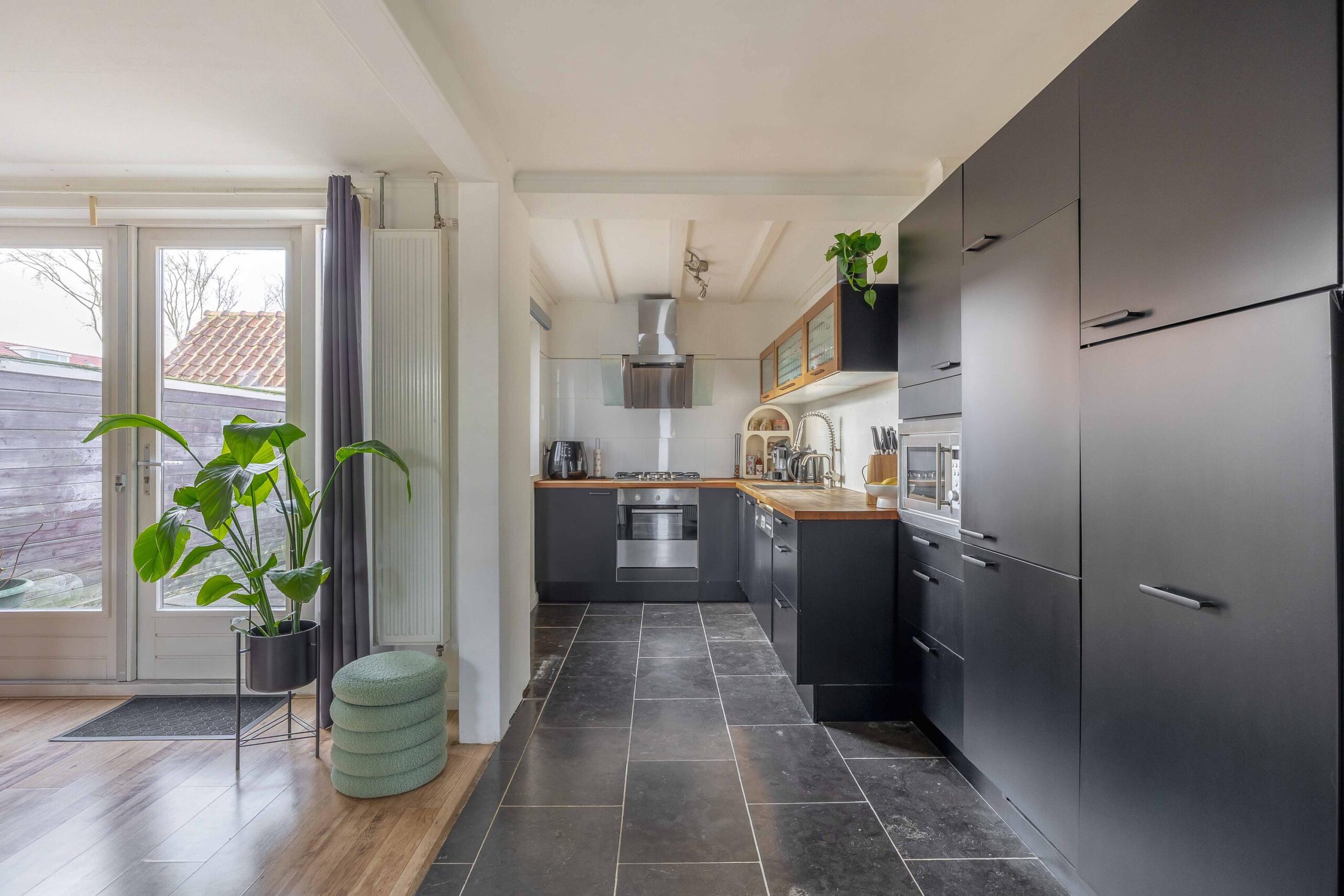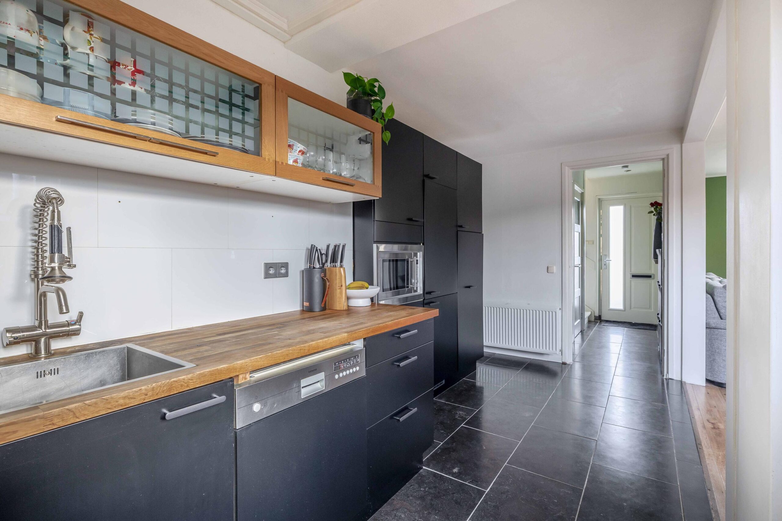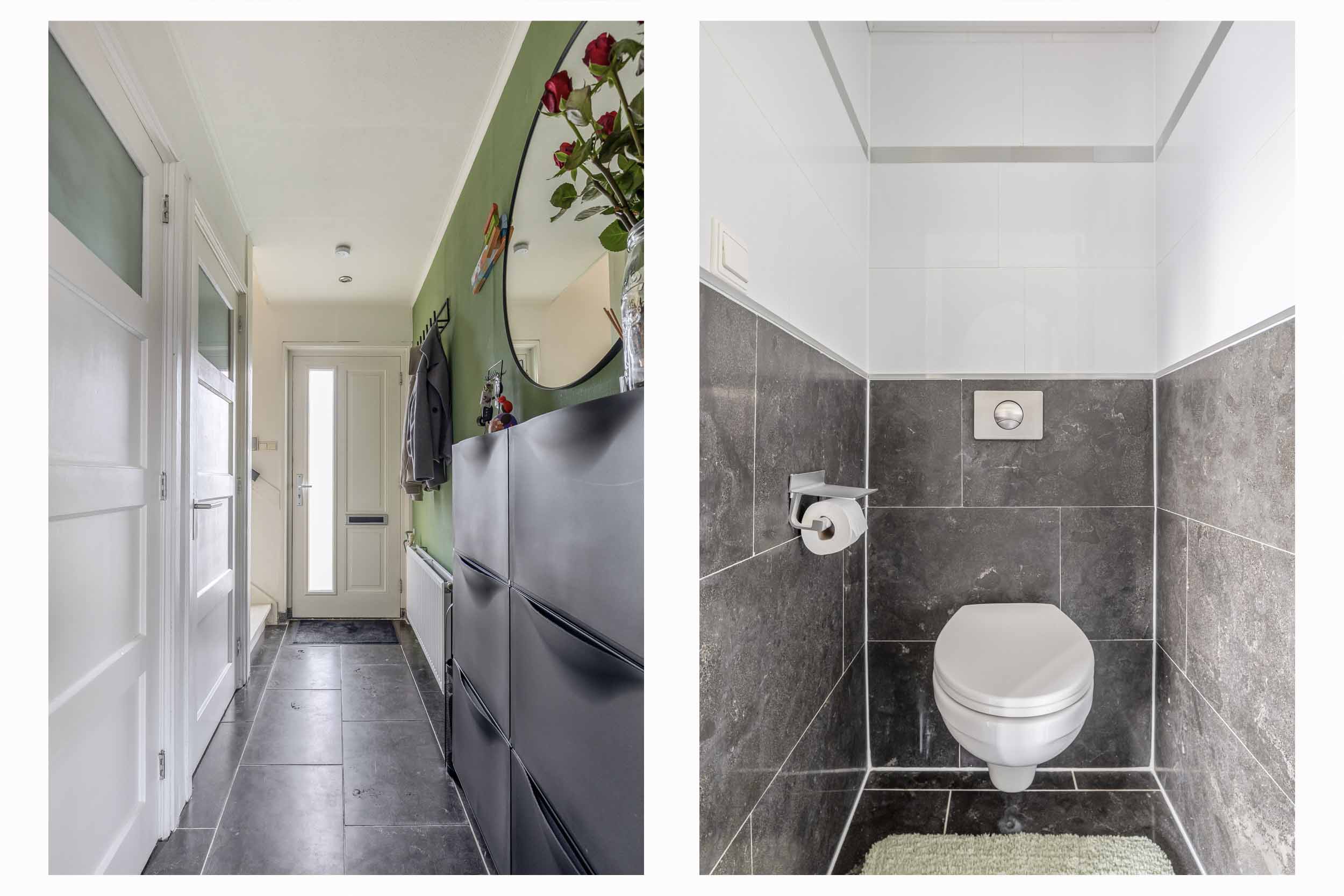 De entreehal met toilet staat in open verbinding met de woonkamer en keuken. De doorzonwoonkamer is heerlijk licht en biedt via twee openslaande deuren direct toegang tot de achtertuin. De open keuken is compleet uitgerust en vormt een inspirerende plek voor culinaire momenten en gezelligheid.