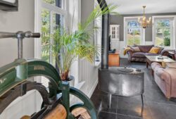De landelijke keuken is ruim, volledig uitgerust en nodigt uit tot gezellig koken en samenkomen. Het Falcon Elan gasfornuis met maar liefst vier ovens is een musthave voor de hobbykok. Via de bijkeuken loopt u gemakkelijk naar het buitenterras, ideaal voor een ontbijt in de ochtendzon of een diner onder de sterren.
