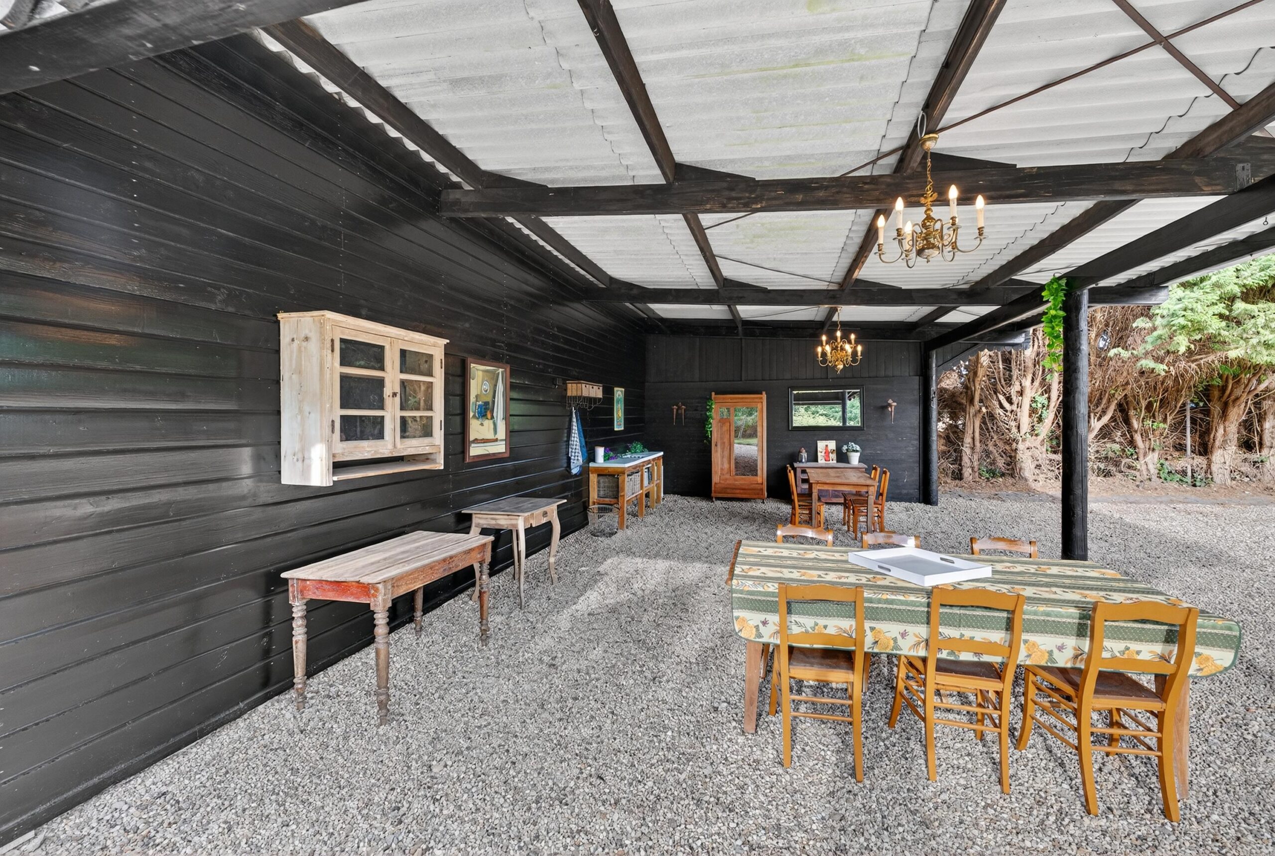Het perceel van 3.275 m² is een ware buitenoase. De tuin is zorgvuldig aangelegd en biedt volop ruimte voor ontspanning, spel en vrije tijd in de natuur. Hier ervaart u totale privacy en rust, omgeven door groen. Diverse terrassen nodigen uit tot lange zomerse dagen en gezellige avonden. De stenen schuur/garage met de mooie buitenkamer voegt functionaliteit en charme toe, ideaal voor opslag of creatieve projecten. Wanneer de zomer nadert, hangen de volwassen fruitbomen vol vruchten: appels die blinken in het zonlicht, peren die hun elegante vormen tonen, kersen die als kleine juwelen schitteren. Het is alsof de bomen gul hun schatten aanbieden, om je te herinneren aan de overvloed van de natuur.