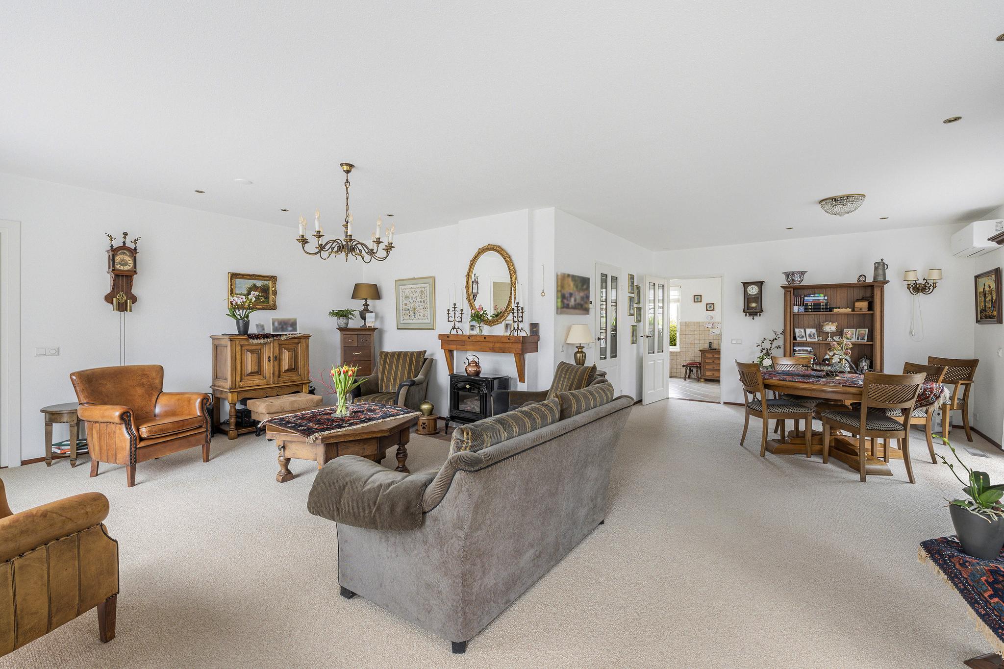 De heerlijk ruime achtertuin, op het noordwesten gelegen, is voorzien van diverse terrassen, een tuinhuis en heel veel borders met planten, struiken en bomen. De zeer ruime tuin is circa 100 meter diep. Echte tuinliefhebbers kunnen hier hun hart ophalen! Rechts van de woning heeft u via openslaande deuren toegang tot de fietsenstalling en berging. De oprit biedt voldoende parkeergelegenheid voor meerdere auto’s.