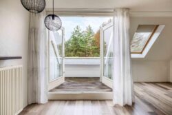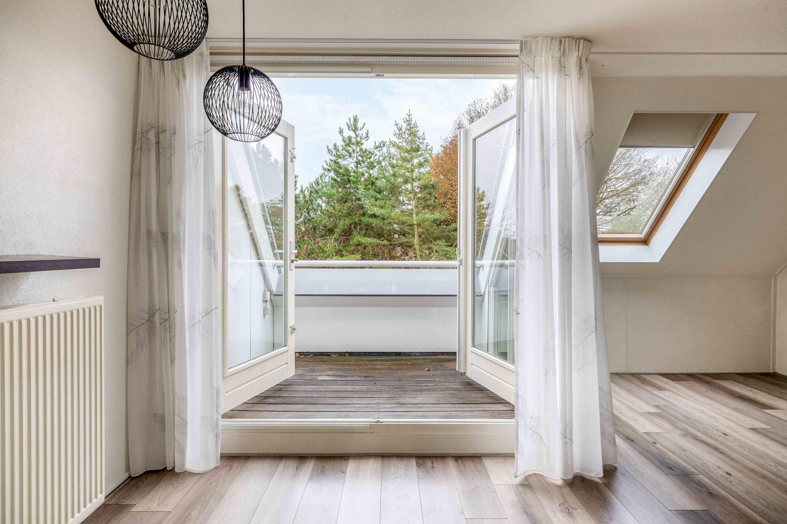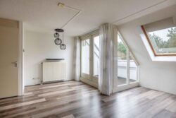 De open hoekkeuken biedt volop opbergruimte en is uitgerust met diverse apparatuur: kookplaat, afzuigkap, combi-oven, koel-/vriescombinatie en vaatwasser. De ruime slaapkamer aan de voorzijde heeft een laminaatvloer en maar liefst twee dakramen waardoor de ruimte heerlijk licht is.