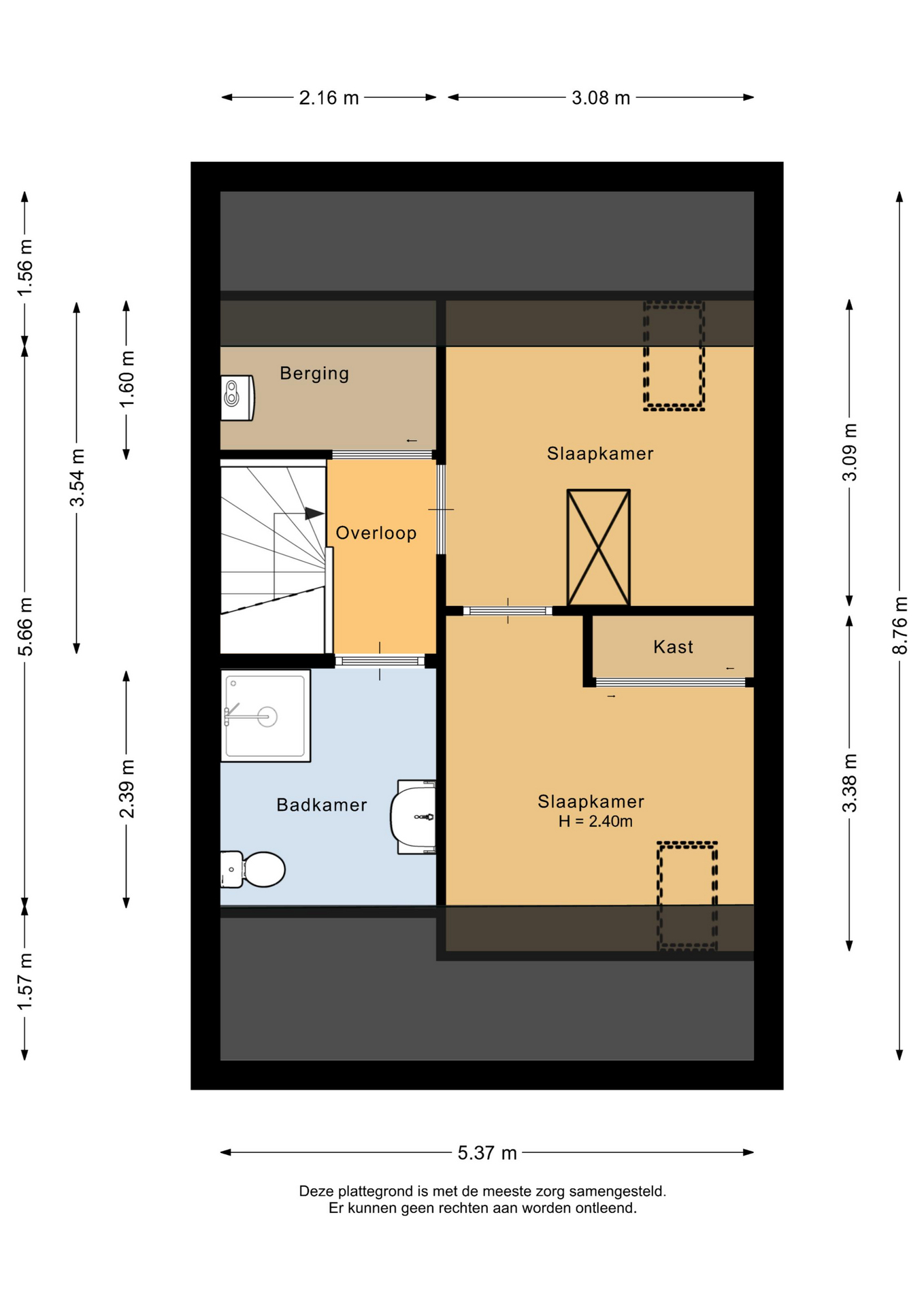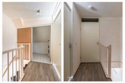 Op de tweede verdieping vind je de overloop die toegang geeft tot twee slaapkamers, de badkamer en een bergruimte met CV-ketel. Beide slaapkamers hebben een laminaatvloer en een dakraam; de slaapkamer aan de voorzijde beschikt bovendien over een vaste kast. De volledig betegelde badkamer is uitgerust met een douche, wastafel, designradiator en toilet.