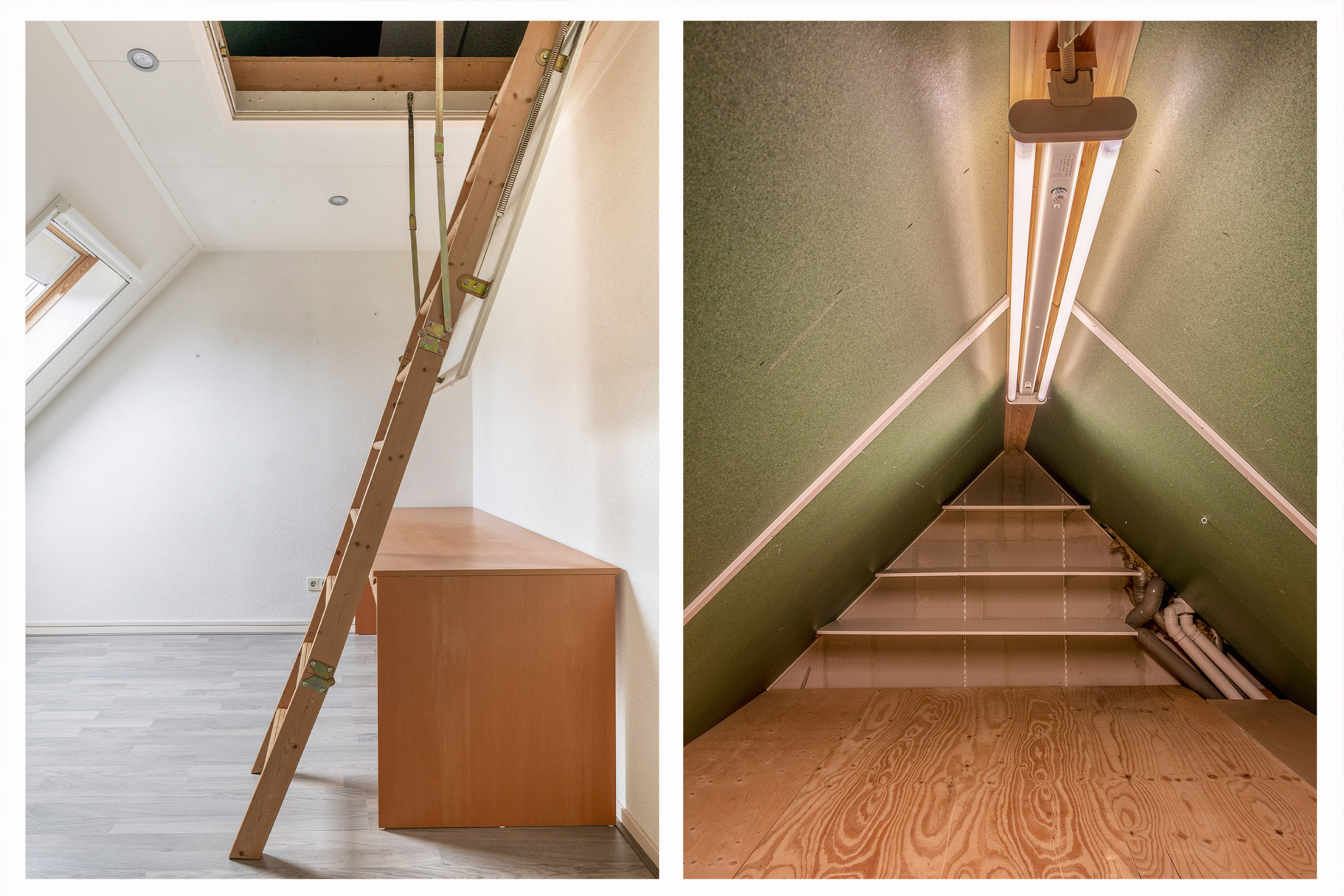 Via de slaapkamer aan de achterzijde bereik je de vliering met een vlizotrap. Perfect voor extra opslagruimte!