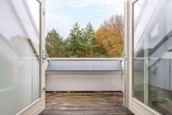 Het zonnige balkon op het zuiden is bereikbaar vanuit de woon-/eetkamer. Een heerlijke plek om te genieten van een kop koffie, een goed boek of de laatste zonnestralen van de dag.