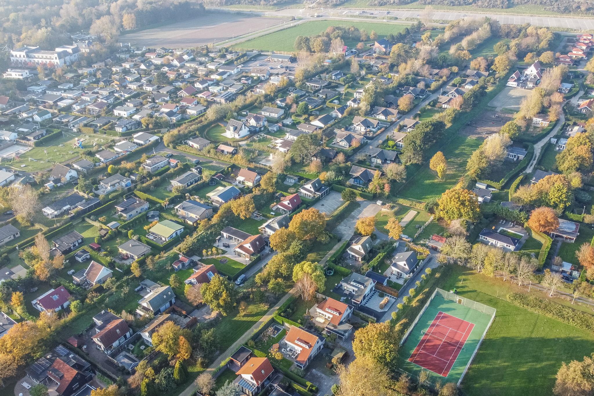 De heerlijk ruime tuin, rondom de recreatiewoning gelegen, is voorzien van een mooi terras, gazon en allerlei planten en bomen. De haag rondom zorgt voor veel privacy. Achter in de tuin staat de houten berging. Naast de berging staat een luxe buiten BBQ. Op het park is een privé parkeerplaats aanwezig. Ook bent u mede-eigenaar van een goed verzorgde tennisbaan, jeu de boules baan en groot grasveld/speelveld.