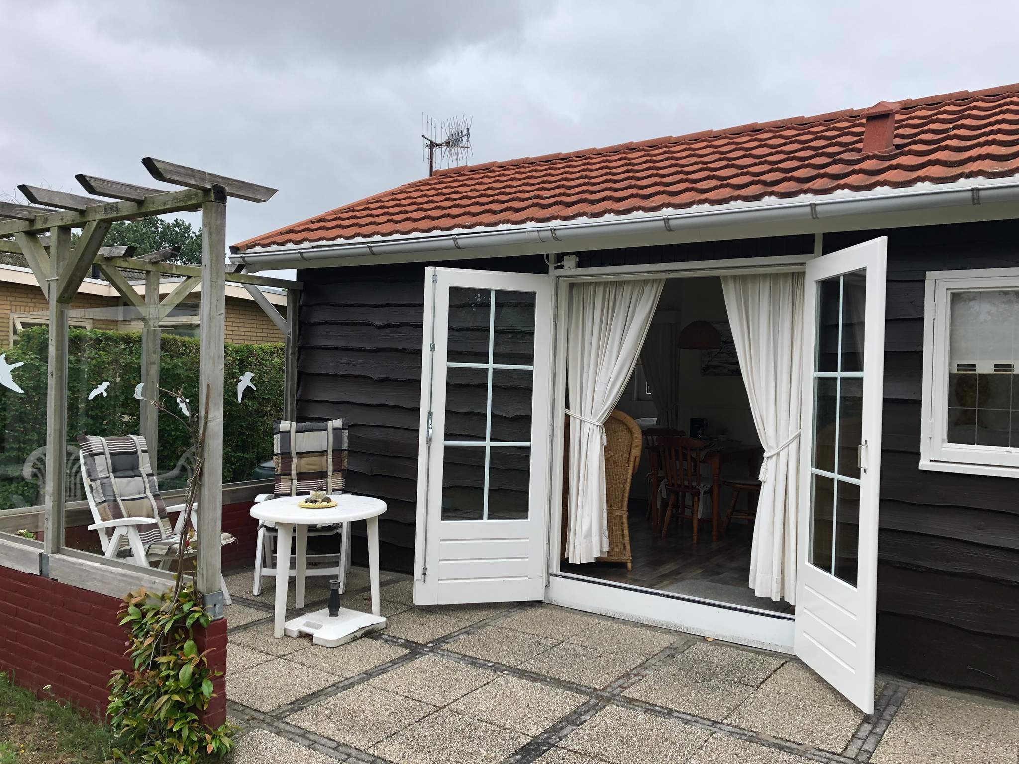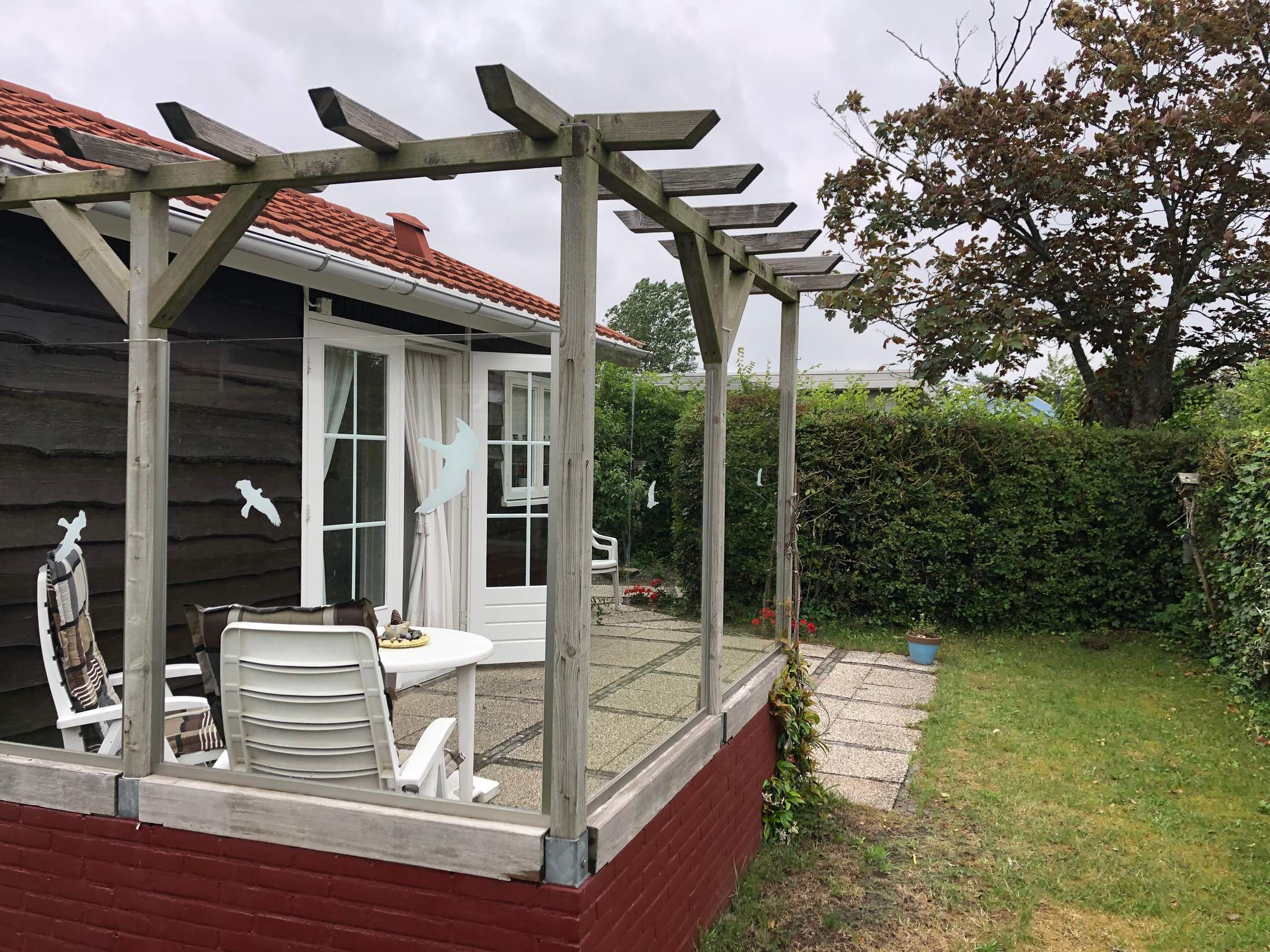 De heerlijke ruime tuin bevindt zich rondom de bungalow en is voorzien van bestrating, gazon en allerlei beplanting.