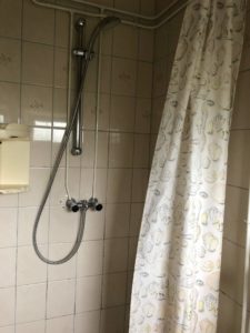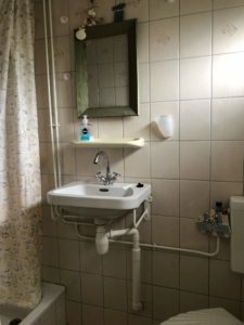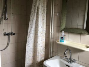 – Badkamer met douche, wastafel en toilet