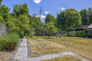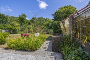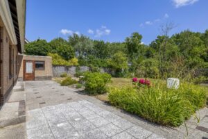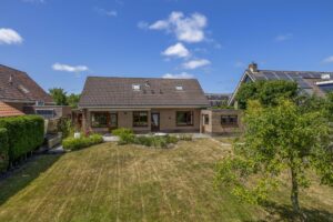 De ruime tuin is rondom de woning gelegen. Direct achter de woning is het terras gesitueerd. De achtertuin, gelegen op het zuidoosten, is verder voorzien van een groot gazon en borders met planten, struiken en bomen. Het is hier heerlijk vertoeven. Vanuit de tuin en vanaf de oprit is de garage toegankelijk. In de garage en op de oprit is voldoende plaats om je auto te parkeren.