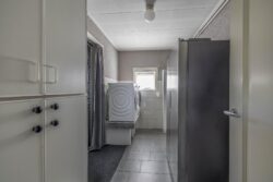 Vanaf de overloop zijn drie slaapkamers bereikbaar, terwijl de vierde slaapkamer via de master bedroom te betreden is. Deze extra kamer kan ook eenvoudig worden omgetoverd tot een luxe walk-in closet. De andere slaapkamer aan de achterzijde biedt toegang tot het dak – een heerlijke plek om rustig de dag te beginnen met een kop koffie en uitzicht over de omgeving. Daarnaast is er vanaf de overloop via een vlizotrap toegang tot de vliering, ideaal voor extra bergruimte en het netjes opbergen van alles wat je niet dagelijks nodig hebt.