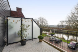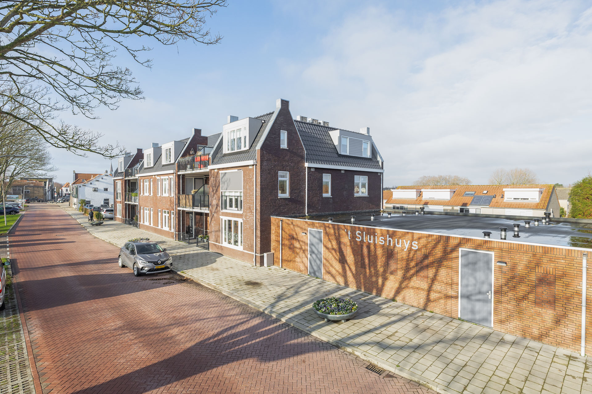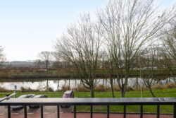 Het balkon, op het zuiden gelegen, is toegankelijk vanuit de woonkamer. Een plek om heerlijk te ontspannen terwijl je uitkijkt over het kabbelende water. De externe berging bevindt zich tussen de twee complexen en biedt praktische opbergruimte. Links van het appartementencomplex is de parkeerplaats, waar je een eigen parkeerplaats hebt.