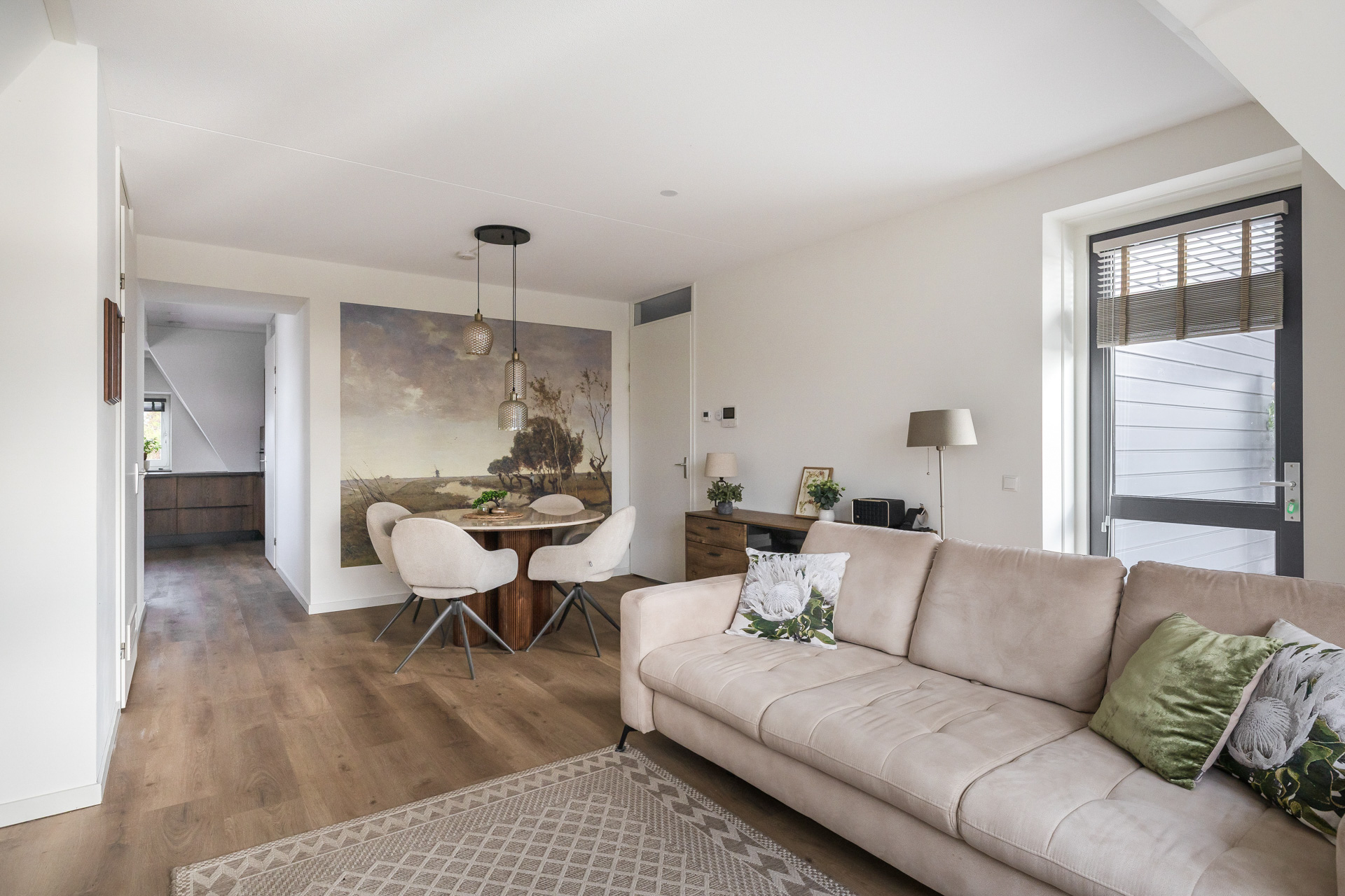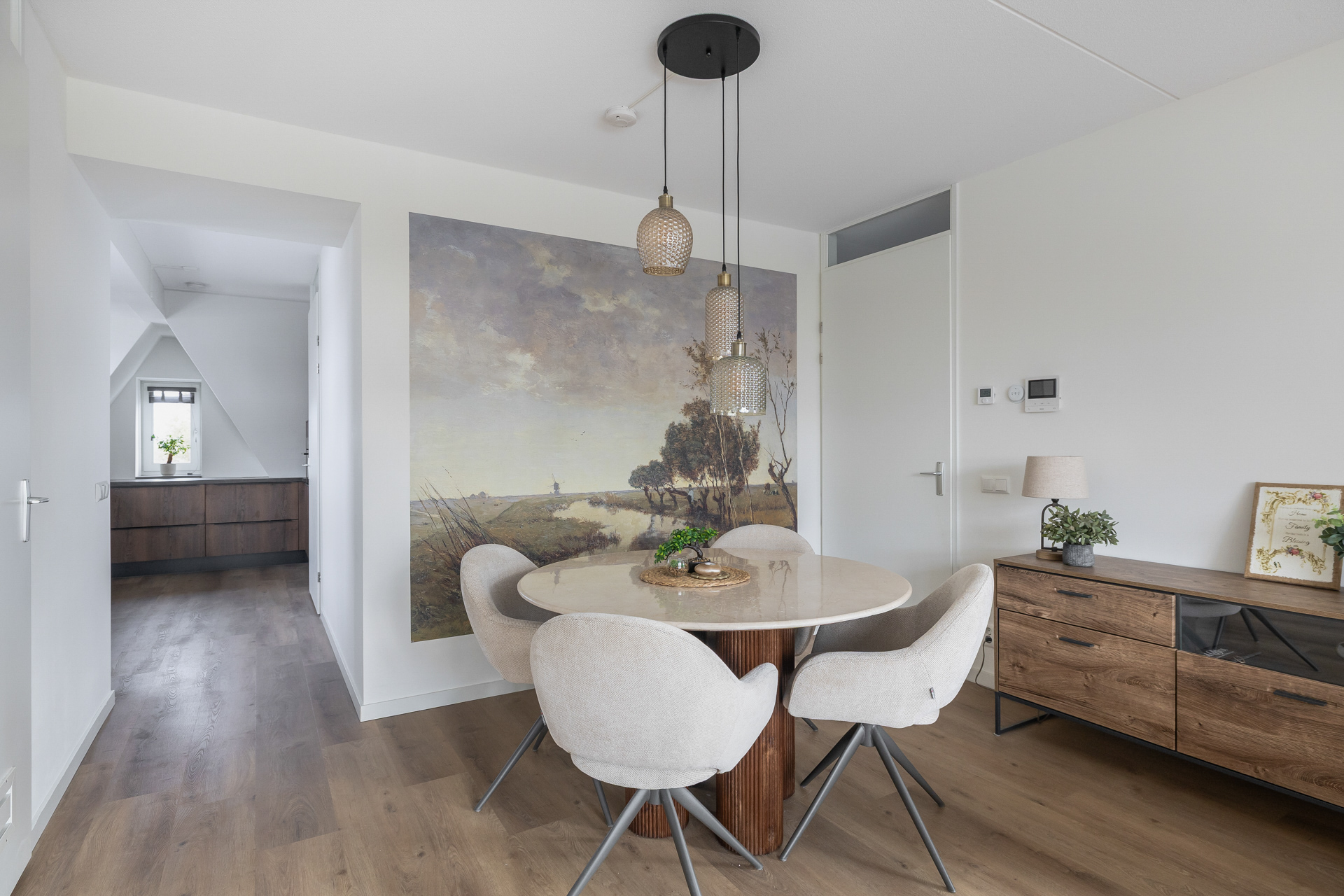 De woonkamer ligt aan de voorzijde en trakteert je op een vrij uitzicht over het water. De royale raampartijen zorgen voor een natuurlijke lichtinval. De eetkamer sluit harmonieus aan op de woonkamer, waardoor een uitnodigende leefruimte ontstaat die perfect is voor lange diners en sfeervolle avonden.