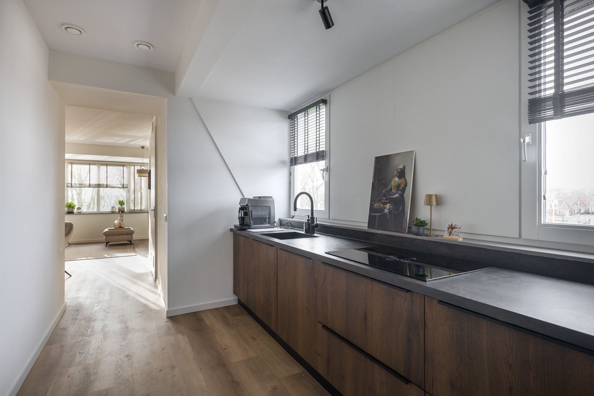 De moderne open keuken is een absolute blikvanger. Veel opbergruimte en uitgerust met hoogwaardige apparatuur, waaronder kookplaat, geïntegreerde afzuigkap, combi oven, koel vriescombinatie, vaatwasser en Quooker. Een thuis voor iedereen die graag kookt en met plezier gasten ontvangt.