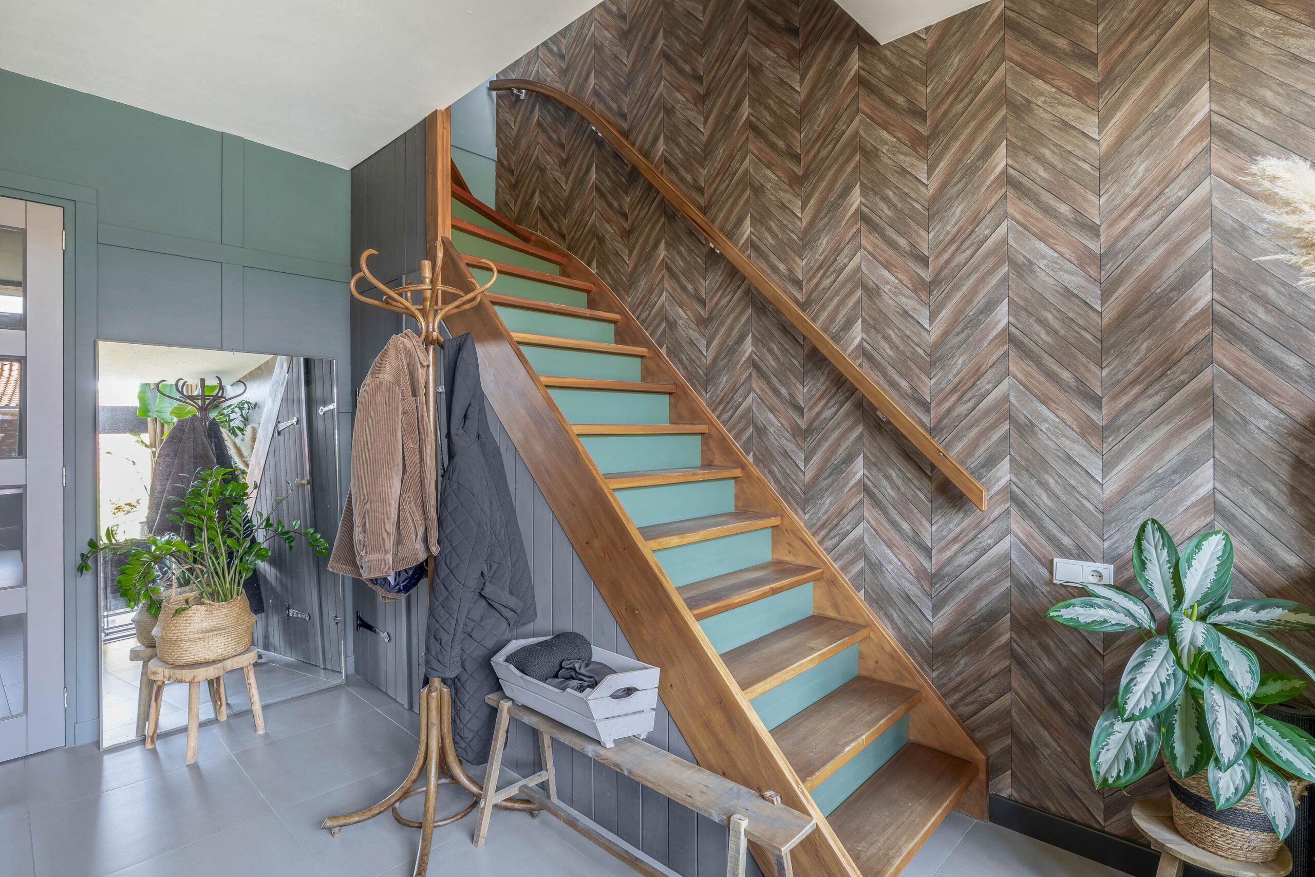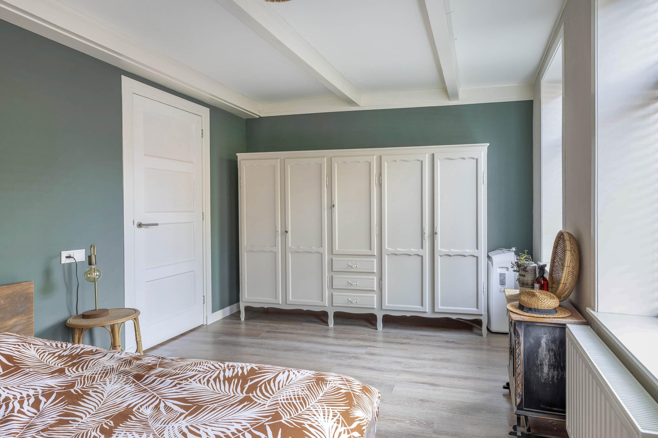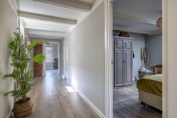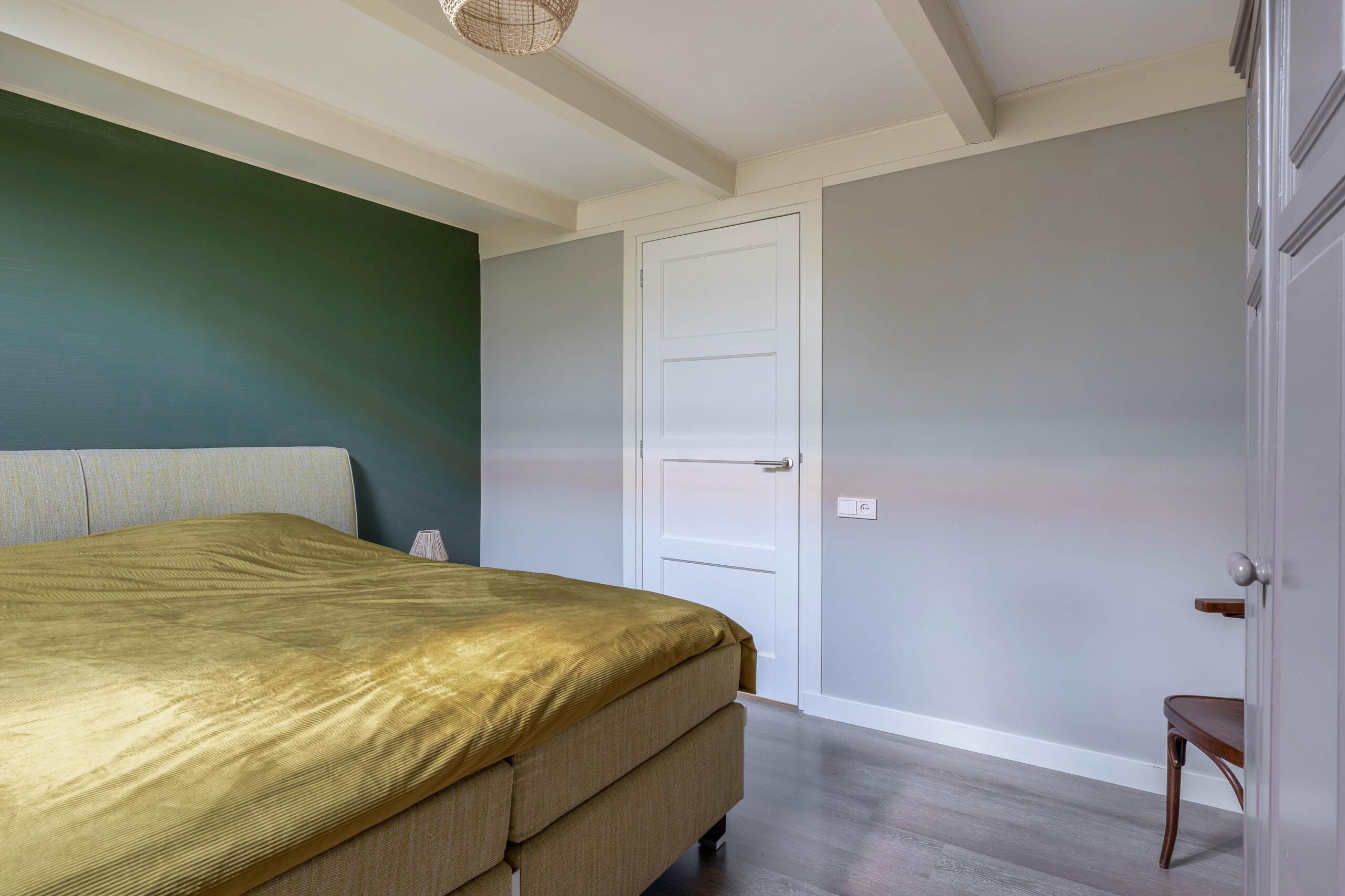 Vanuit de keuken komt u via een vaste trap direct in de woonkamer met vide, welke zorgt voor een open karakter met de woonkeuken. De ruime woonkamer, met houten vloer en grote raampartijen, is zeer sfeervol. De grote raampartijen zorgen voor veel lichtinval. Vanuit de woonkamer komt u op de lange, lichte overloop. Deze geeft toegang tot de drie slaapkamers en de badkamer, tevens de vlizotrap naar de zolder. De slaapkamers en overloop zijn voorzien van een laminaatvloer en balkenplafonds. De geheel betegelde badkamer is voorzien van een ligbad, een inloopdouche, een badmeubel met dubbele wastafel , een toilet, inbouwspots en vloerverwarming.