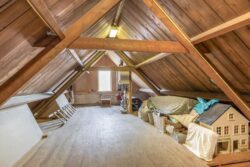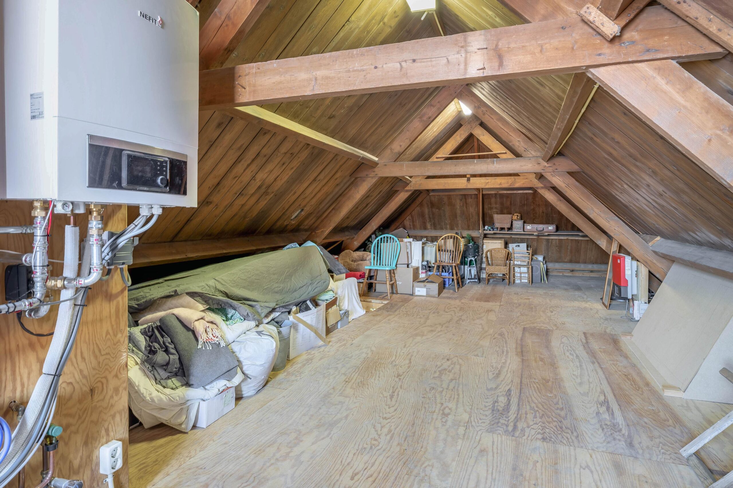 Via een vlizotrap is de ruime zolder bereikbaar. De zolder, met warmtepomp en raam, is geschikt als opbergruimte.