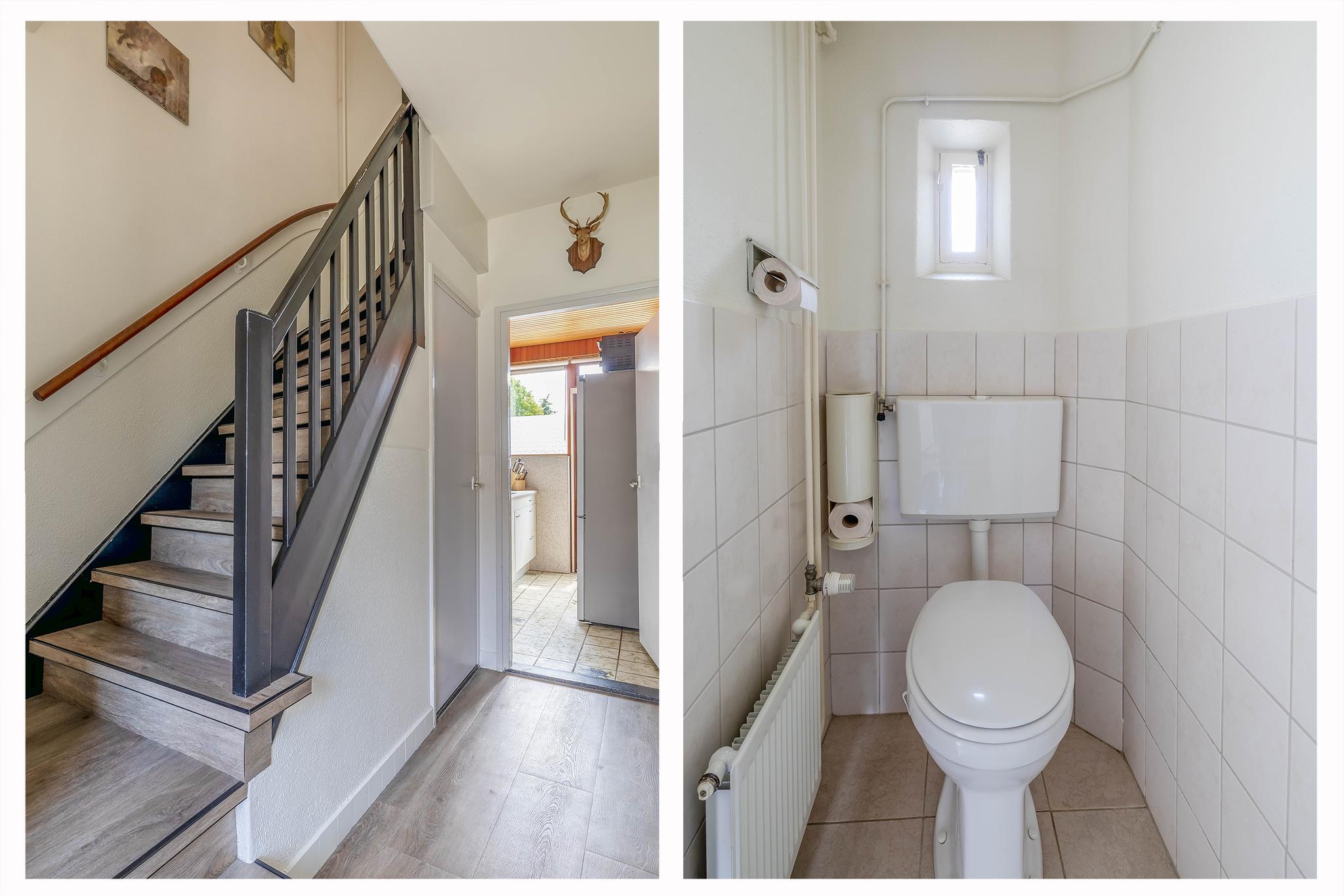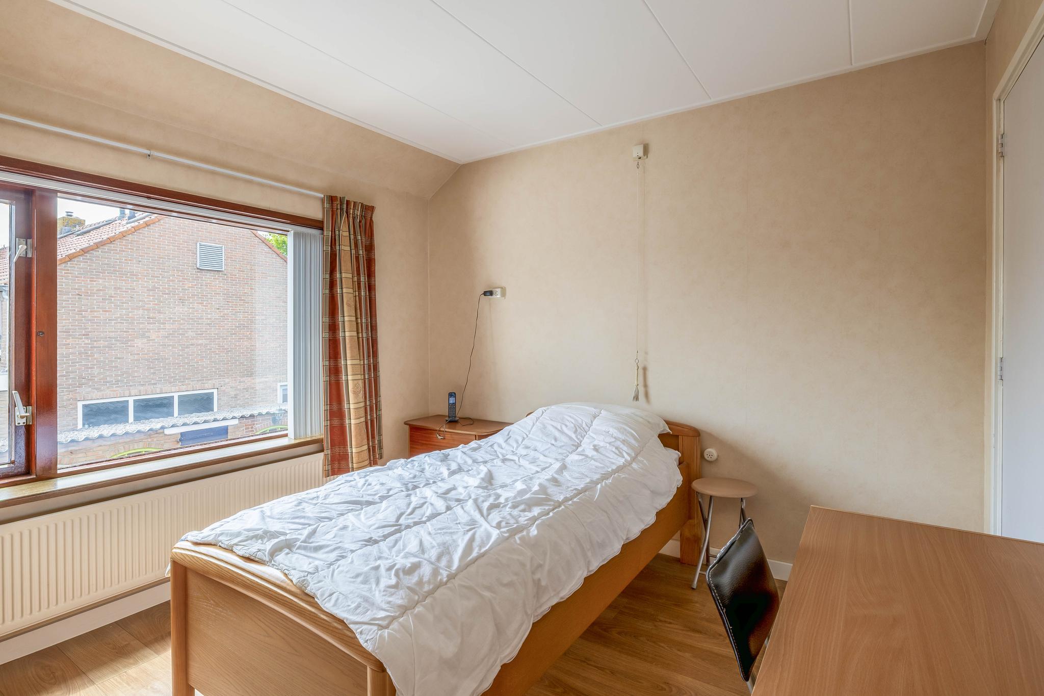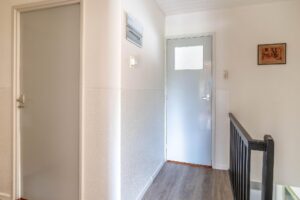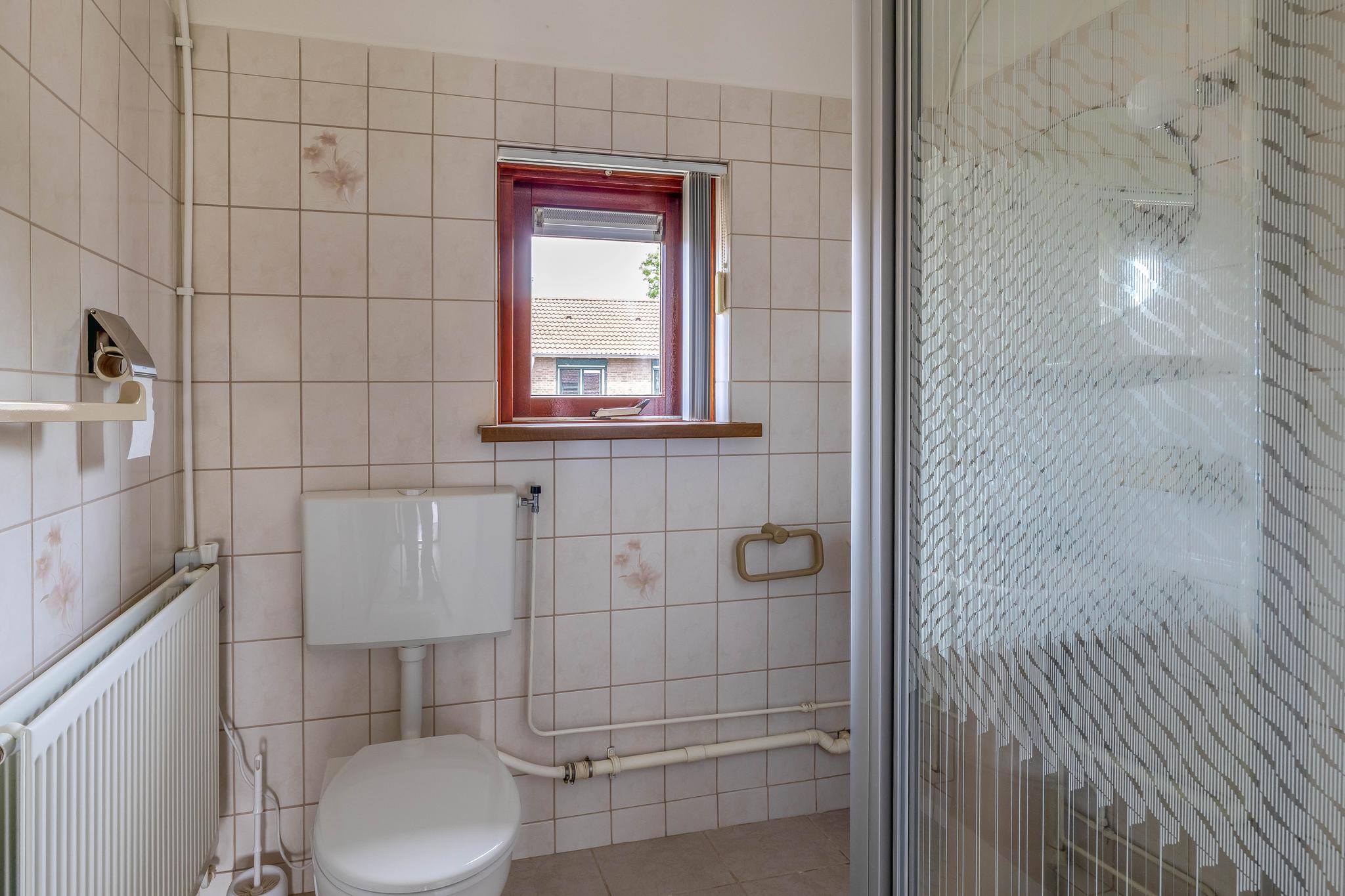 Op de eerste verdieping bevinden, zich twee comfortabele slaapkamers, een kleinere slaapkamer en de badkamer. De kleinere kamer is geschikt als slaapkamer, maar kan ook worden gebruikt als hobby- of werkruimte. De badkamer is geheel betegeld en compleet met douche, toilet en wastafel.