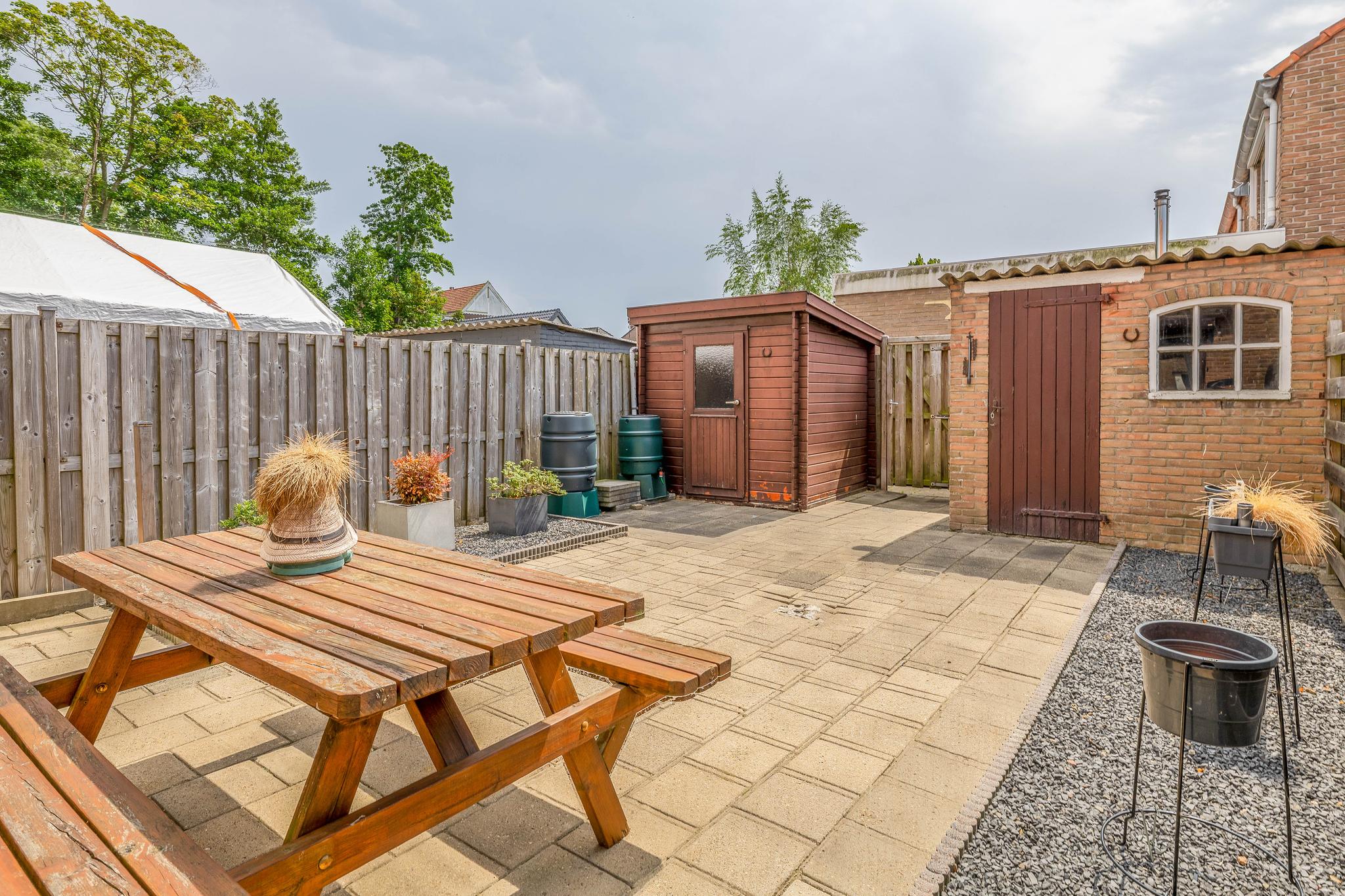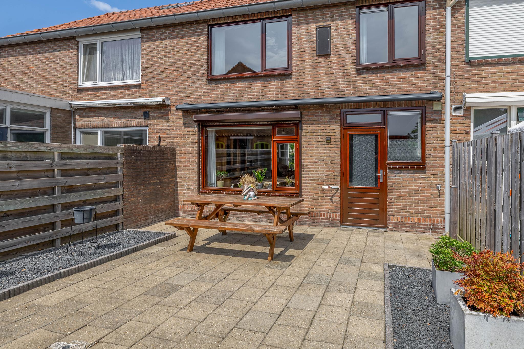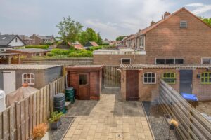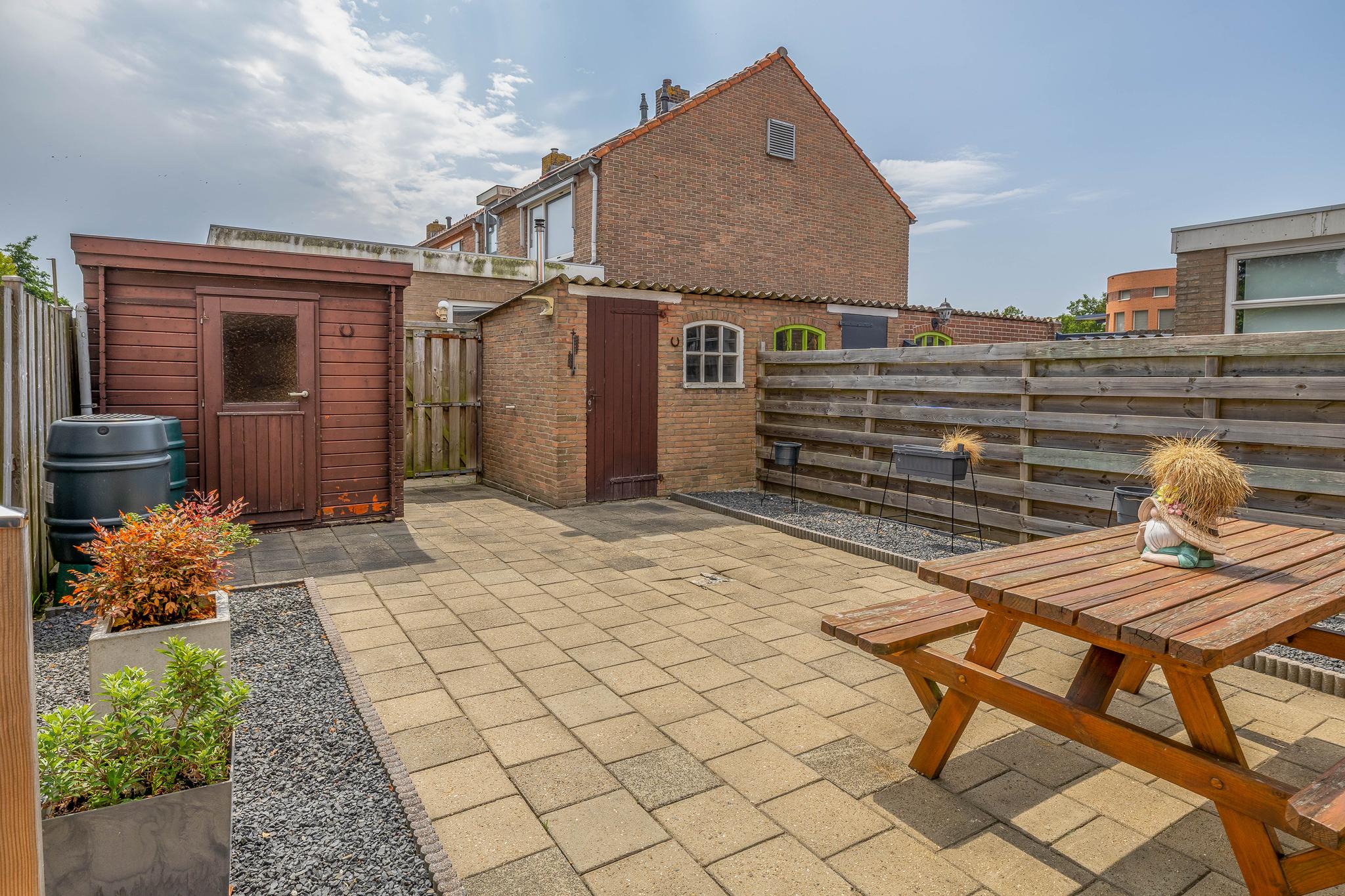 De voor- en achtertuin zijn onderhoudsvriendelijk aangelegd en voorzien van bestrating en plantenbakken. De achtertuin heeft een zonnige, zuidelijke ligging, twee bergingen en een achterom. Ben jij een liefhebber van de zon? Dan is een tuin op het zuiden echt een plus!