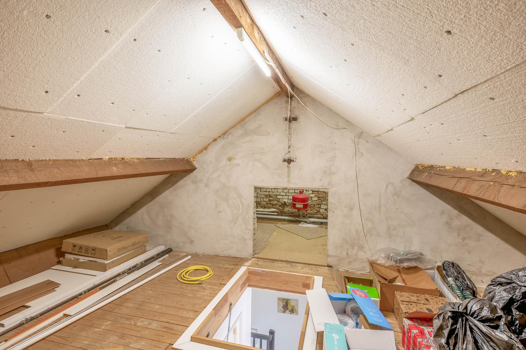 Middels een vlizotrap is vanaf de overloop de vliering bereikbaar. Op de vliering is de CV-ketel geplaatst en is veel opbergruimte.