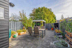 De onderhoudsarme achtertuin is ideaal gelegen op het zuidoosten, zodat je hier optimaal van de zon kunt genieten. Achterin de tuin vind je een fijne overkapping, een heerlijke plek om te ontspannen met een goed boek of een gezellige barbecue. Via de achterpoort bereik je eenvoudig de parkeerplaats achter de woning.