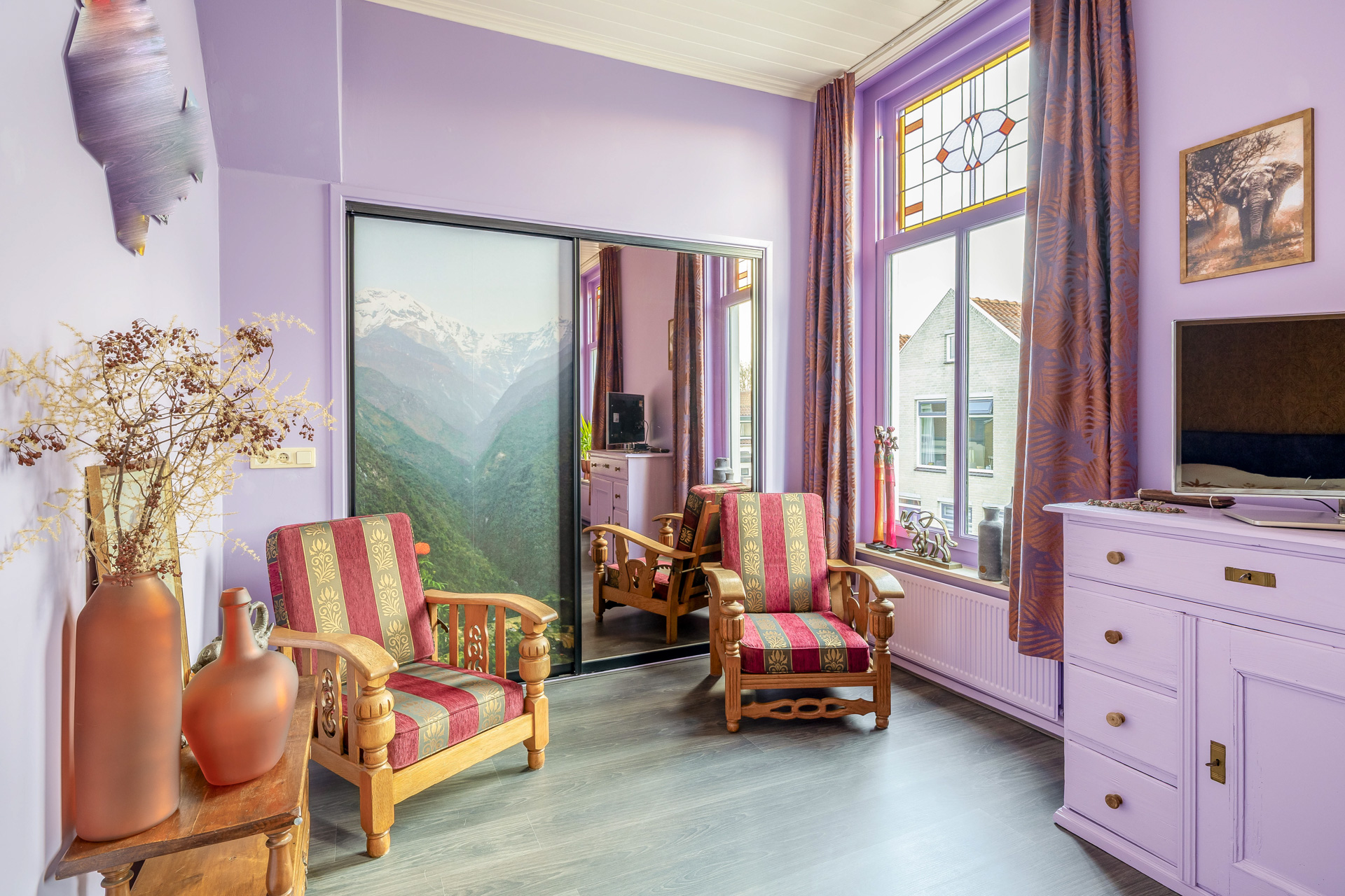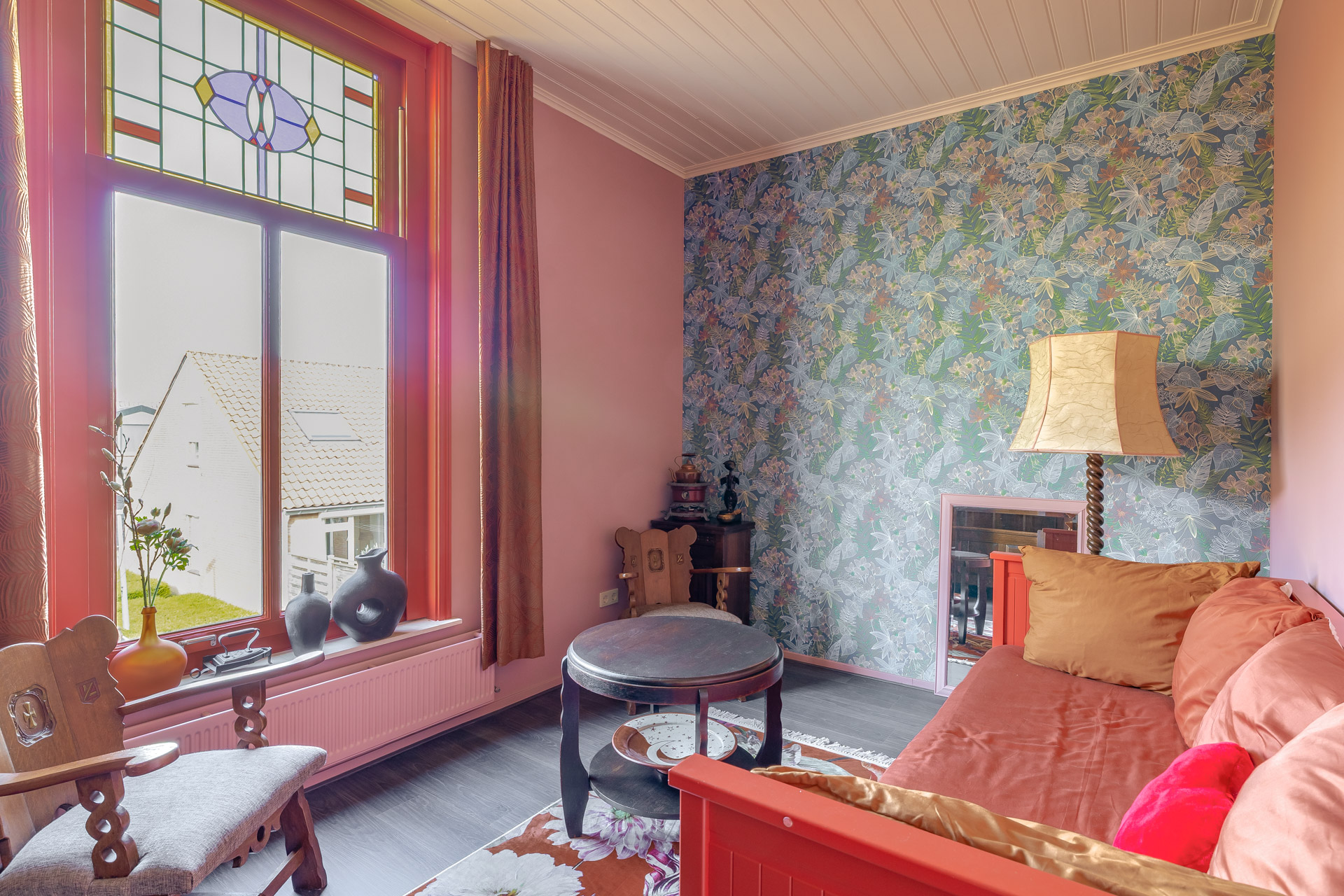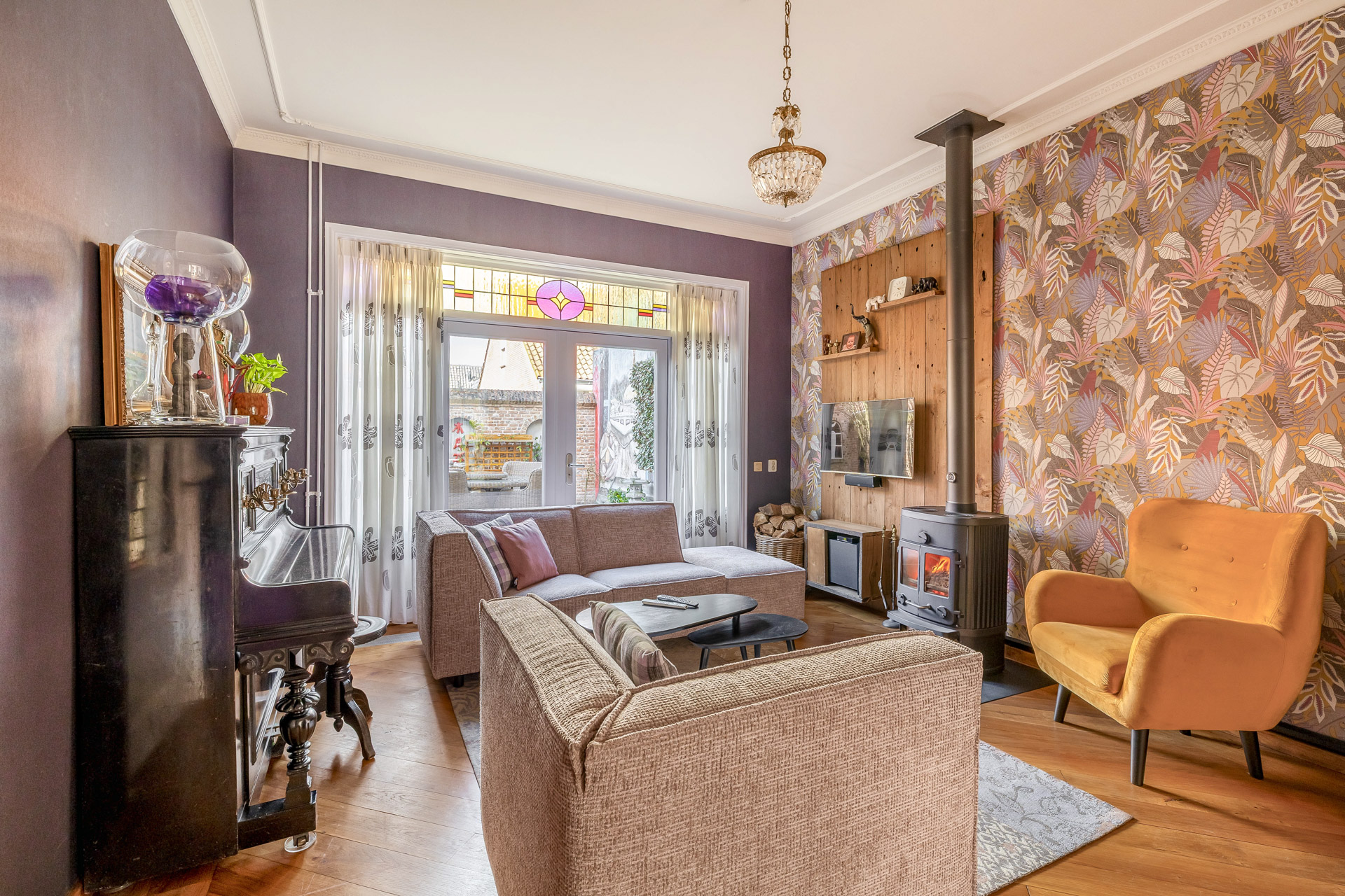 U betreedt de woning via een verzorgde hal welke toegang biedt tot diverse vertrekken. Aan het einde van de hal bevindt zich het separate toilet. Bij binnenkomst aan uw linkerhand treft u een comfortabele slaapkamer met een eigen badkamer, praktisch en toegankelijk ingericht voor minder validen. Deze badkamer is voorzien van een douche, toilet en wastafel. Aan de rechterzijde ontvouwt zich de sfeervolle woonkamer, waar de open haard direct een warm en uitnodigend karakter creëert. De voorkamer staat in verbinding met de achterkamer via prachtige schuifdeuren. Deze achterkamer biedt u alle vrijheid om deze naar eigen wens in te delen, bijvoorbeeld als tweede zitruimte, werkruimte of hobbykamer. De aanwezige houtkachel versterkt hier de aangename ambiance. Aan het einde van de hal, aan de linkerzijde, bevindt zich de woonkeuken. Deze is uitgerust met diverse inbouwapparatuur. Vanuit zowel de keuken als de achterkamer heeft u direct toegang tot de tuin, waardoor binnen en buiten op harmonieuze wijze in elkaar overlopen.