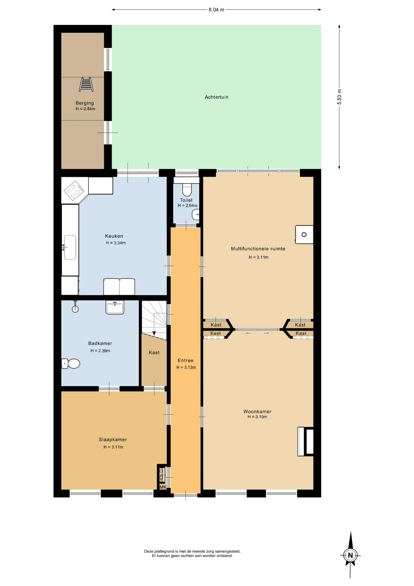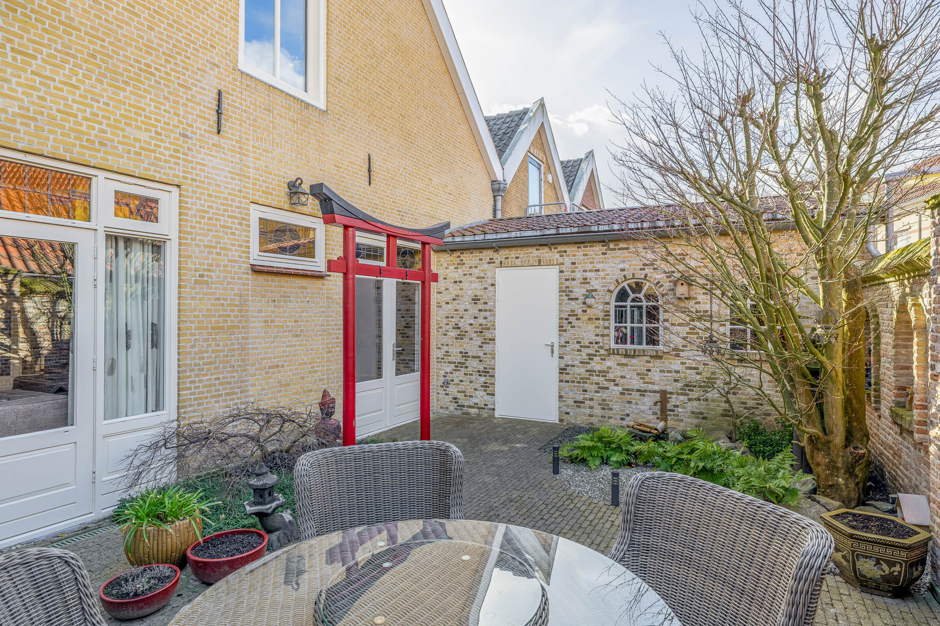 De woning beschikt over een verzorgde en sfeervolle achtertuin, gesitueerd op het noorden, waar rust en privacy samenkomen in een aangename buitenbeleving. Dankzij de directe verbinding met zowel de woonkeuken als de achterkamer ontstaat een natuurlijke overgang tussen binnen en buiten, wat het wooncomfort aanzienlijk versterkt. Tevens is de tuin bereikbaar via een praktische achterom. Aan de woning is een stenen berging aangebouwd. Deze ruimte leent zich uitstekend voor het stallen van fietsen, het opbergen van gereedschap of het creëren van extra opslagcapaciteit.