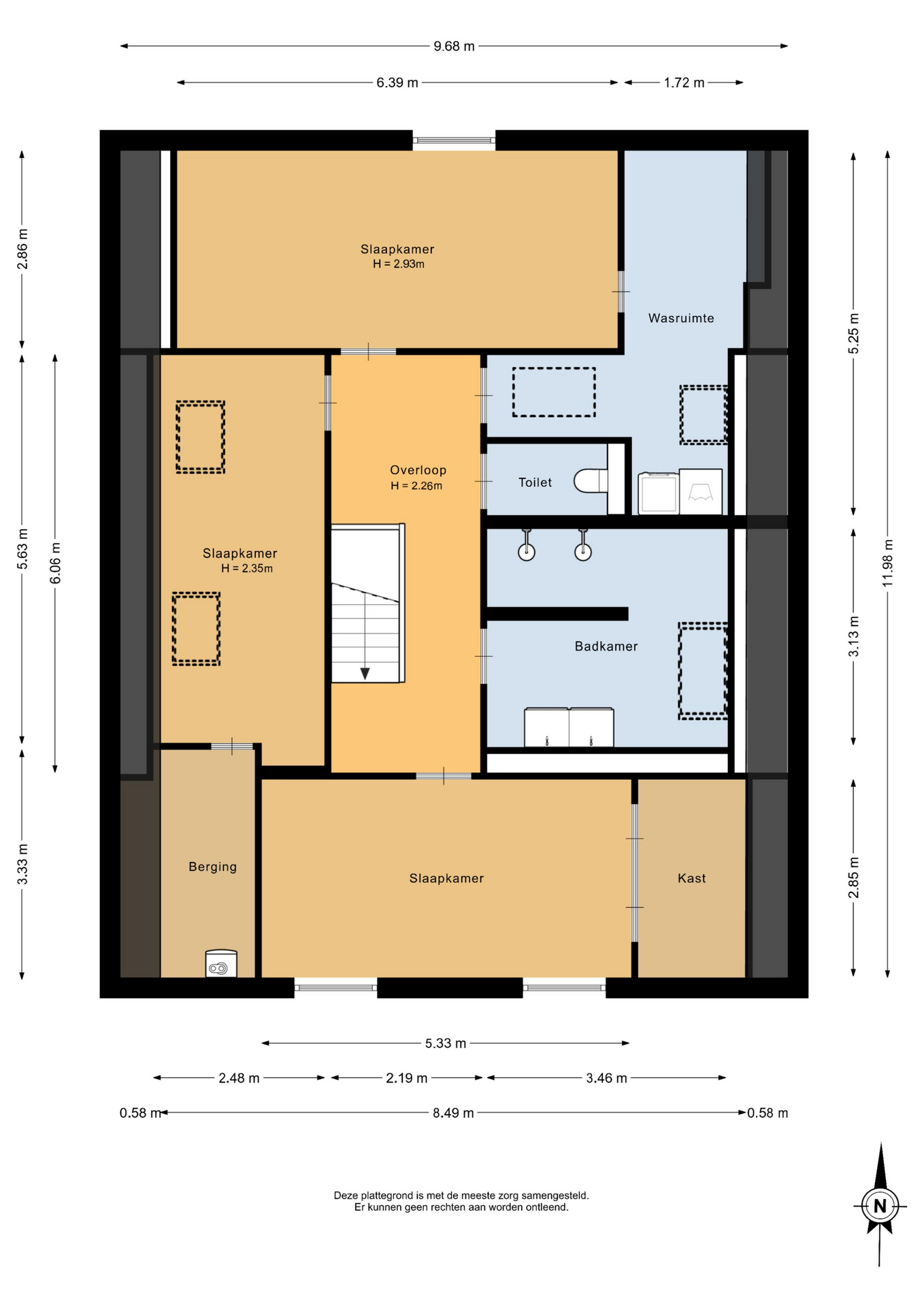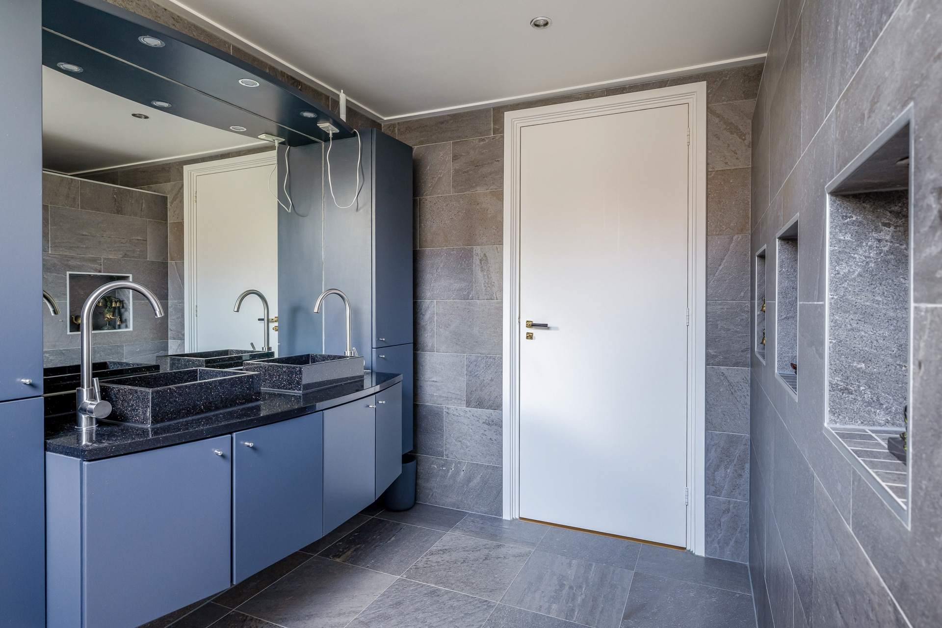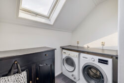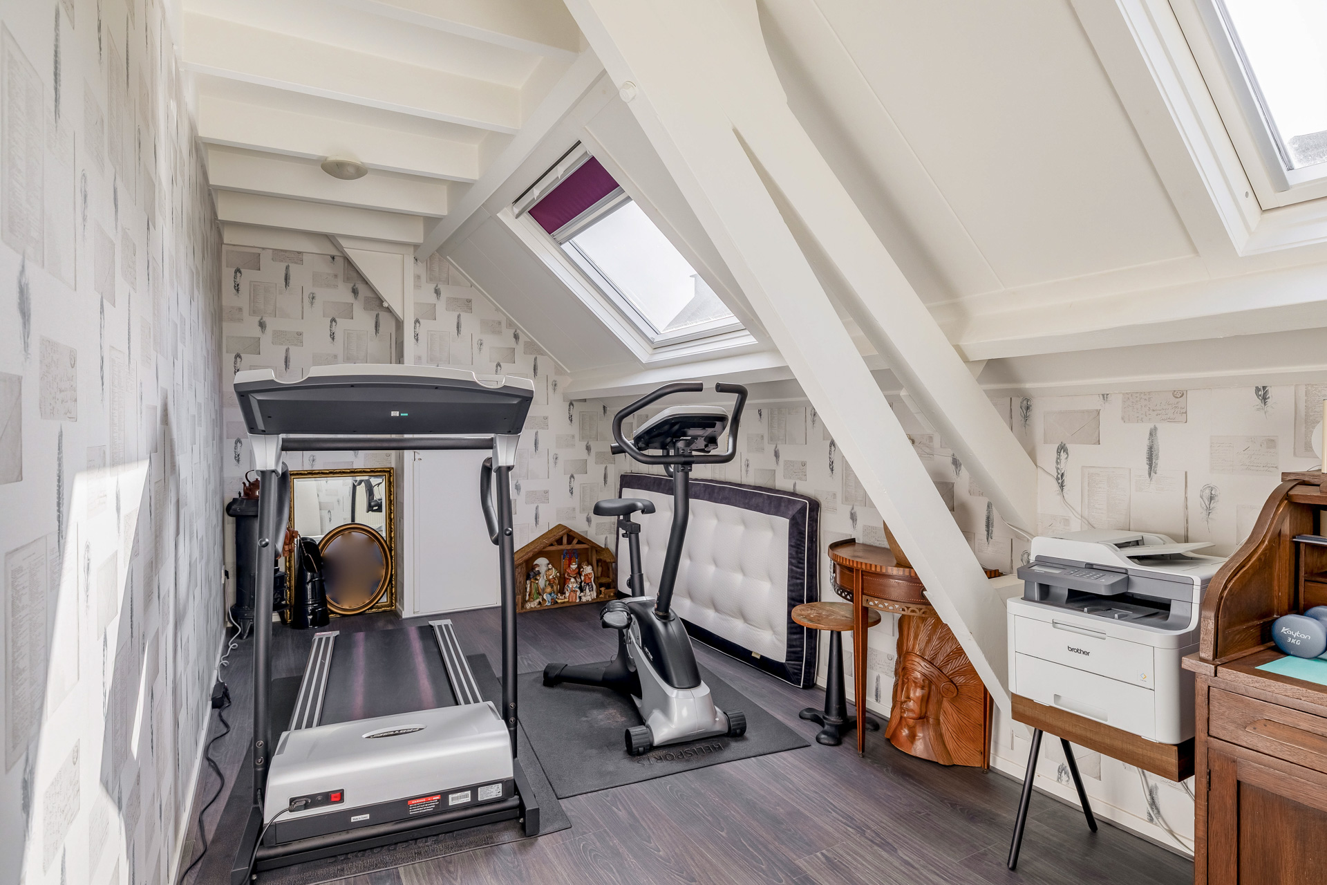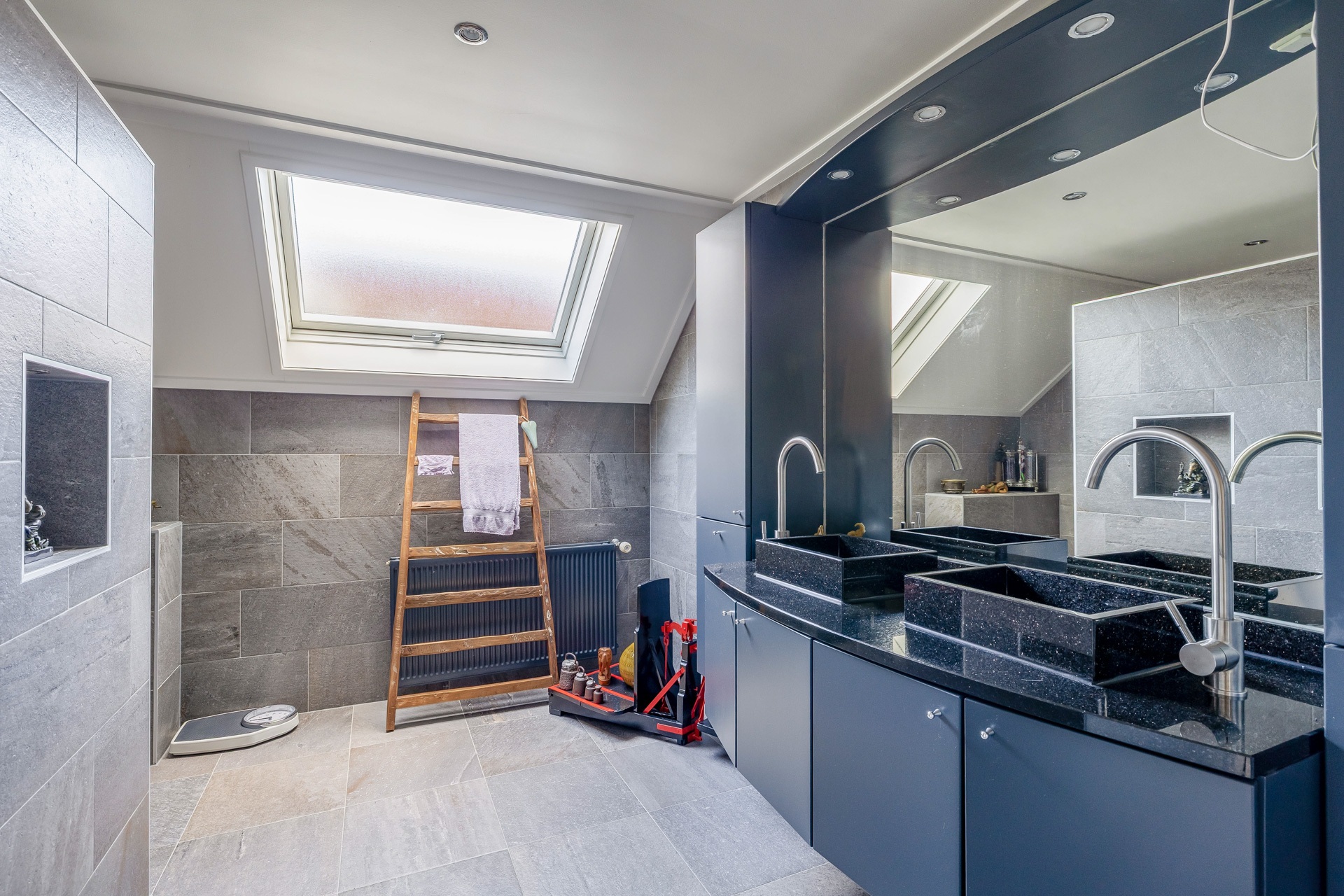De eerste verdieping kenmerkt zich door een praktische en ruime indeling. Hier bevinden zich drie volwaardige slaapkamers, waarvan één uitgerust met airconditioning. Ideaal voor een gezin of voor wie extra ruimte wenst. De verdieping is voorzien van een moderne badkamer met dubbele wastafel en een royale inloopdouche, uitgevoerd met een luxe dubbele regendouche die zorgt voor een ontspannen start en afsluiting van de dag. De praktische wasruimte biedt volop mogelijkheden. Vanuit deze ruimte bereikt u via een vlizotrap de zolder, perfect voor extra bergruimte.