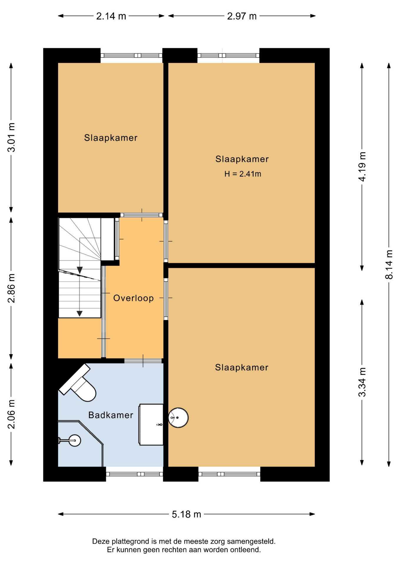 Op de eerste verdieping zijn drie slaapkamers gelegen en een badkamer. Één van de slaapkamers is voorzien van een wastafel. De badkamer is geheel betegeld en compleet met toilet, douche, wastafelmeubel en designradiator.