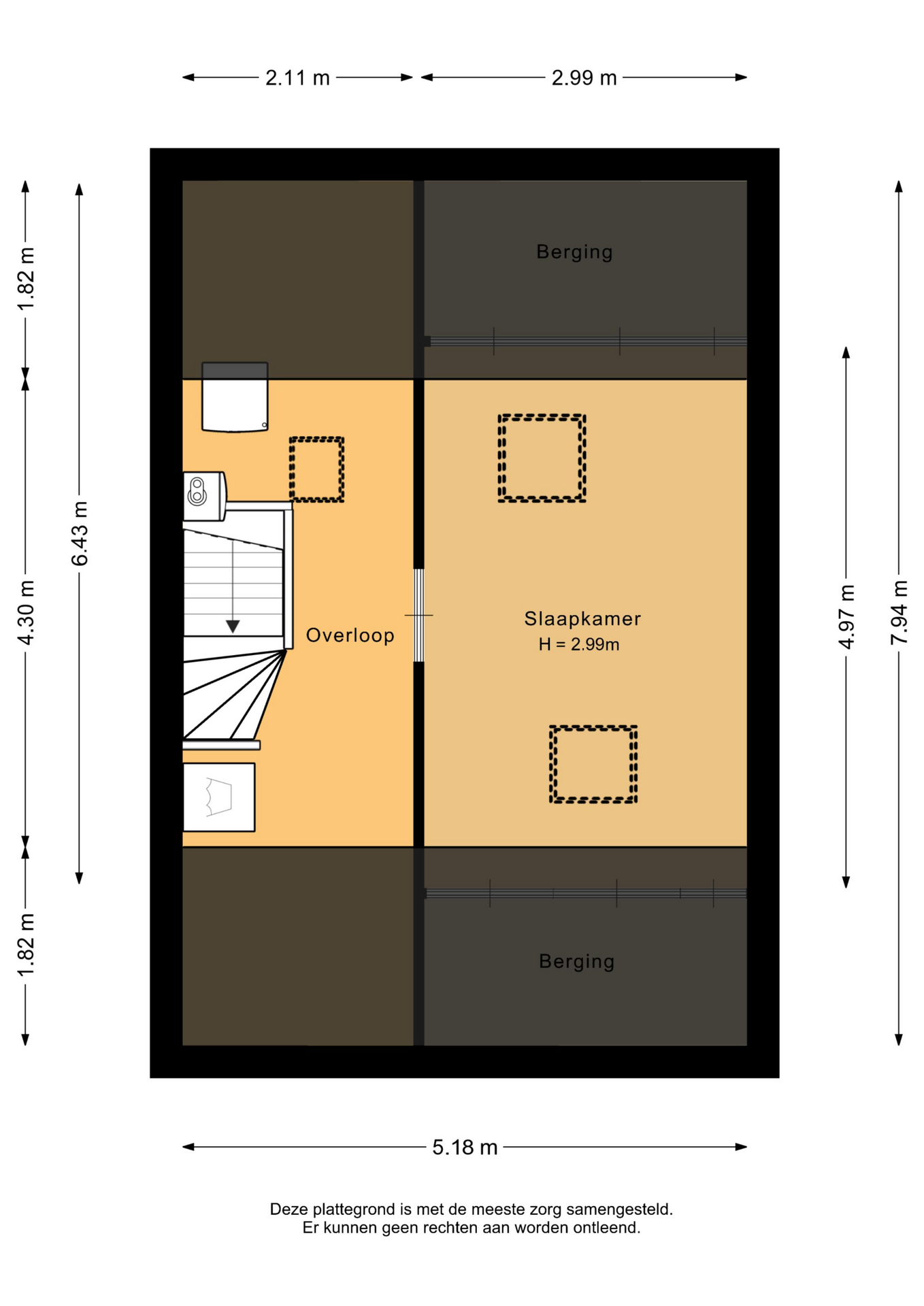 Middels een vaste trap kom je op de tweede verdieping waar de vierde slaapkamer is gelegen. De slaapkamer voelt ruimtelijk, doordat het plafond volledig doorloopt tot in de nok van het dak. Op de overloop zijn de witgoedaansluitingen te vinden en ook is hier de CV-ketel geplaatst.